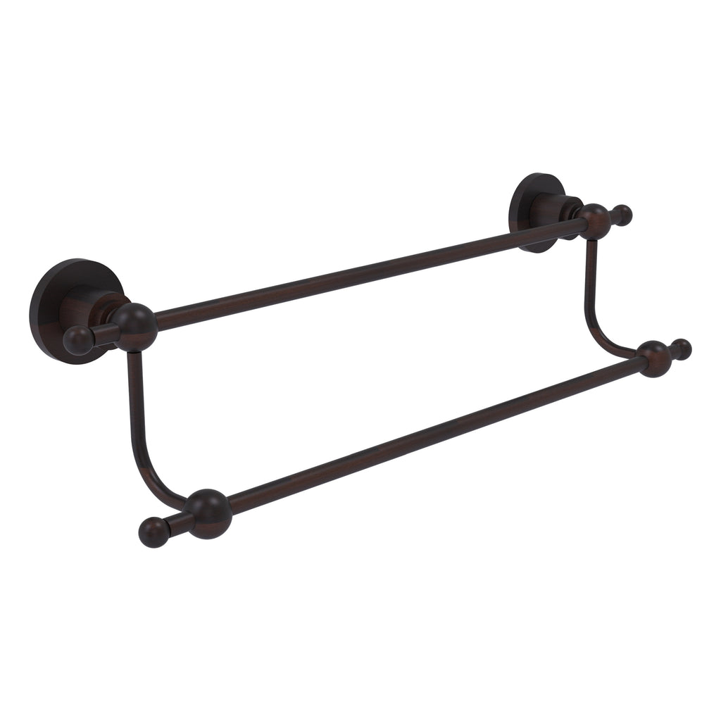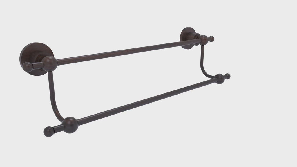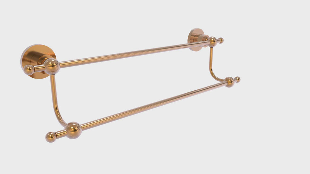 Add a stylish touch to your bathroom decor with this finely crafted double towel bar. This elegant bathroom accessory is created from the finest solid brass materials. High quality lifetime designer finishes are hand polished to perfection.
