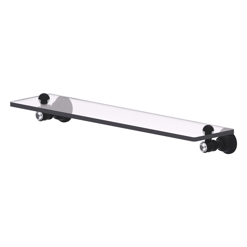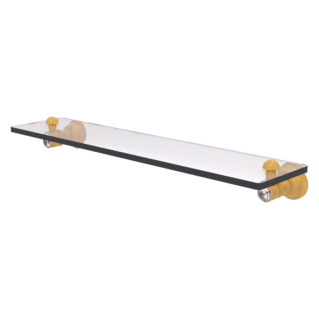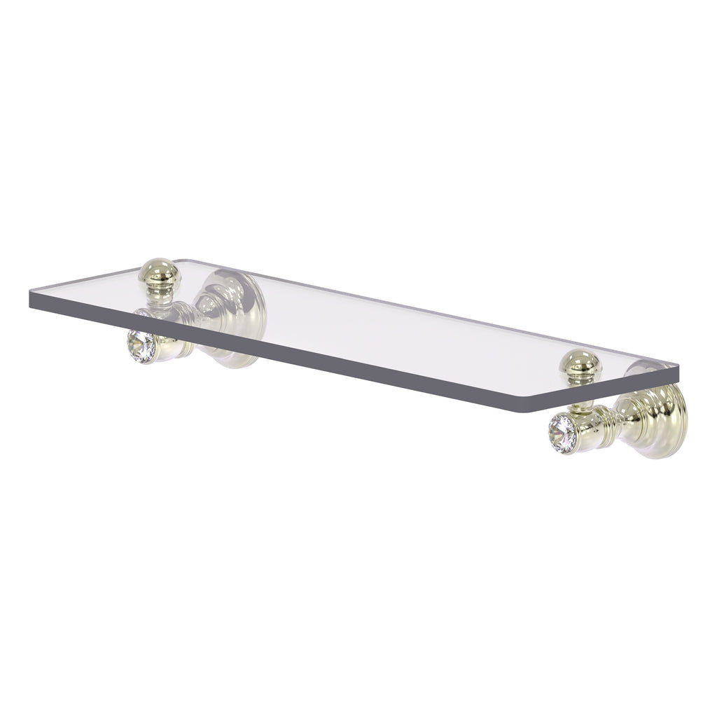 Reimagine your bathroom with this finely crafted glass shelf with crystal accents. Traditional styling and superior quality resonate from this hand crafted glass shelf. Featuring thick, beveled-edge glass and solid brass hardware this shelf is crafted for durability strength and style. One of the many coordinating accessories in the Allied Brass Collection of accessories, this decorative glass shelf with the added sparkle of crystal is the perfect complement to your bathroom decor.
