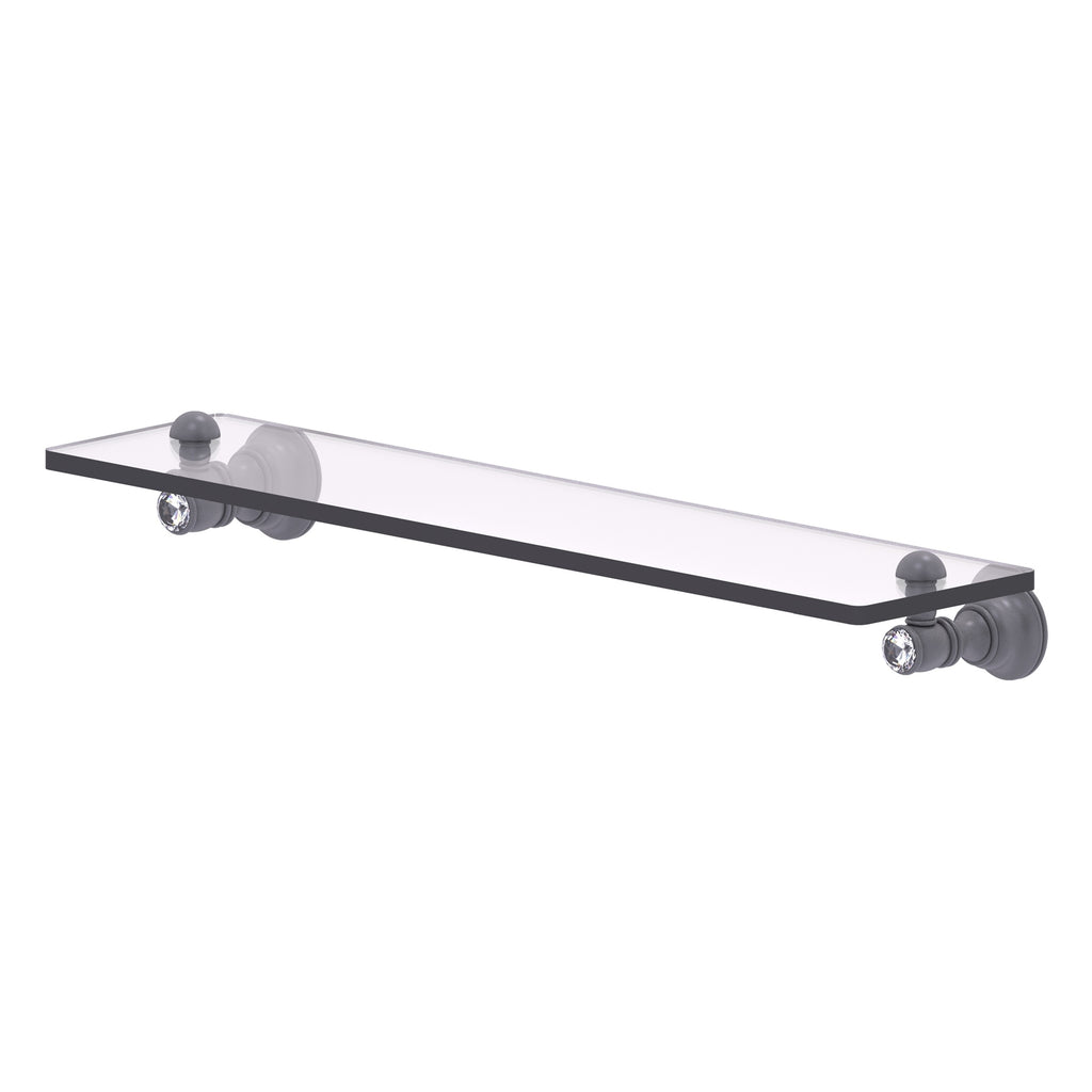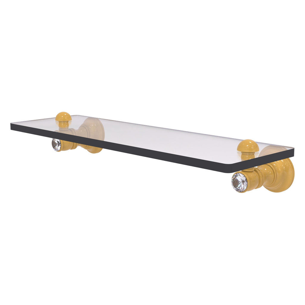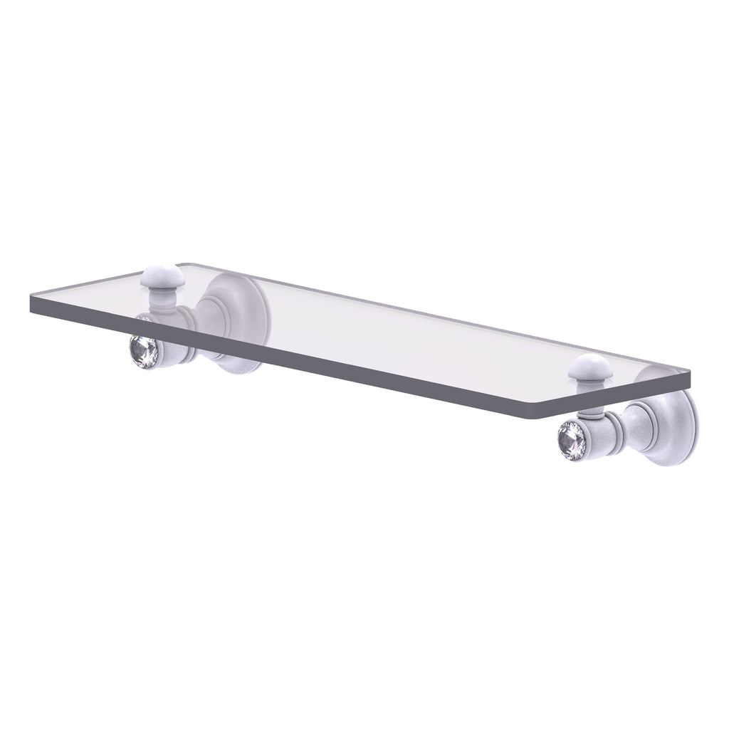 Reimagine your bathroom with this finely crafted glass shelf with crystal accents. Traditional styling and superior quality resonate from this hand crafted glass shelf. Featuring thick, beveled-edge glass and solid brass hardware this shelf is crafted for durability strength and style. One of the many coordinating accessories in the Allied Brass Collection of accessories, this decorative glass shelf with the added sparkle of crystal is the perfect complement to your bathroom decor.
