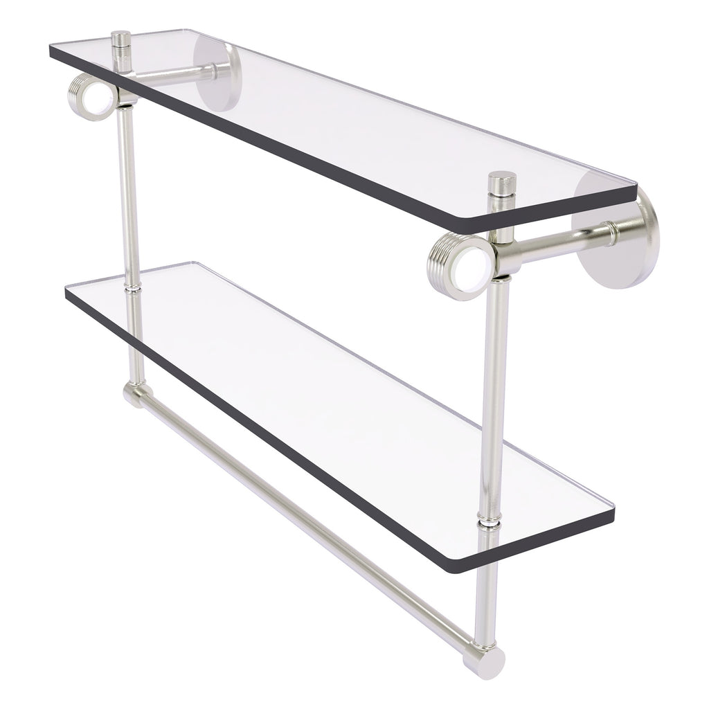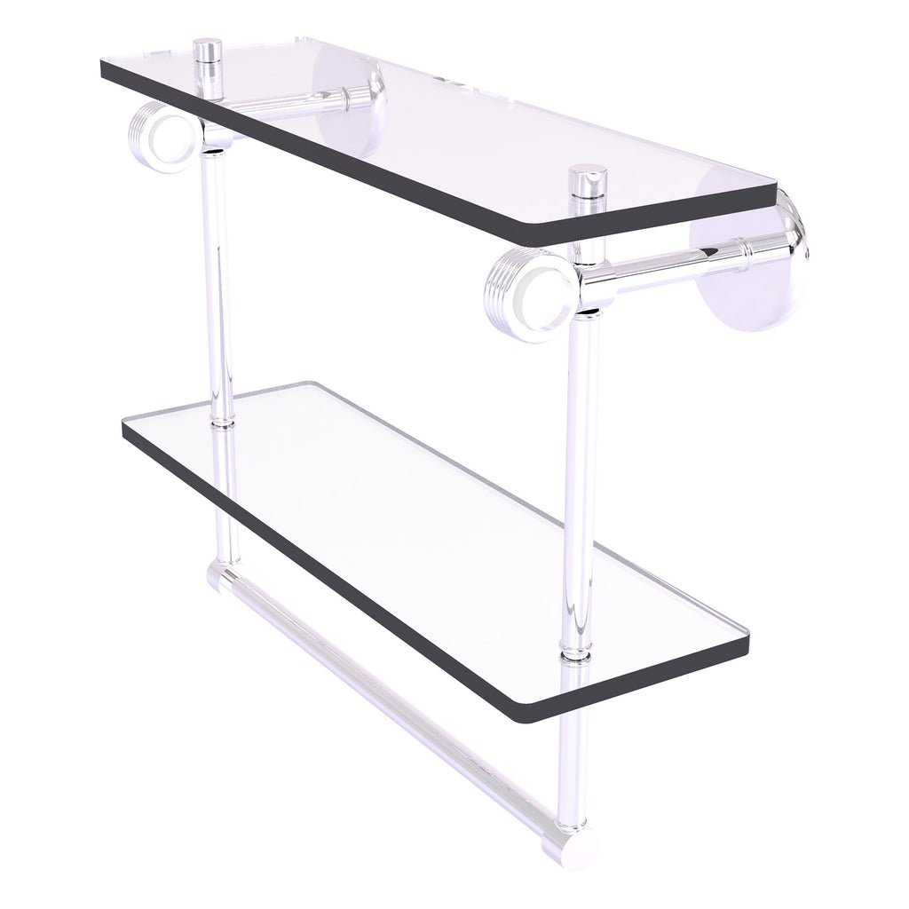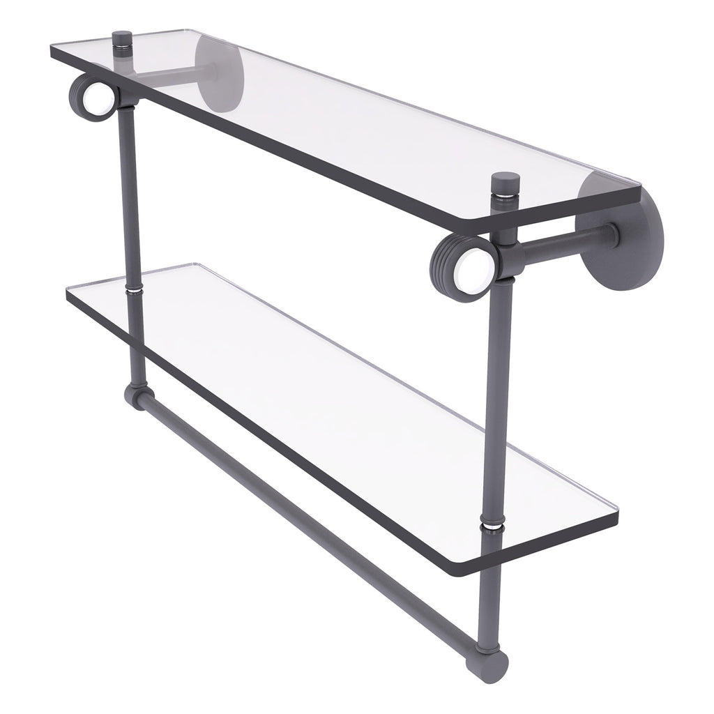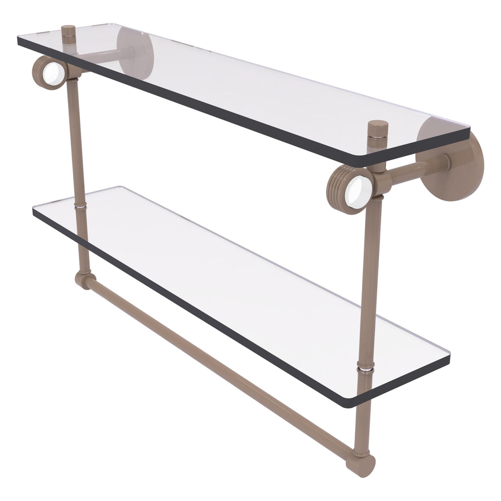 Clearview Collection Double Glass Vanity Shelf with Integrated Towel Bar with Grooved Accents