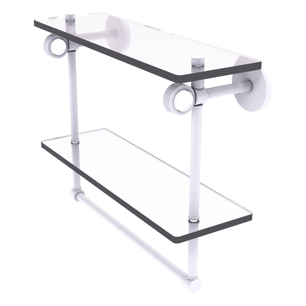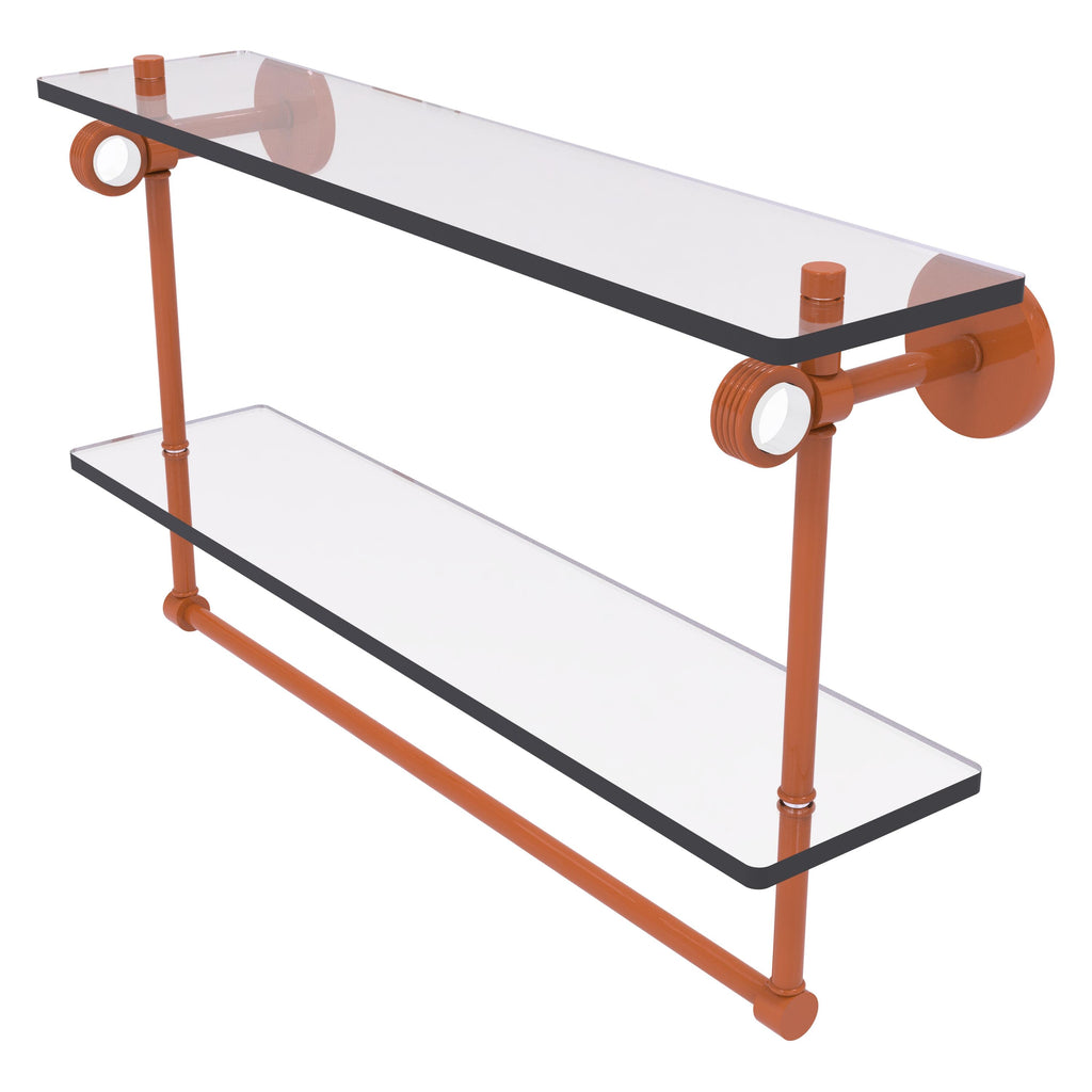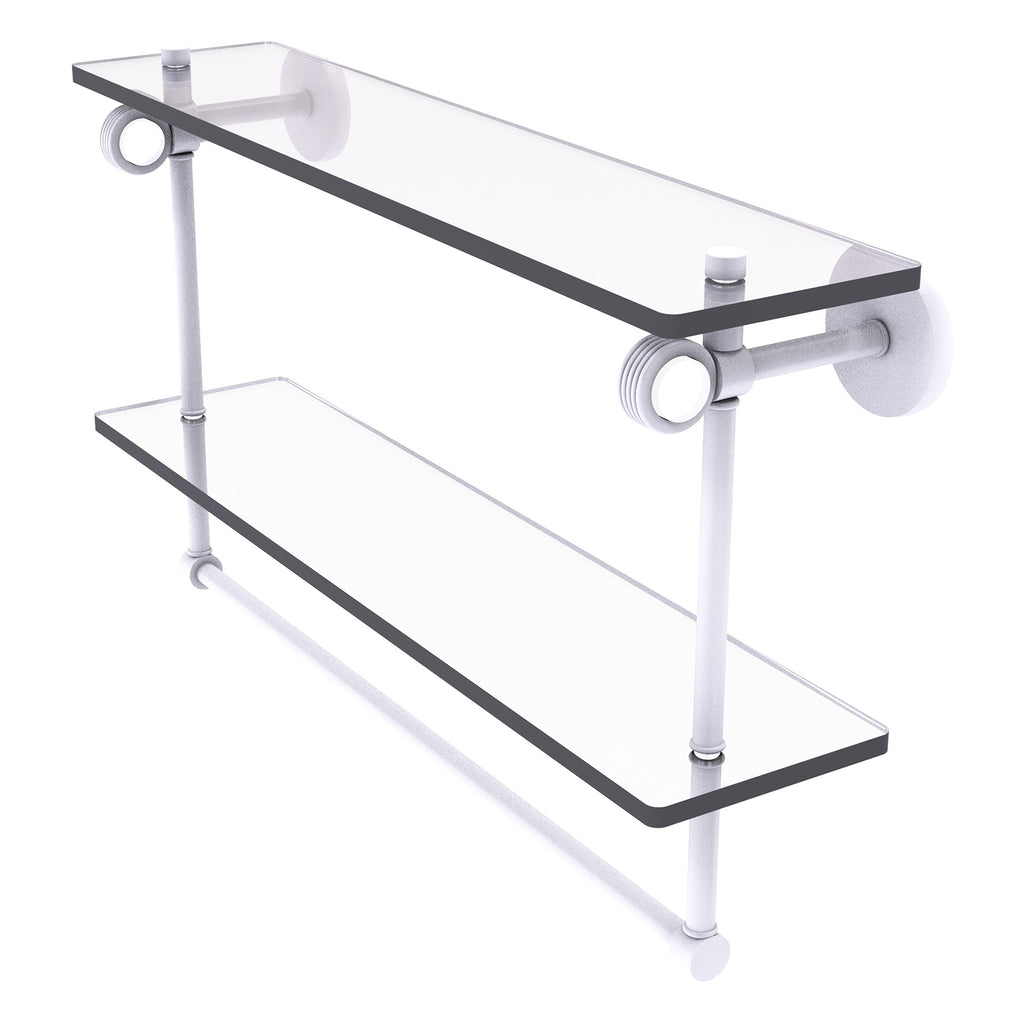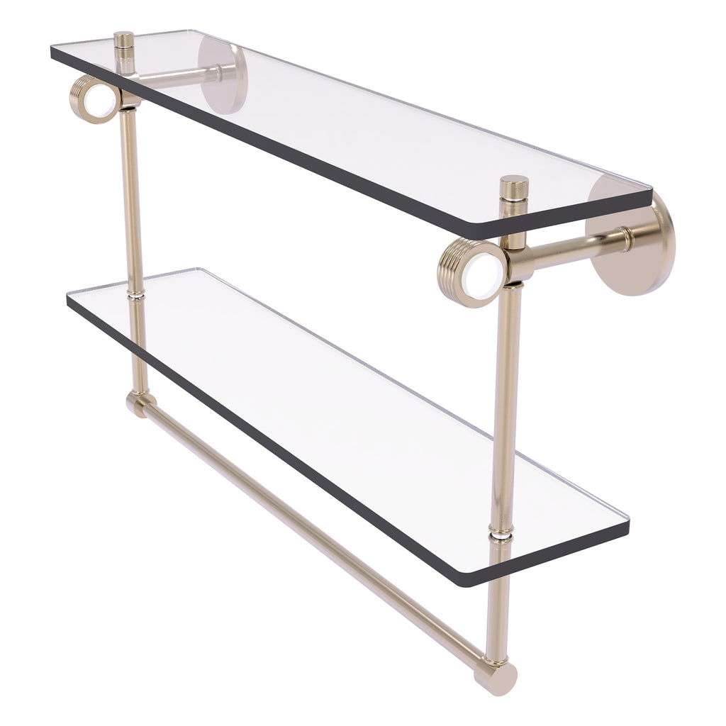 Clearview Collection Double Glass Vanity Shelf with Integrated Towel Bar with Grooved Accents