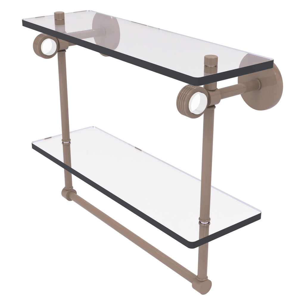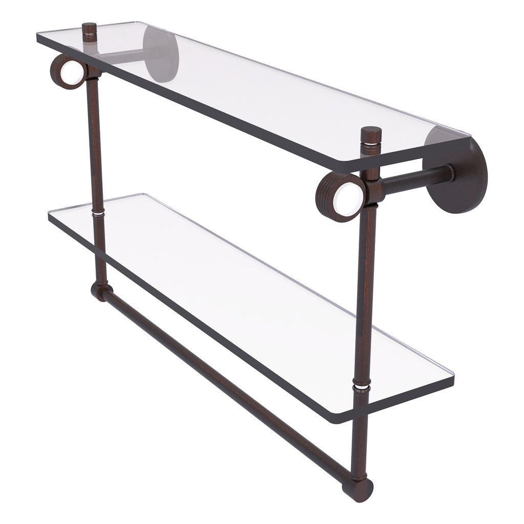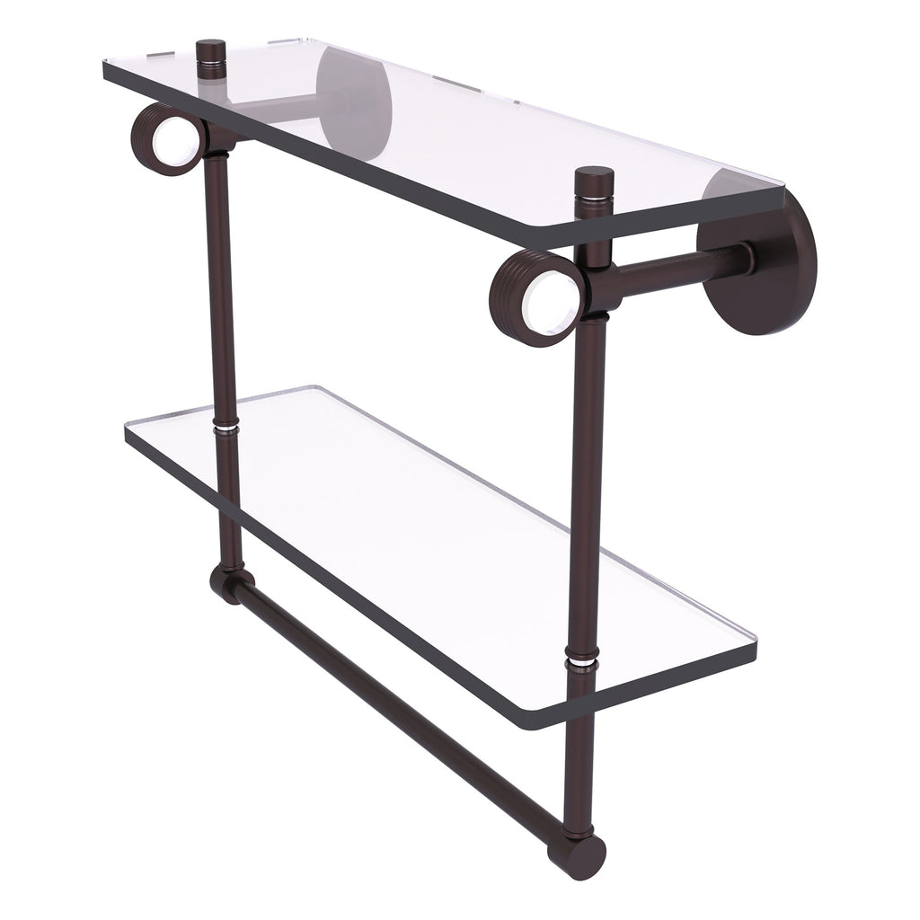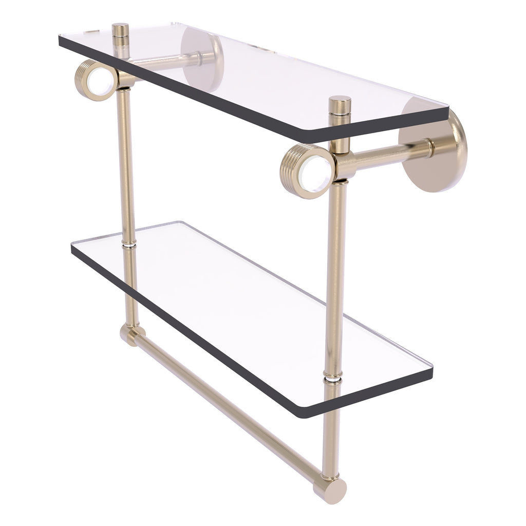 Clearview Collection Double Glass Vanity Shelf with Integrated Towel Bar with Grooved Accents