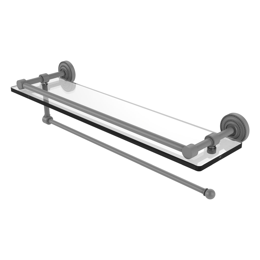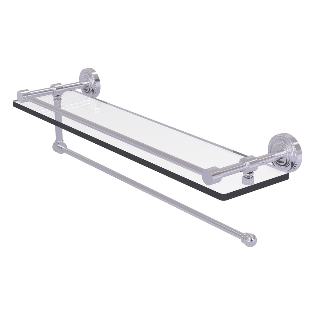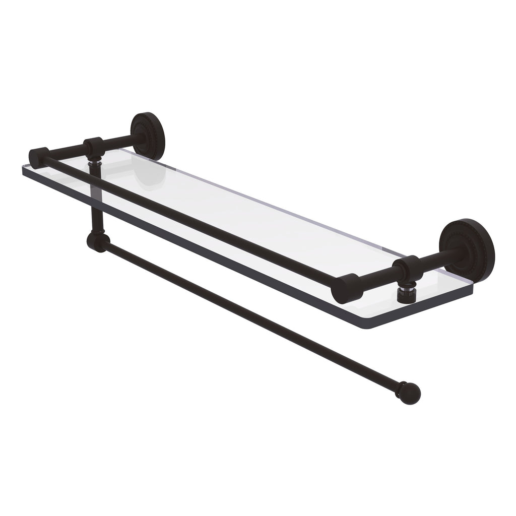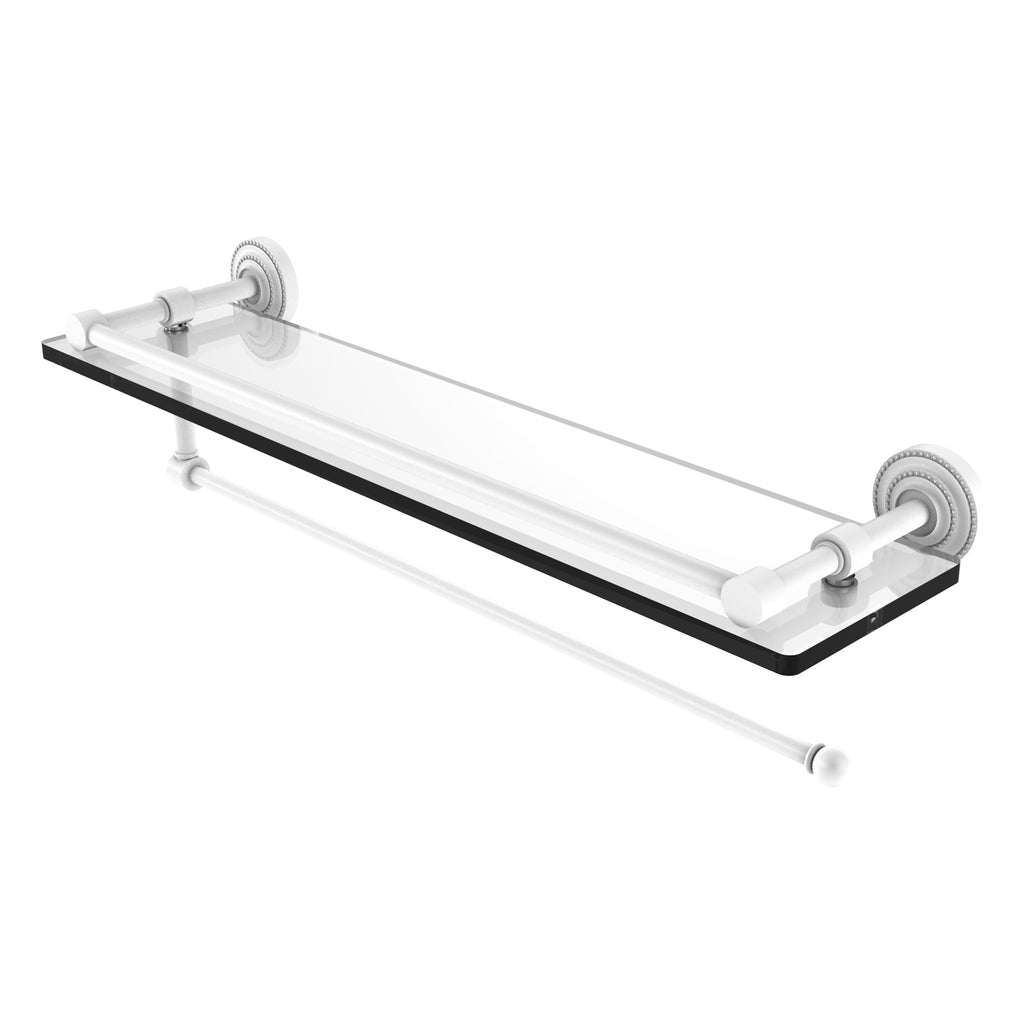 Maximize space and efficiency with this beautiful glass shelf and paper towel holder combination. Gallery rail will keep your items secure while the integrated paper towel holder provides a creative space for your roll. Made of solid brass and tempered