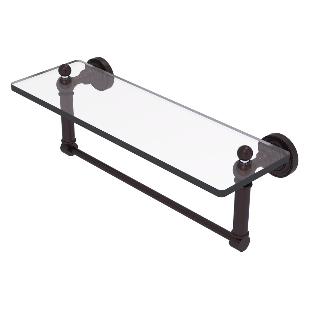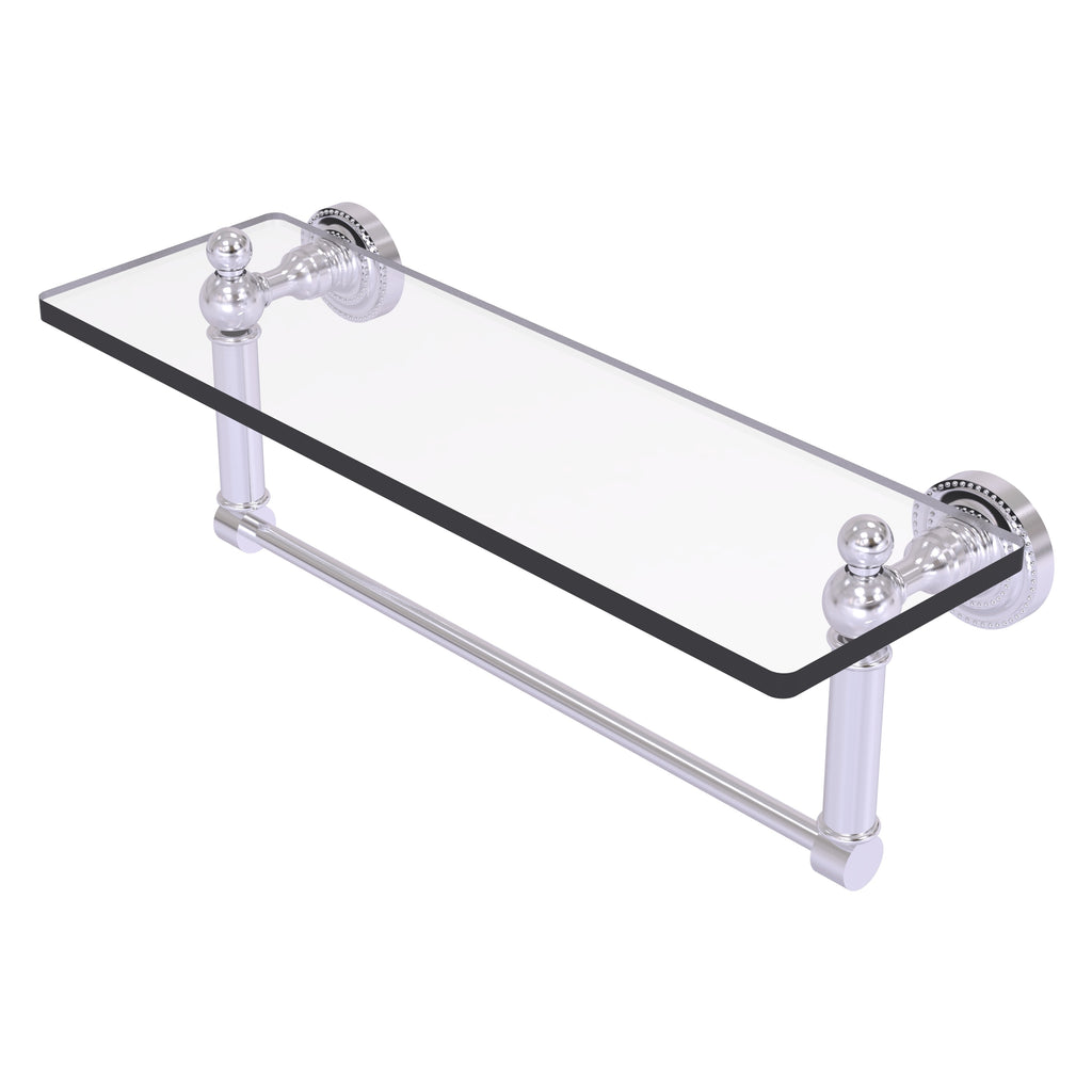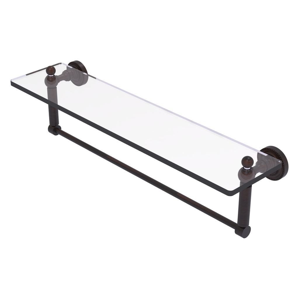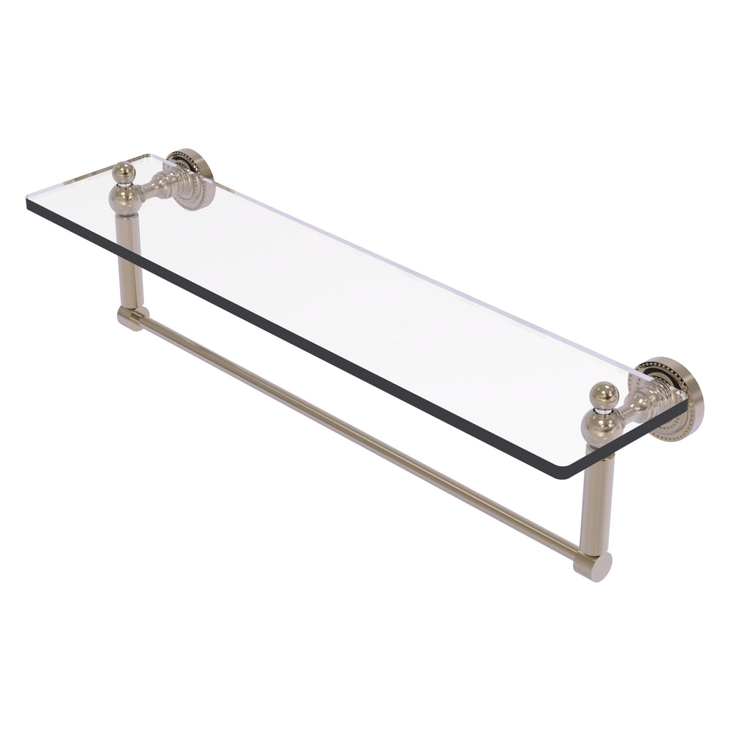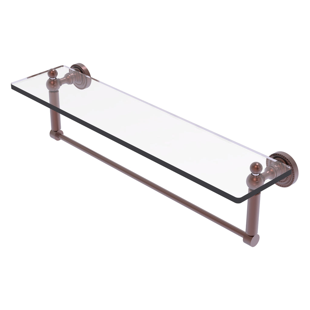 Add space and organization to your bathroom with this simple, traditional style glass shelf. Featuring tempered, beveled-edged glass and solid brass hardware this shelf is crafted for durability, strength and style. One of the many coordinating accessories in the Allied Brass Dottingham Collection, this subtle glass shelf is the perfect complement to your bathroom décor.