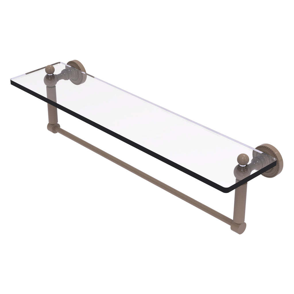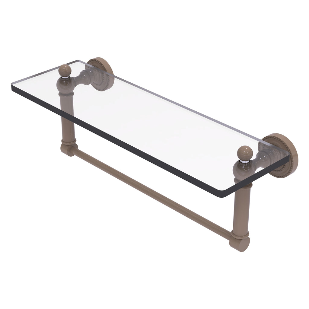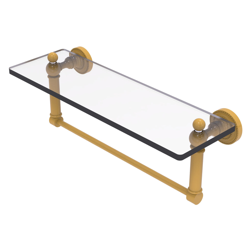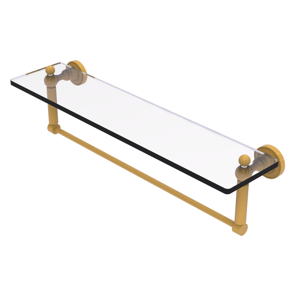 Add space and organization to your bathroom with this simple, traditional style glass shelf. Featuring tempered, beveled-edged glass and solid brass hardware this shelf is crafted for durability, strength and style. One of the many coordinating accessories in the Allied Brass Dottingham Collection, this subtle glass shelf is the perfect complement to your bathroom décor.