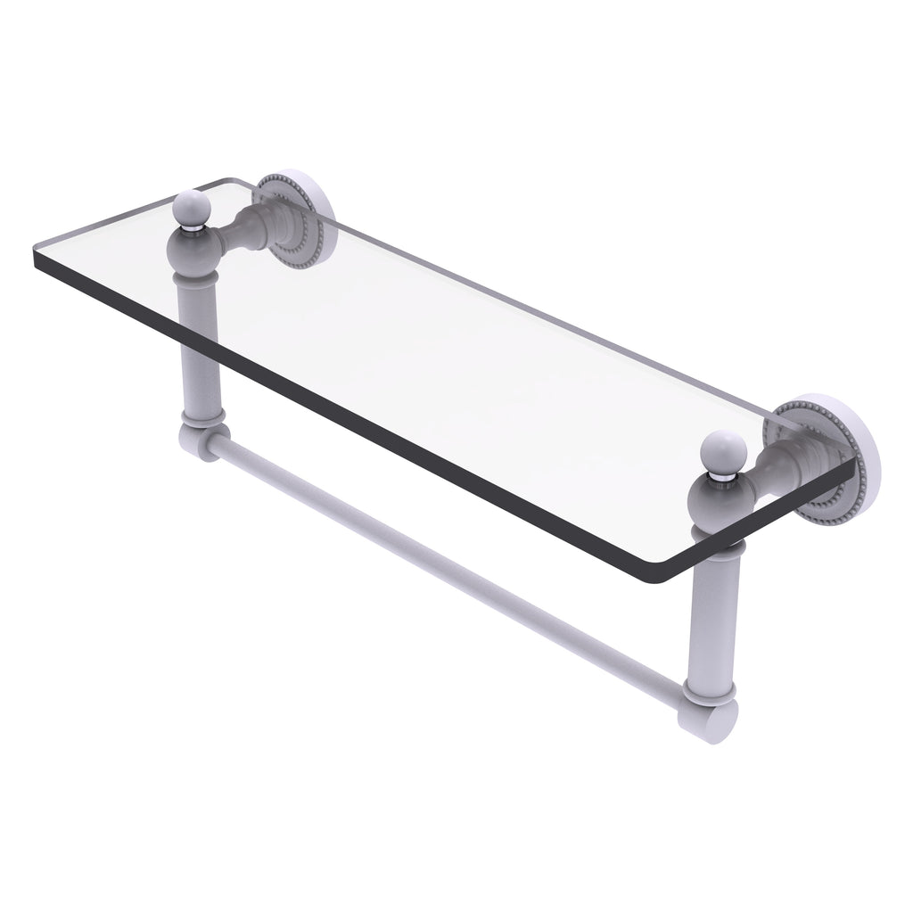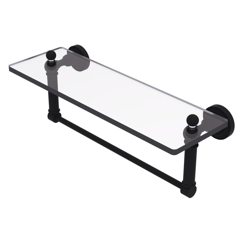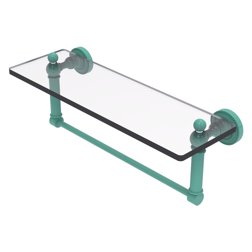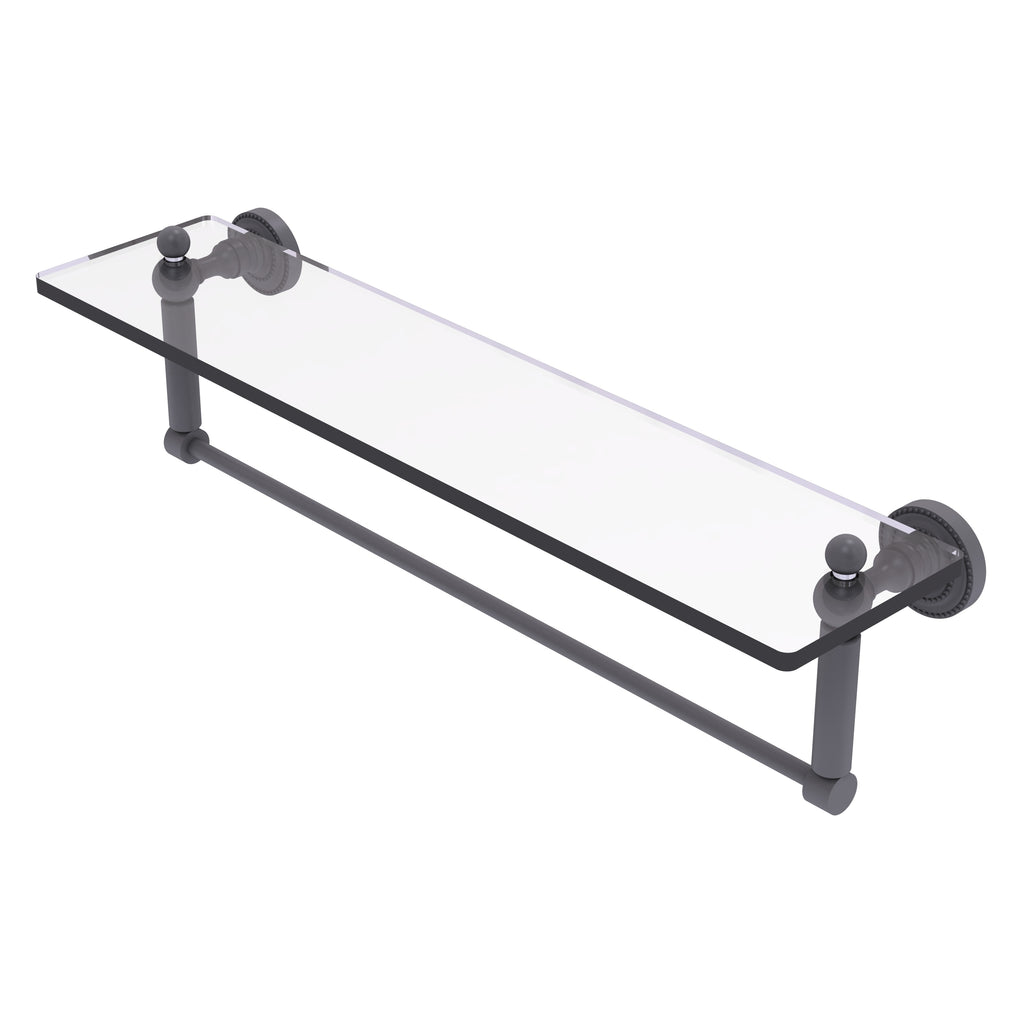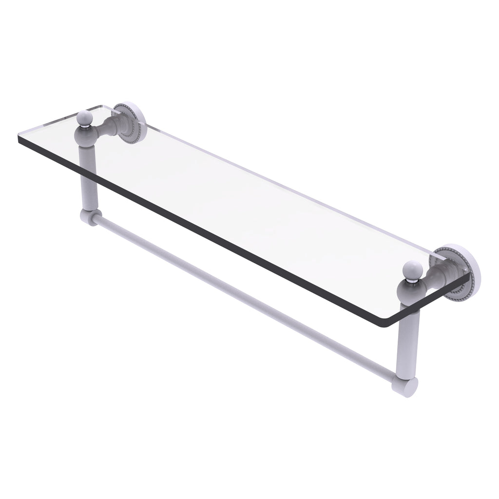 Add space and organization to your bathroom with this simple, traditional style glass shelf. Featuring tempered, beveled-edged glass and solid brass hardware this shelf is crafted for durability, strength and style. One of the many coordinating accessories in the Allied Brass Dottingham Collection, this subtle glass shelf is the perfect complement to your bathroom décor.