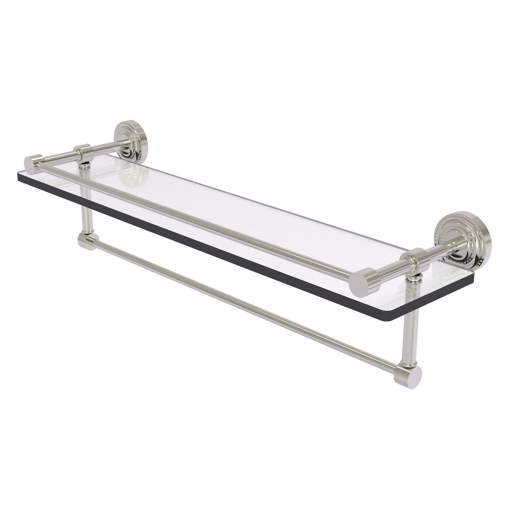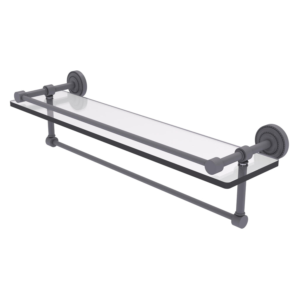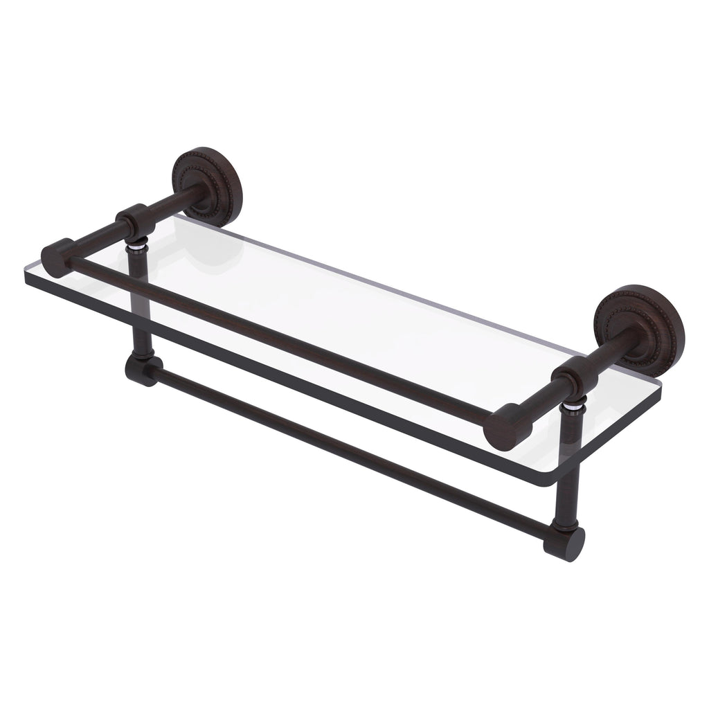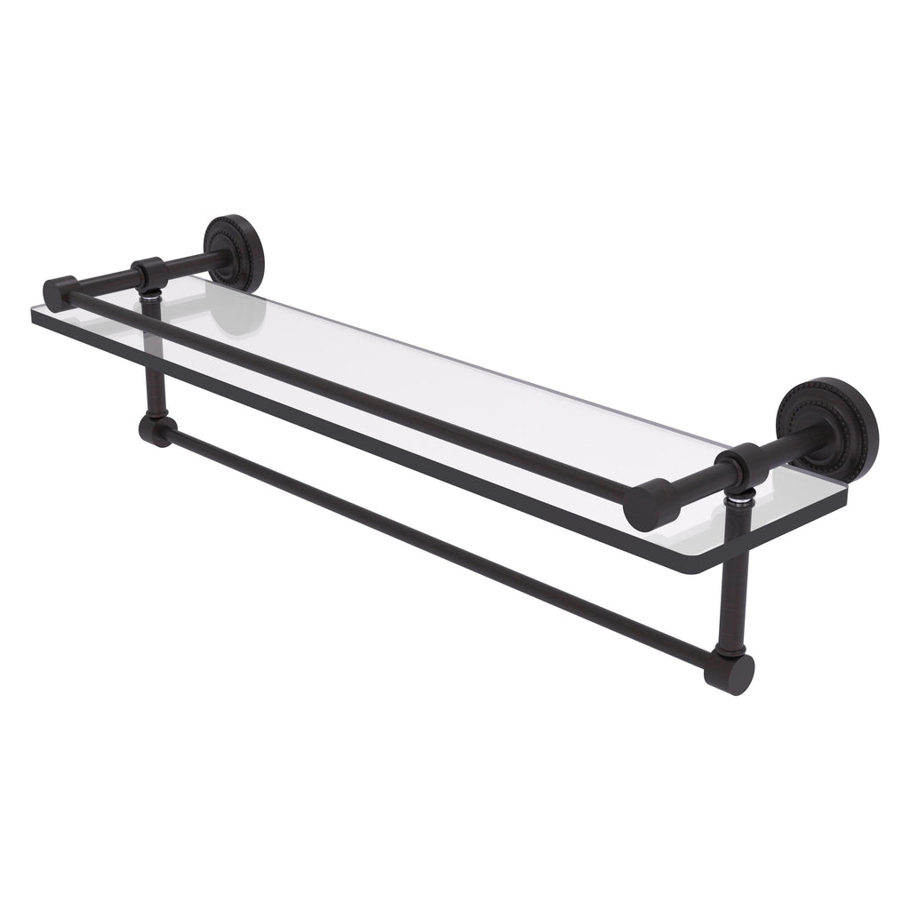 Add a flare of style to your décor with this decorative glass shelf. Shelf can be used anywhere in the home for a great space to store your products. Gallery rail will keep your items secure while the integrated towel bar provides a creative space for your towels. Tempered glass is 3/8 Inches thick and all of the hardware is made of solid brass and finished with the highest quality materials to provide a lifetime of beauty.