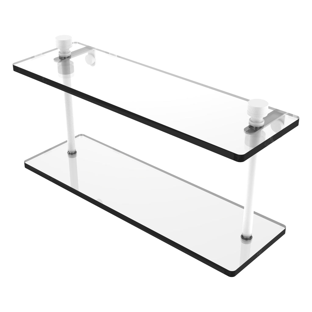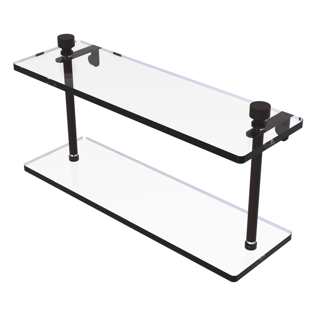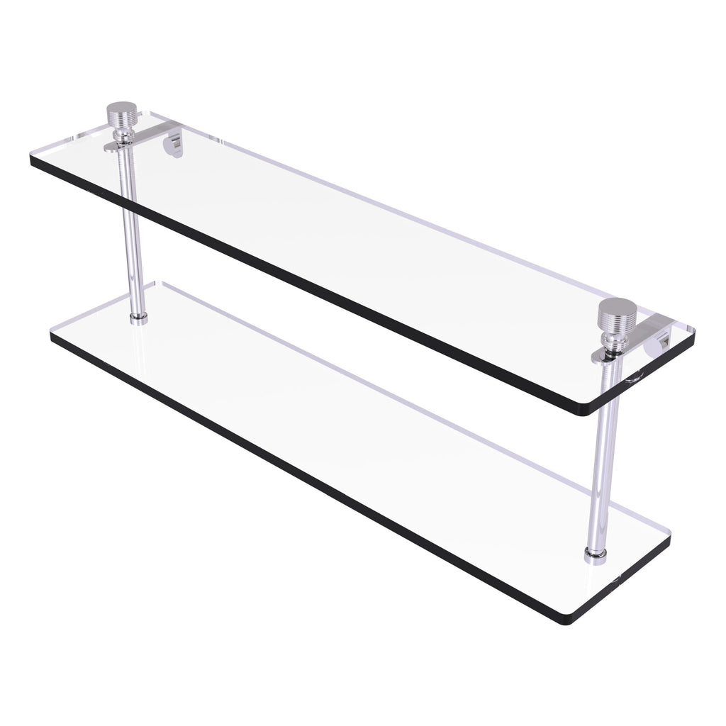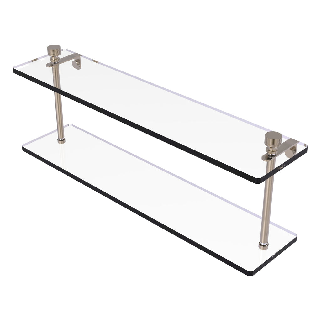 Add space and organization to your bathroom with this simple, contemporary design 2-tier glass vanity shelf. Featuring tempered, beveled-edged glass and solid brass hardware this shelving unit is crafted for durability, strength and style. One of the many coordinating accessories in the Allied Brass collection of products, this subtle glass shelf unit is the perfect complement to your bathroom decor.