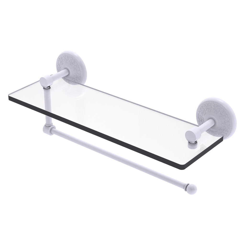 Maximize space and efficiency with this beautiful glass shelf and paper towel holder combination. Made of solid brass and tempered glass this classic unit will enhance any kitchen.