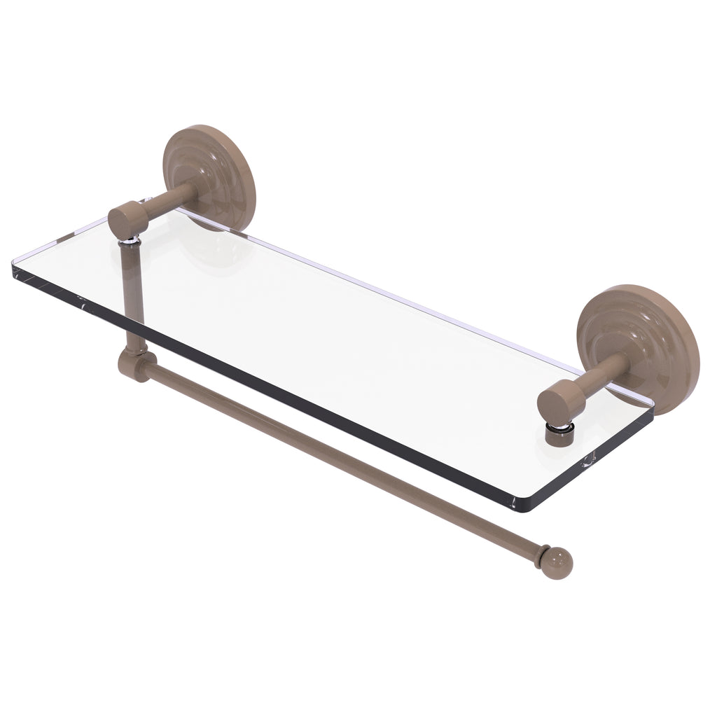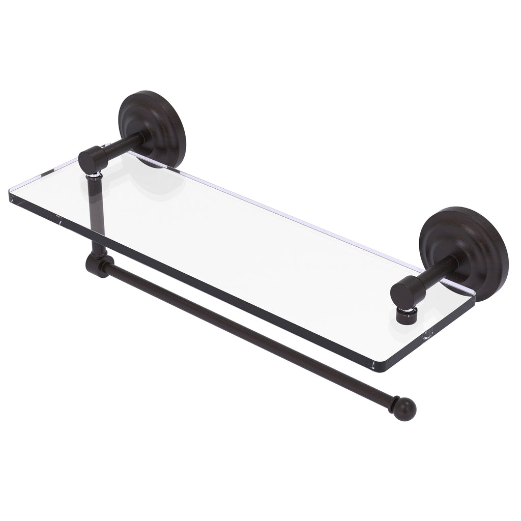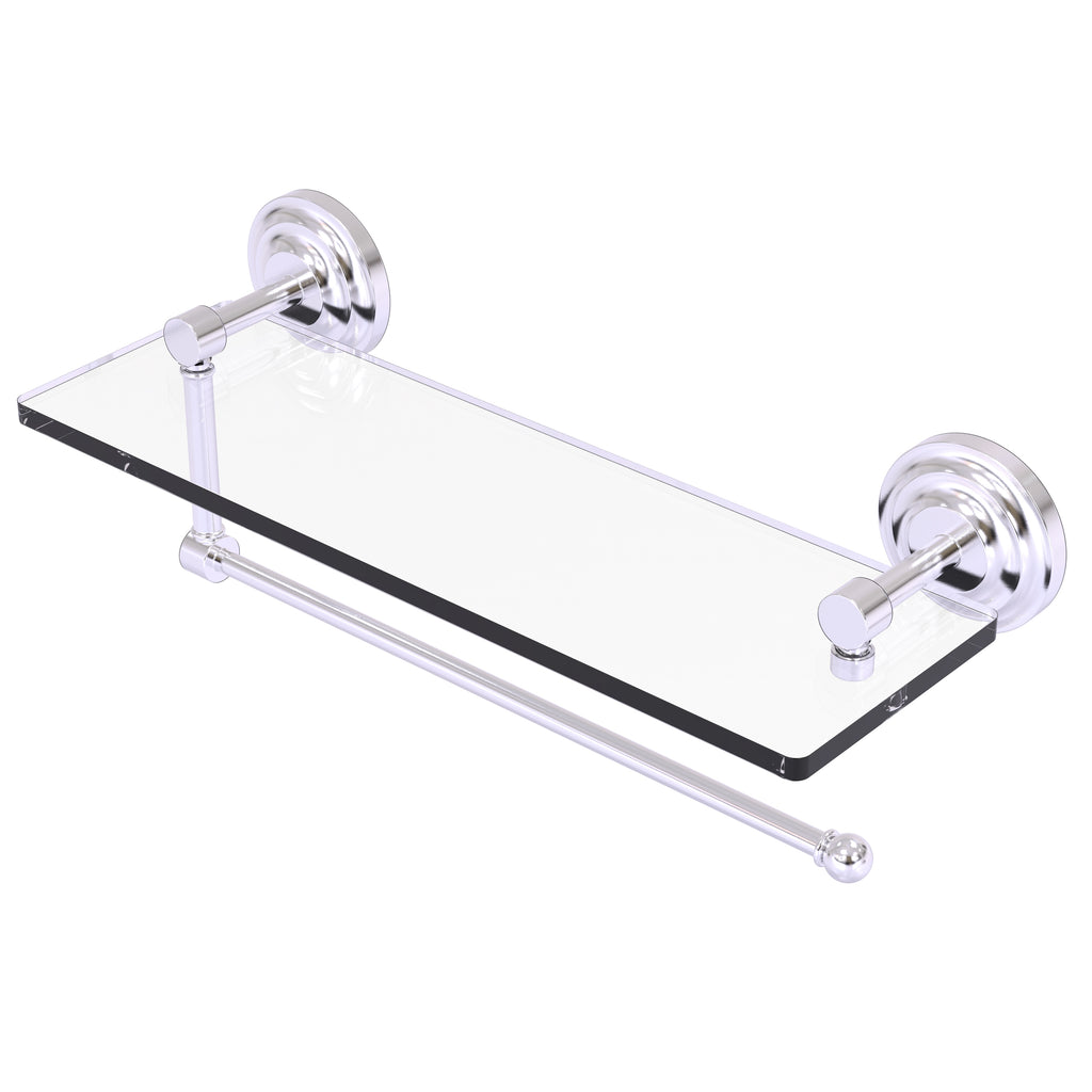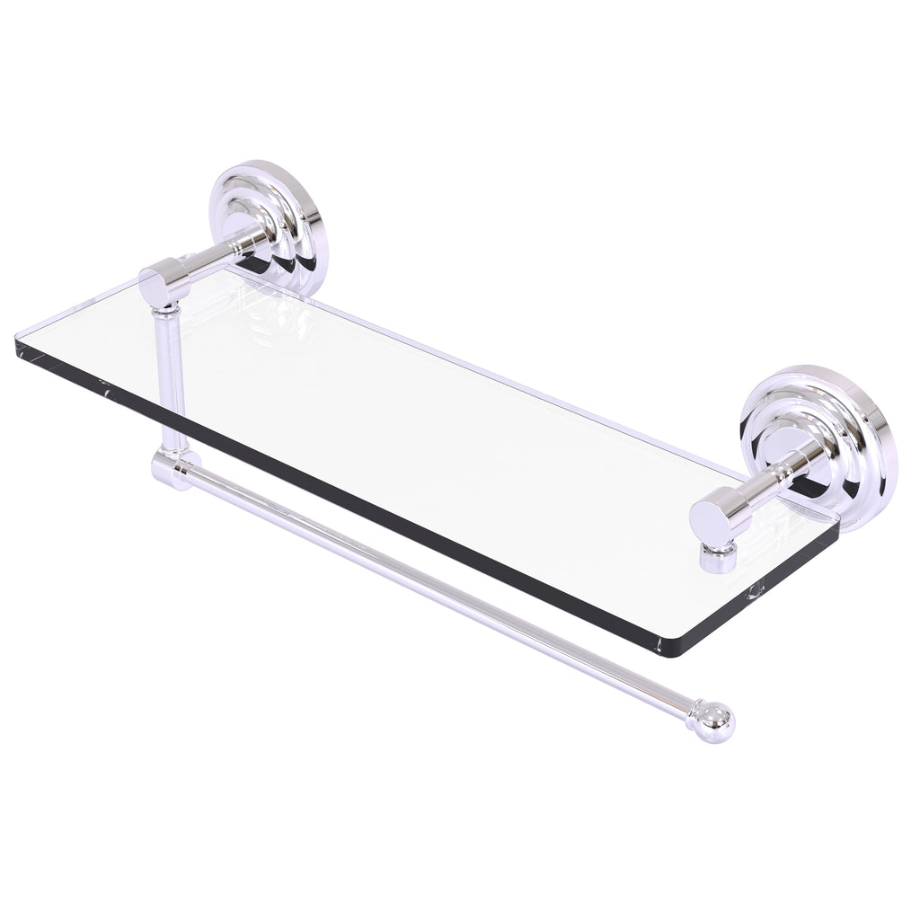 Maximize space and efficiency with this beautiful glass shelf and paper towel holder combination. Made of solid brass and tempered glass this classic unit will enhance any kitchen.