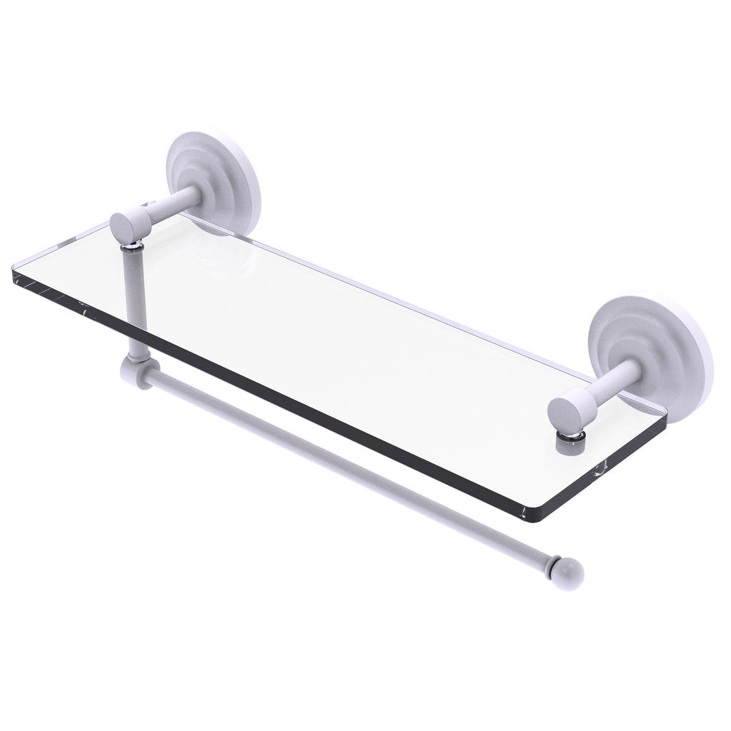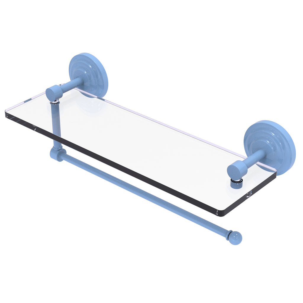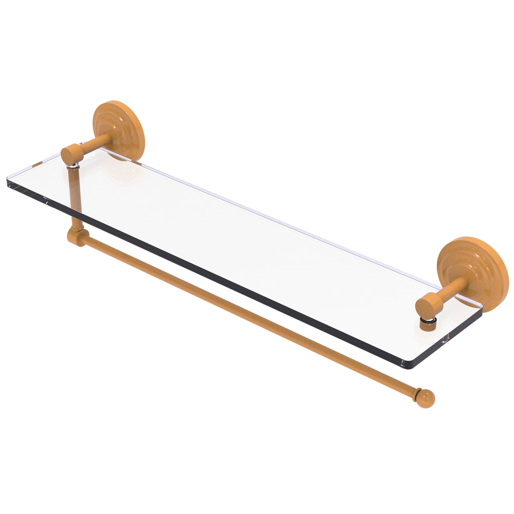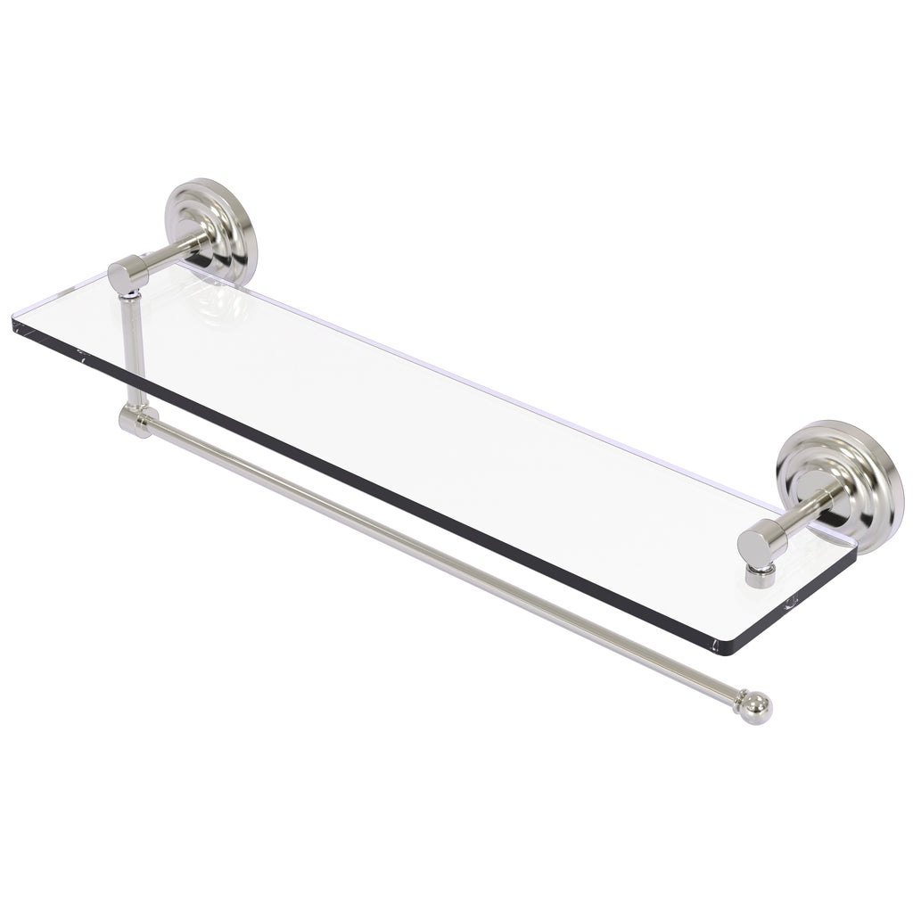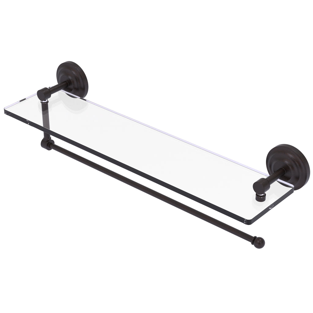 Maximize space and efficiency with this beautiful glass shelf and paper towel holder combination. Made of solid brass and tempered glass this classic unit will enhance any kitchen.