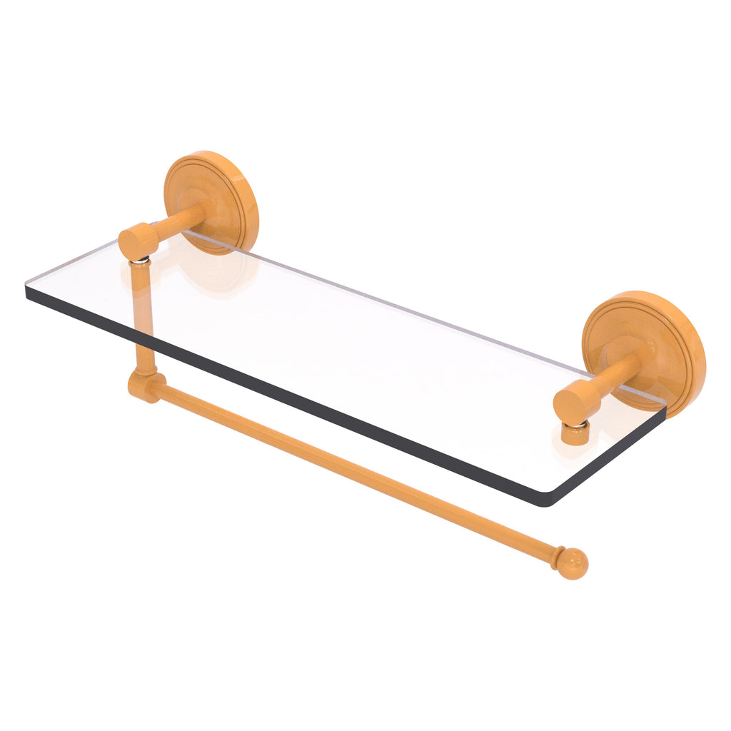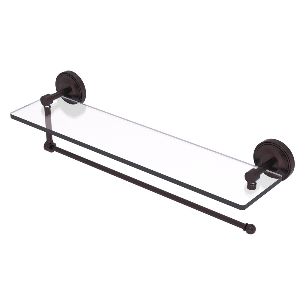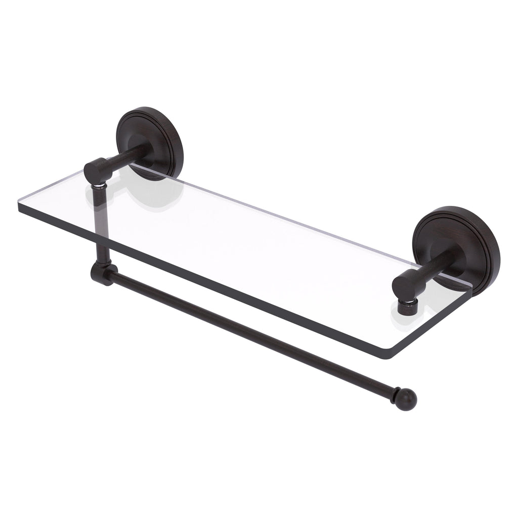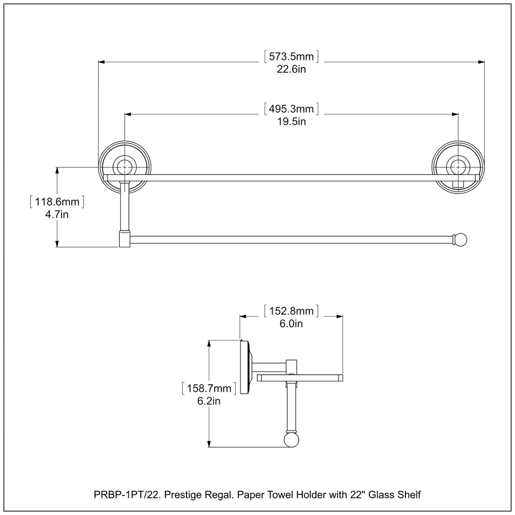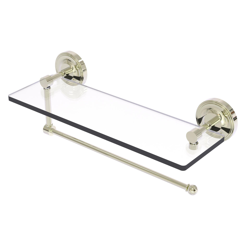 Maximize space and efficiency with this beautiful glass shelf and paper towel holder combination. Made of solid brass and tempered glass this classic unit will enhance any kitchen.