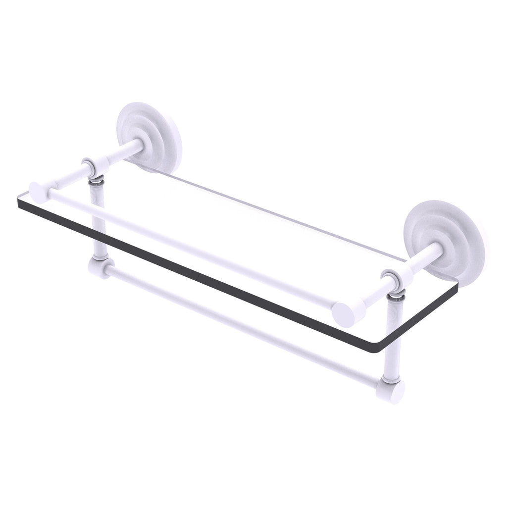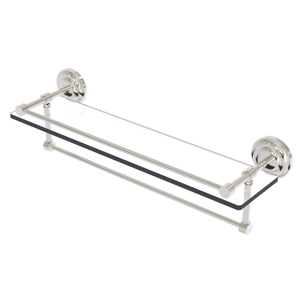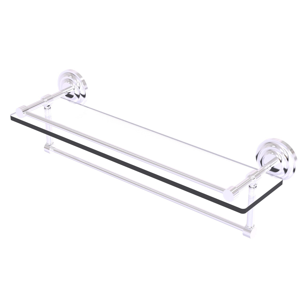 Add a flare of style to your décor with this decorative glass shelf. Shelf can be used anywhere in the home for a great space to store your products. Gallery rail will keep your items secure while the integrated towel bar provides a creative space for your towels. Tempered glass is 3/8 Inches thick and all of the hardware is made of solid brass and finished with the highest quality materials to provide a lifetime of beauty.