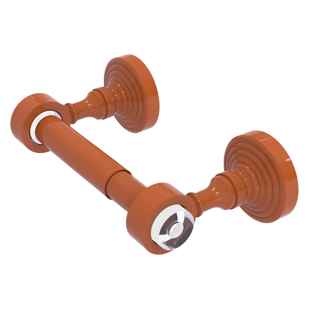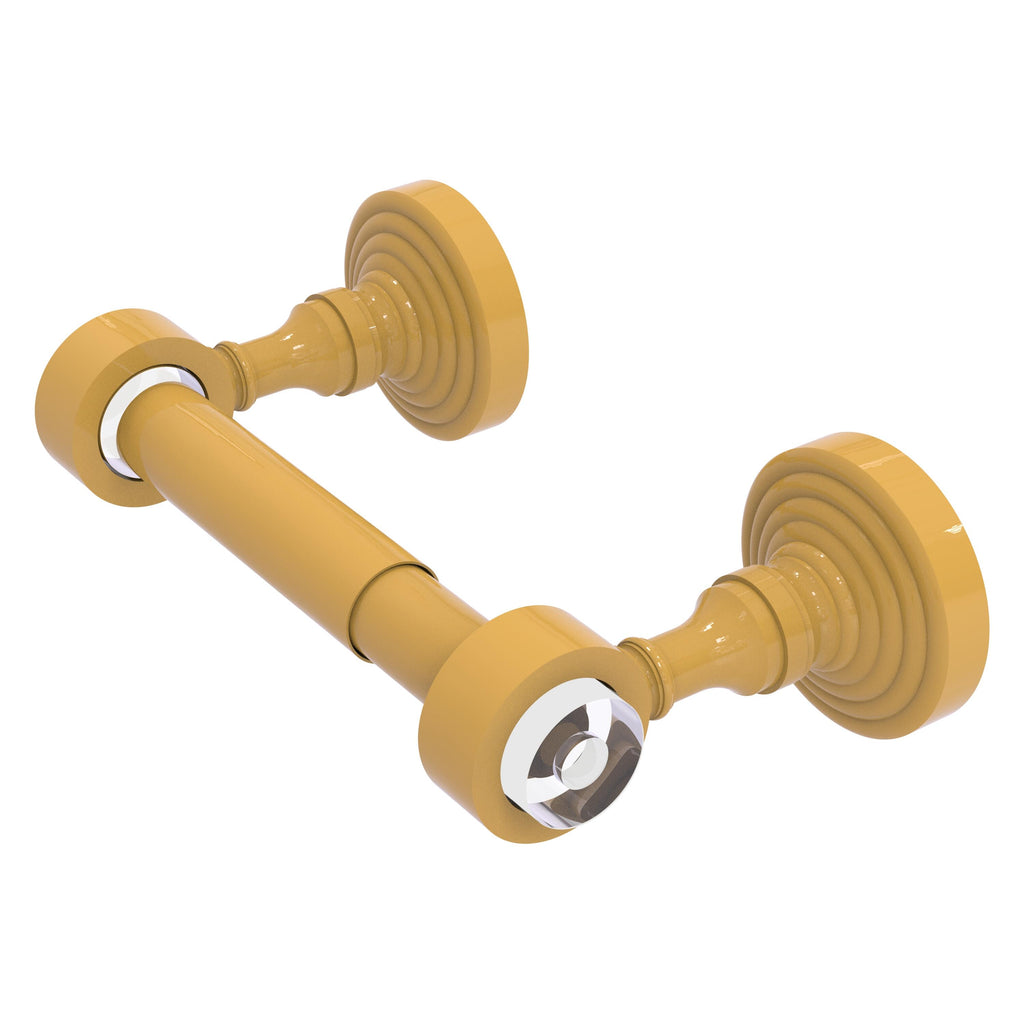 This elegant design echoes the circular design everywhere with timeless appeal. Toilet Paper holder includes bold use of clear acrylic to create an almost hypnotic look against the brass construction. Toilet Tissue Holder is finished with our designer lifetime finishes to provide unparalleled performance.