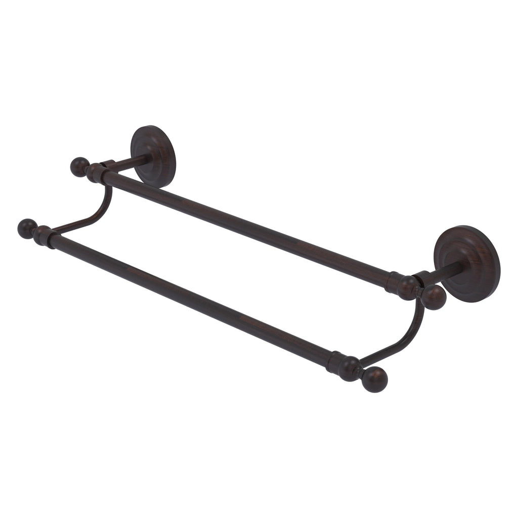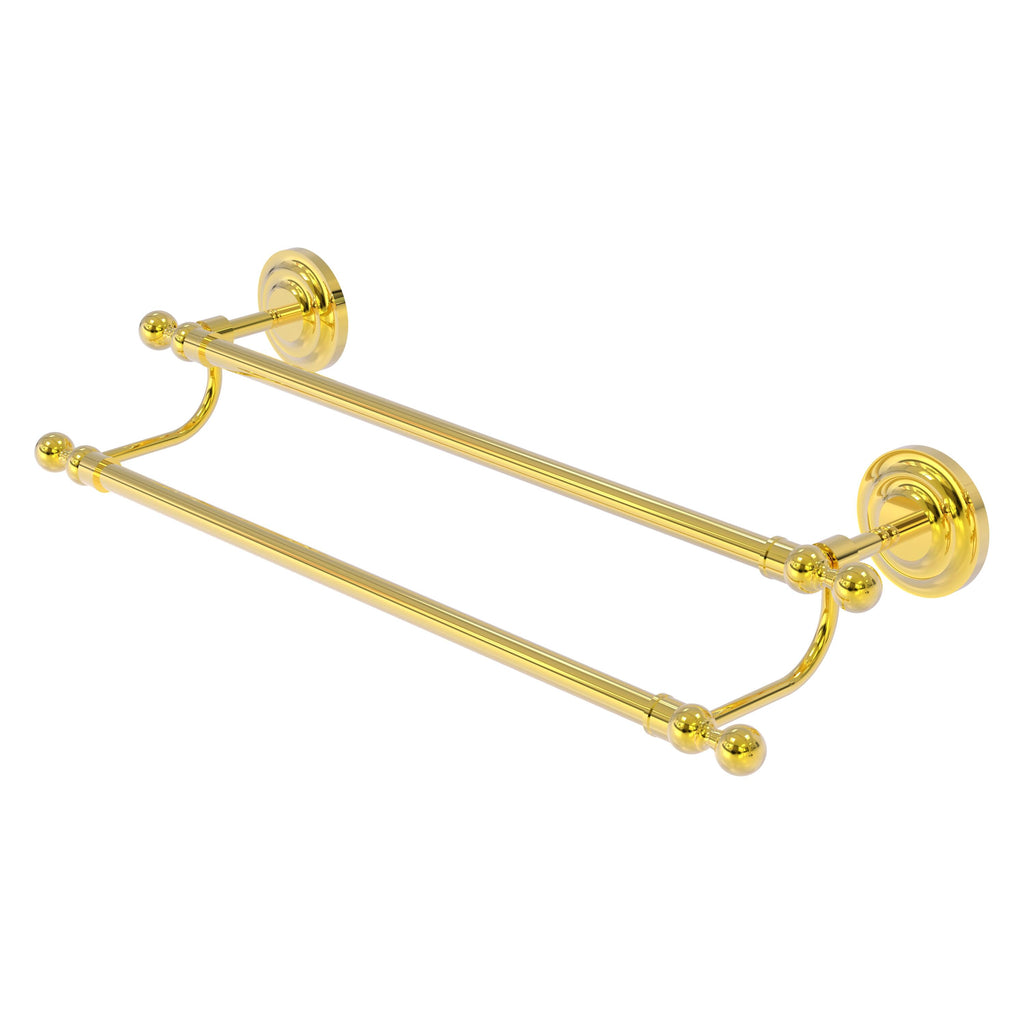 Add a stylish touch to your bathroom decor with this finely crafted double towel bar. This elegant bathroom accessory is created from the finest solid brass materials. High quality lifetime designer finishes are hand polished to perfection.