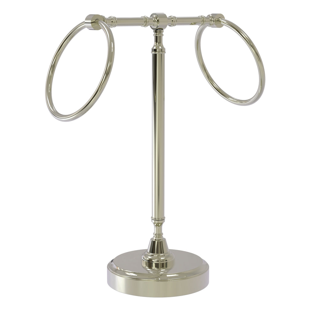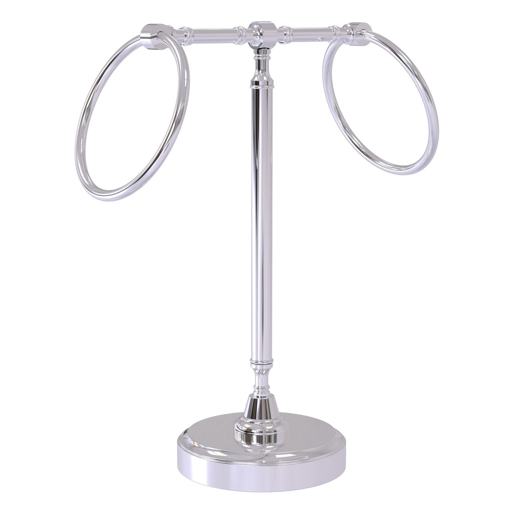 This elegant vanity top guest towel holder will add style and convenience to your bathroom décor. Guest towel holder has two rings to keep your towels within reach of the sink where they are needed. Guest towel stand is ideally sized for hand towels and washcloths. Heavy base will help prevent stand from tipping.