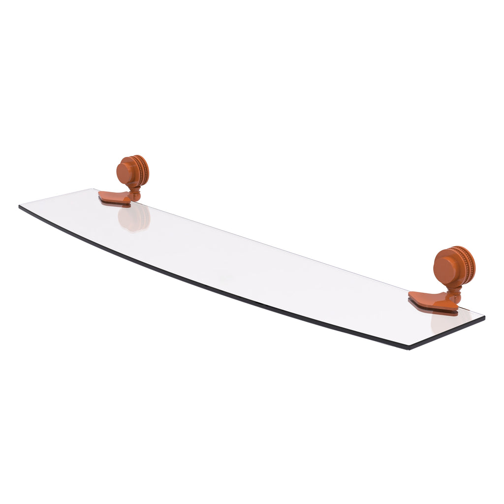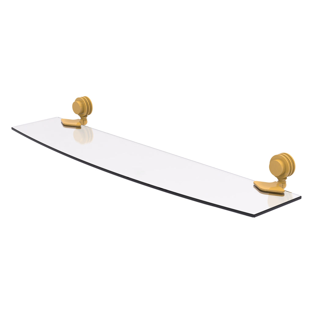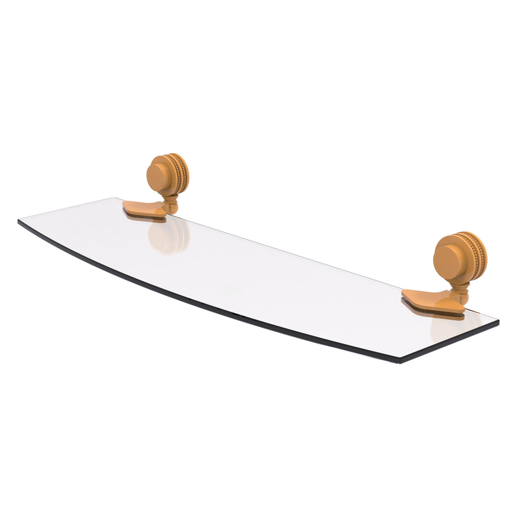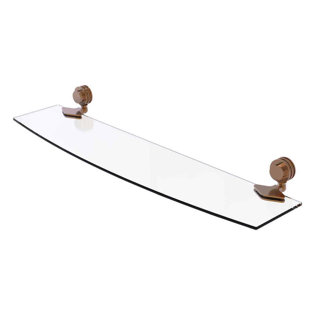 Add a flare of style to your décor with this decorative glass shelf. Shelf can be used anywhere in the home for a great space to store your products. Glass is 1/4 Inch thick and all of the hardware is made of solid brass and finished with the highest quality materials to provide a lifetime of beauty.