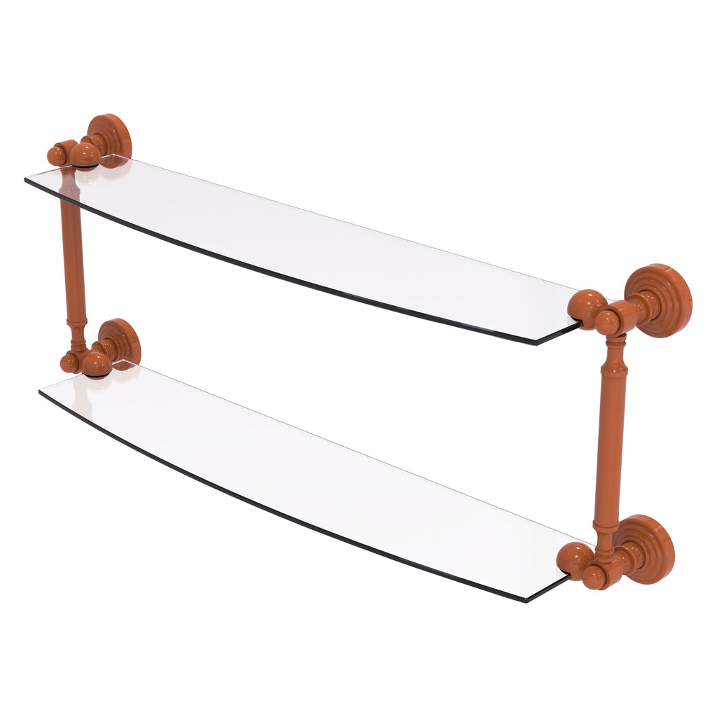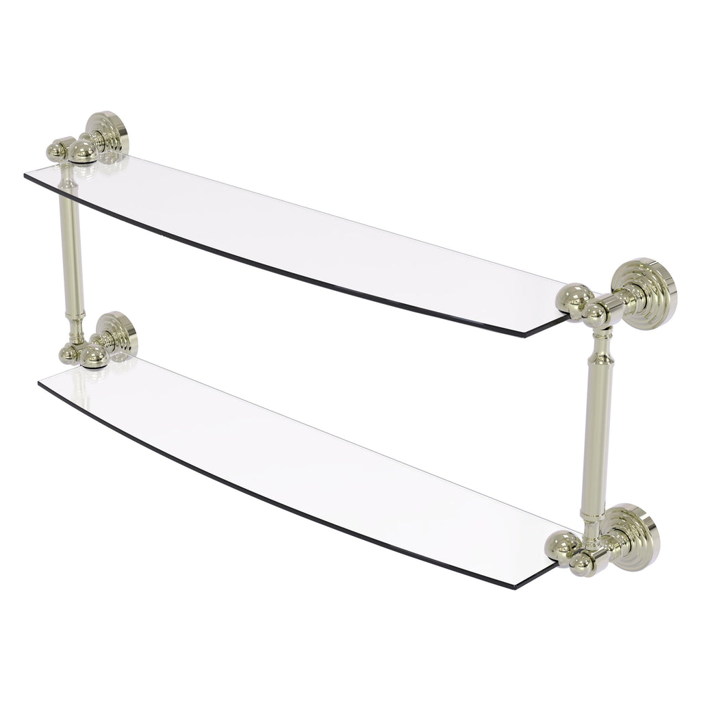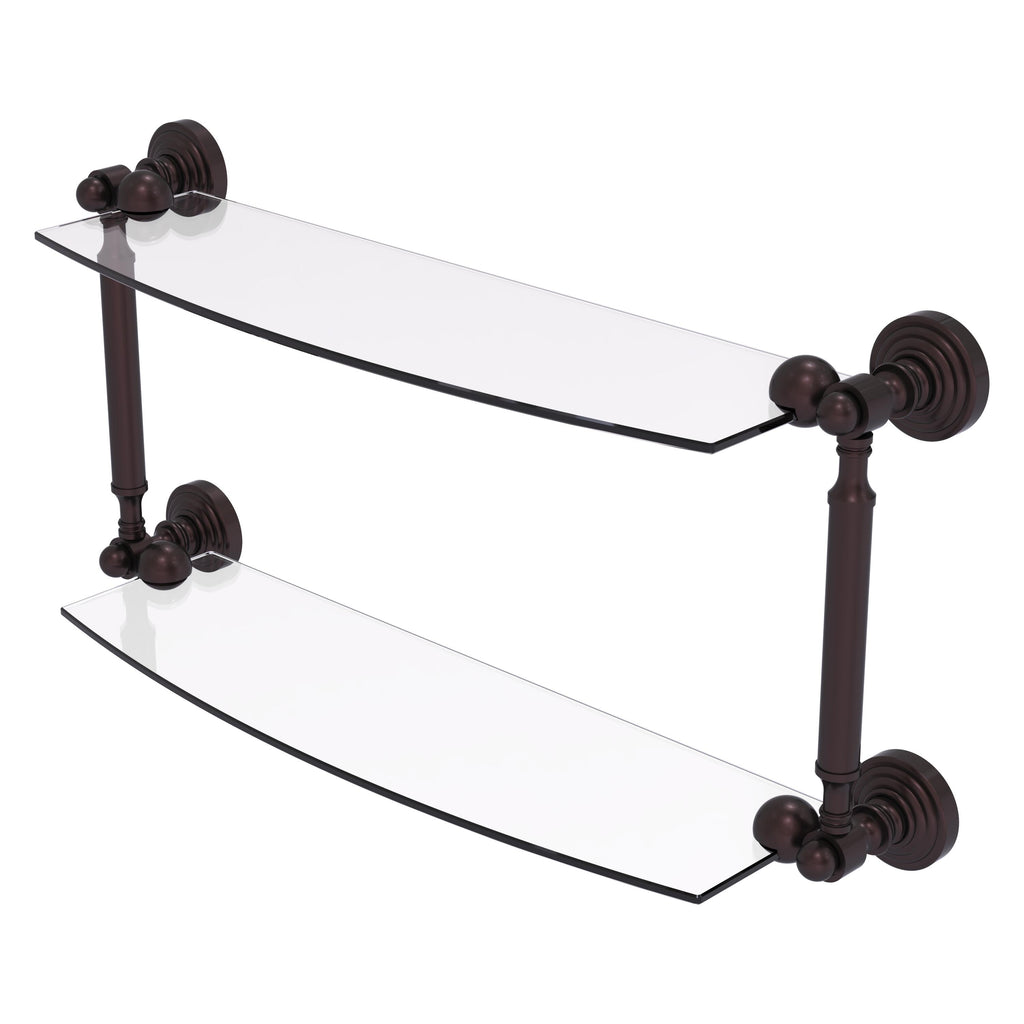 Add space and organization to your bathroom with this simple, contemporary style glass shelf. Featuring tempered, beveled-edged glass and solid brass hardware this shelf is crafted for durability, strength and style. One of the many coordinating accessories in the Allied Brass Collection of products, this subtle glass shelf is the perfect complement to your bathroom decor.