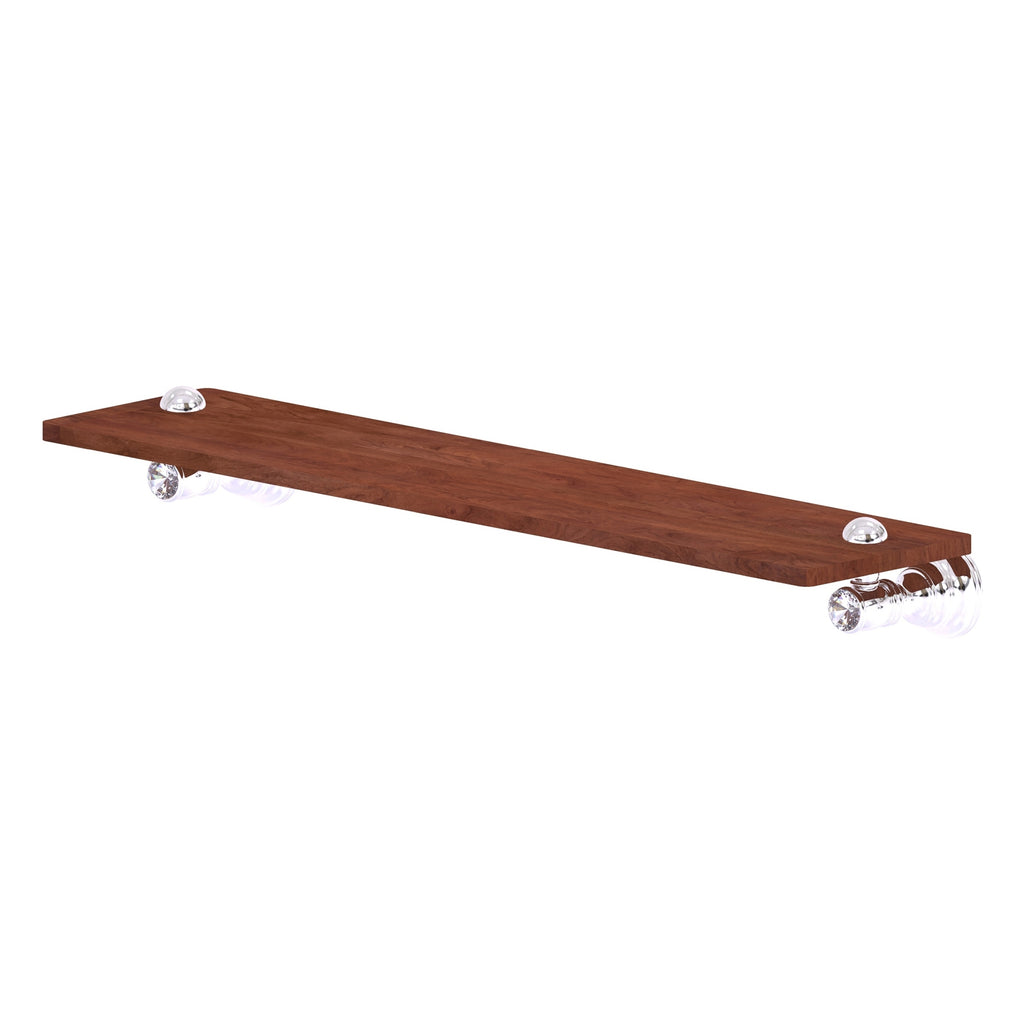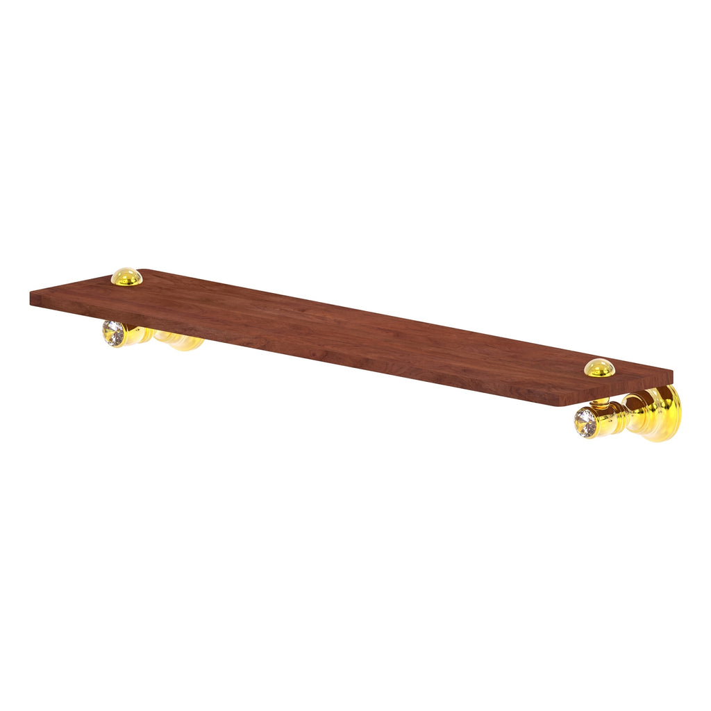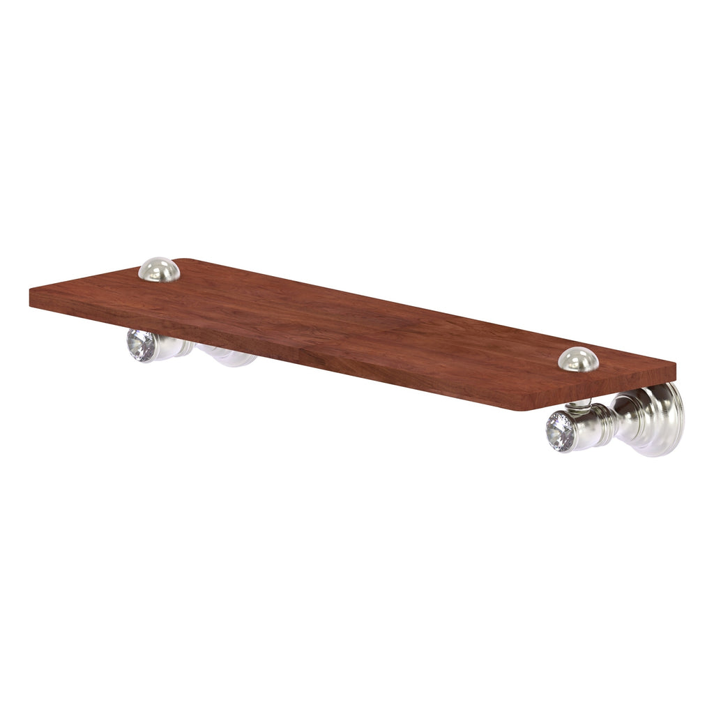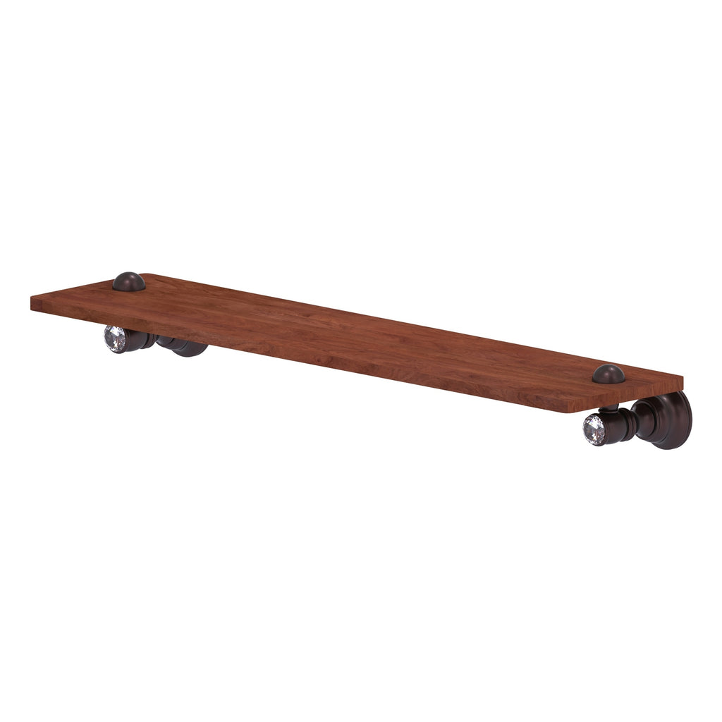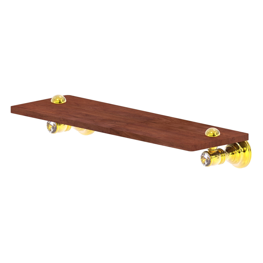 Reimagine your bathroom with this finely crafted wood shelf with crystal accents. Traditional styling and superior quality resonate from this handcrafted hardwood shelf. Featuring the finest hardwood and solid brass hardware this shelf is crafted for durability strength and style. One of the many coordinating accessories in the Allied Brass Collection of accessories; this decorative wood shelf with the added sparkle of crystal is the perfect complement to your bathroom decor.