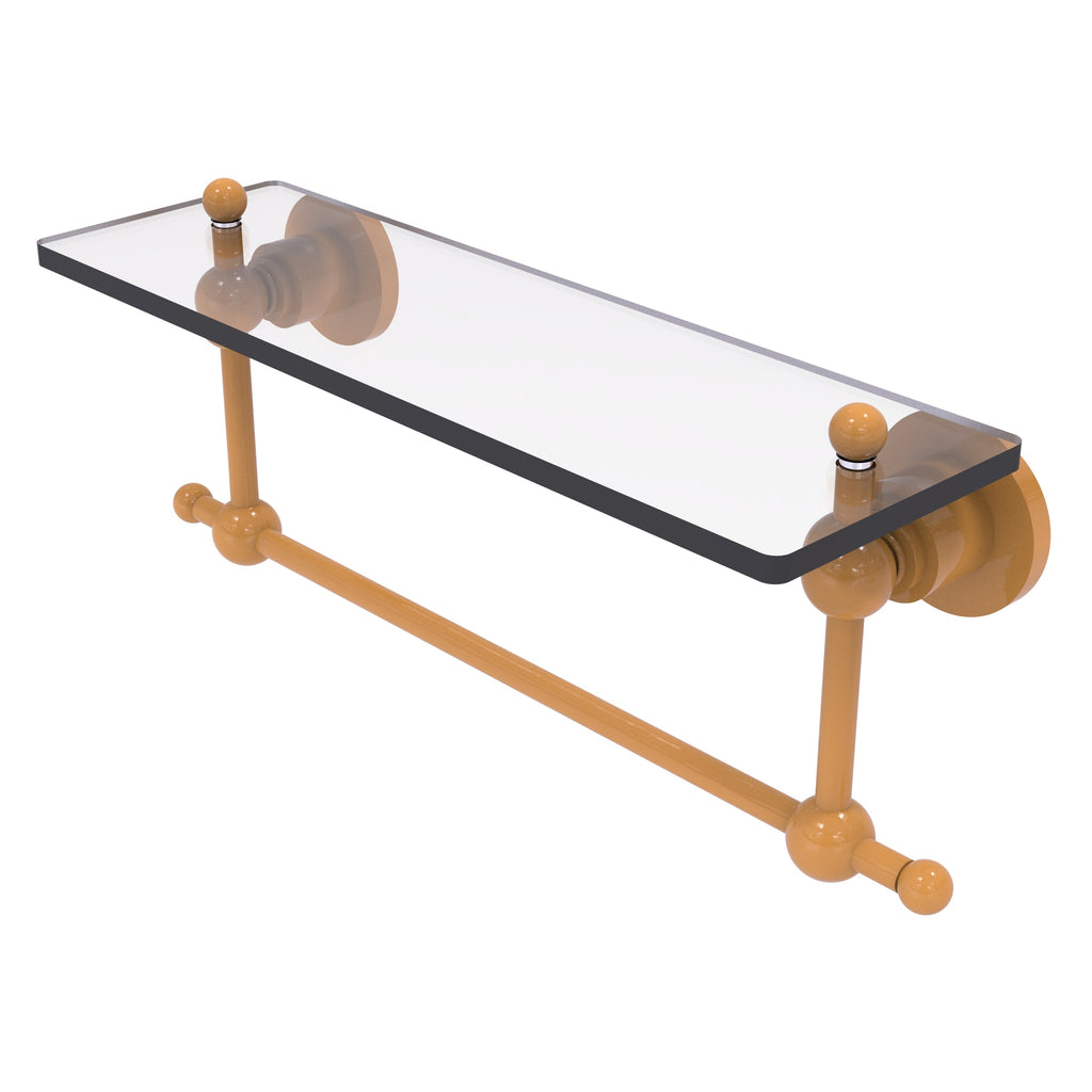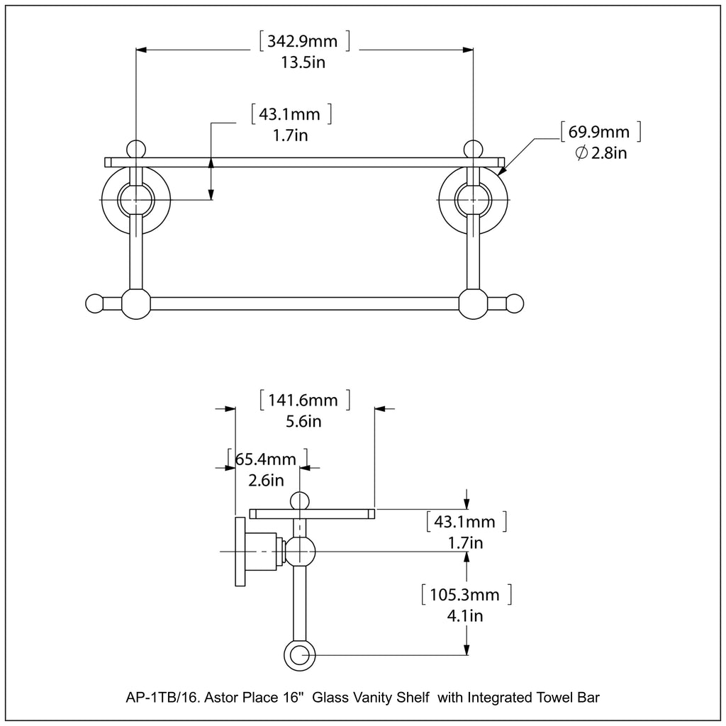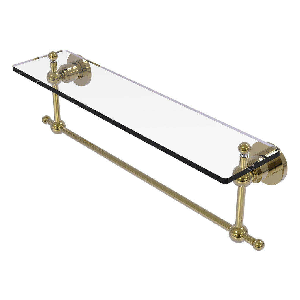 Add space and organization to your bathroom with this simple, contemporary style glass shelf. Featuring tempered, beveled-edged glass and solid brass hardware this shelf is crafted for durability, strength and style. One of the many coordinating accessories in the Allied Brass Astor Place Collection, this subtle glass shelf is the perfect complement to your bathroom decor.