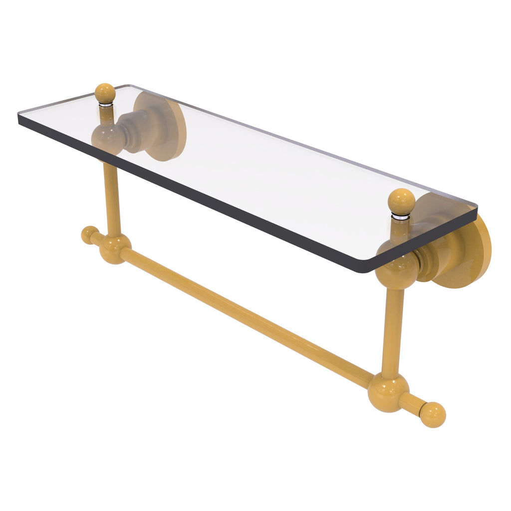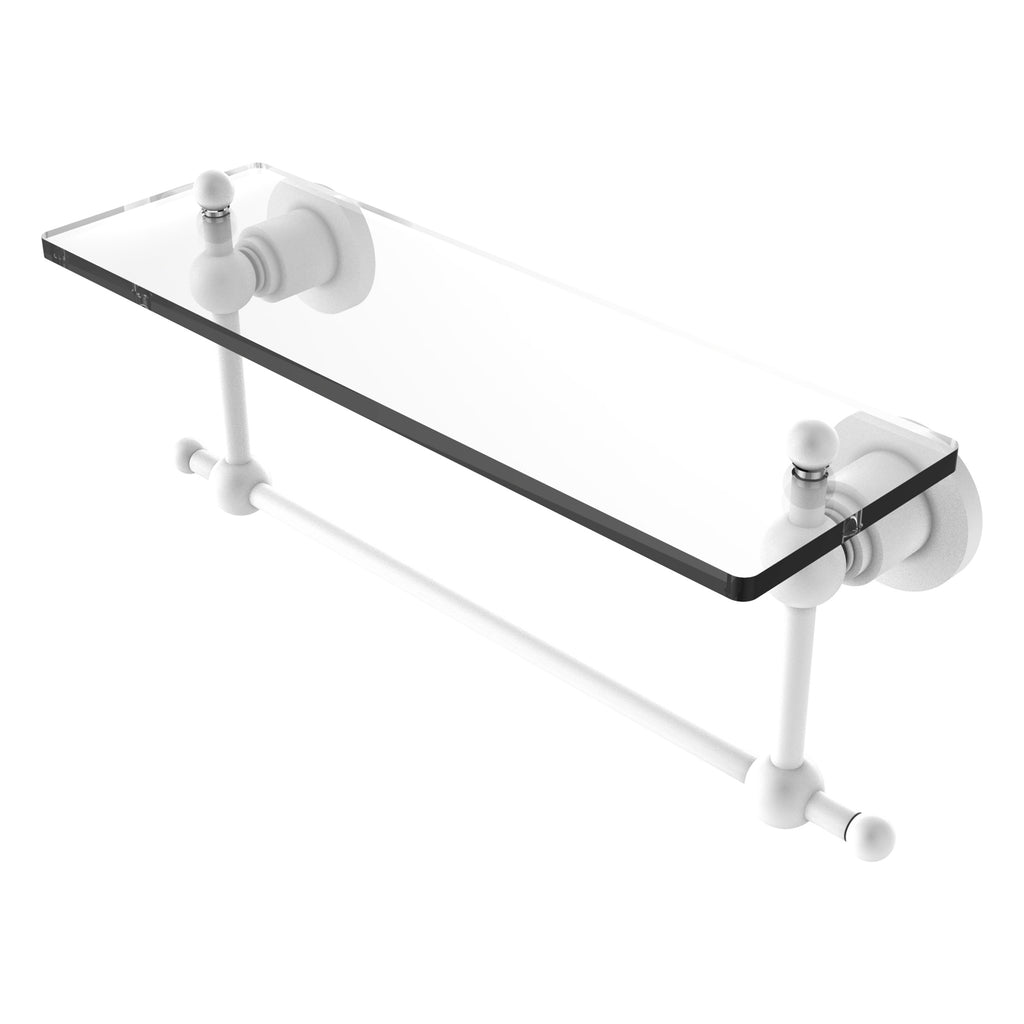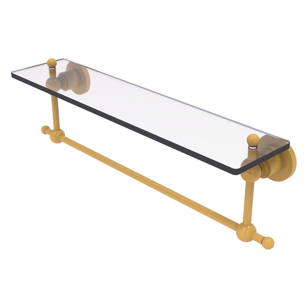 Add space and organization to your bathroom with this simple, contemporary style glass shelf. Featuring tempered, beveled-edged glass and solid brass hardware this shelf is crafted for durability, strength and style. One of the many coordinating accessories in the Allied Brass Astor Place Collection, this subtle glass shelf is the perfect complement to your bathroom decor.