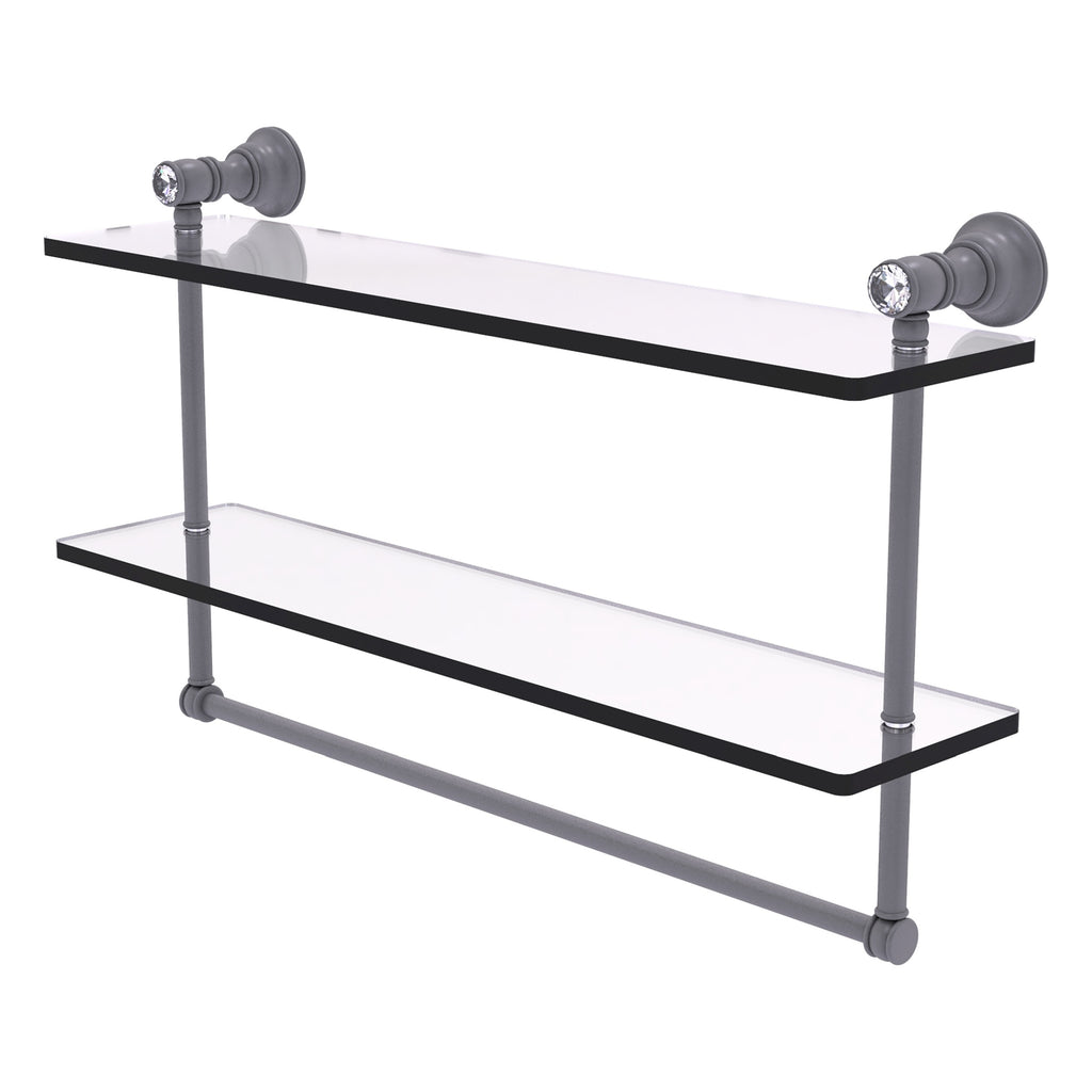 - Crystal accents add an elegant touch