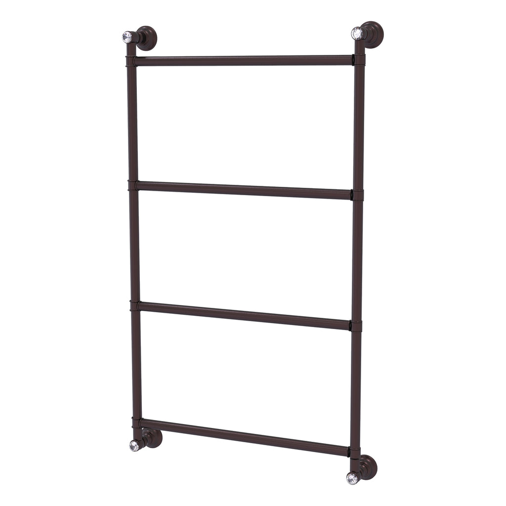 The traditional styling of this ladder towel bar with crystal cap accents from the Allied Brass Carolina Crystal Collection is a perfect addition to any bathroom. The 4 horizontal bars at varying heights make it fun to stack your favorite towels while allowing this accessory to be user friendly at all heights. Not only is this ladder towel bar an efficient use of space, it is unique and highly sophisticated and stylish. Coordinate this item with other exciting accessories from the Allied Brass Carolina Crystal Collection to complete your design.