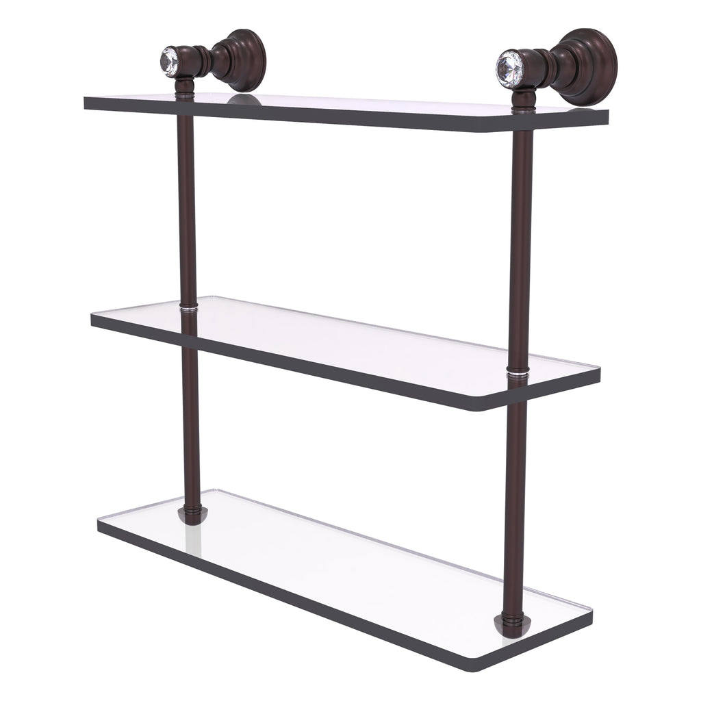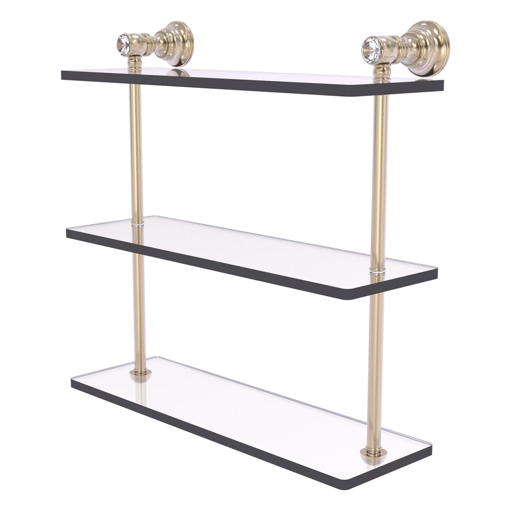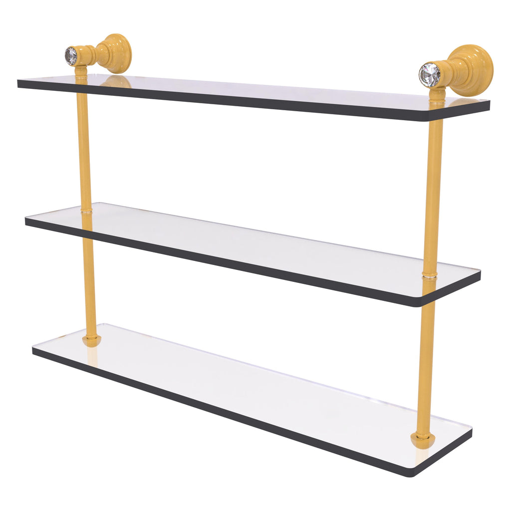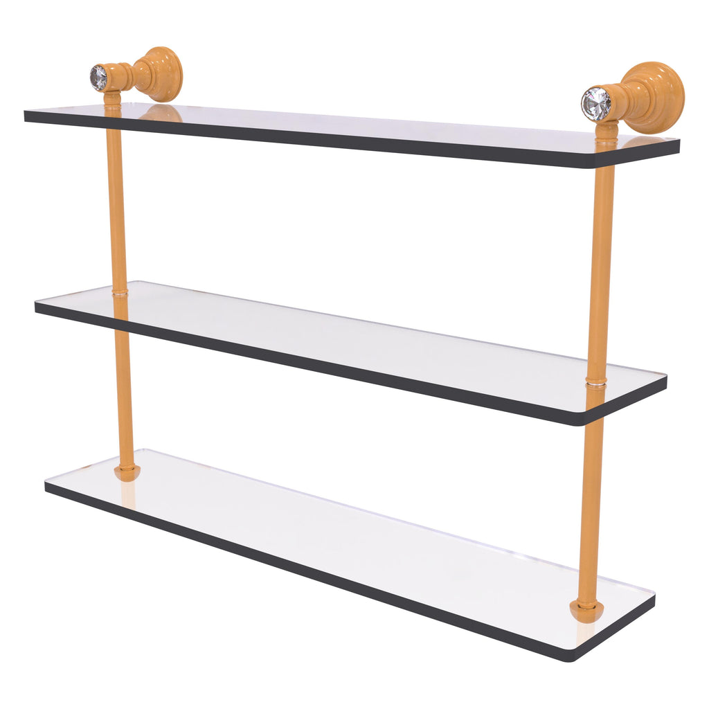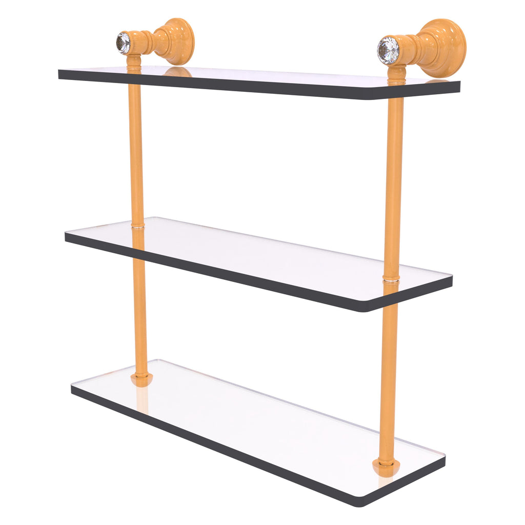Reimagine your bathroom with this finely crafted triple glass shelf with crystal accents. Traditional styling and superior quality resonate from this hand crafted glass shelf. The 3 tiers of this shelf make great use of your wall space while providing plenty of room for storage. Featuring thick, beveled-edge glass and solid brass hardware this shelf with the dazzle of crystal is crafted for durability, strength and style.