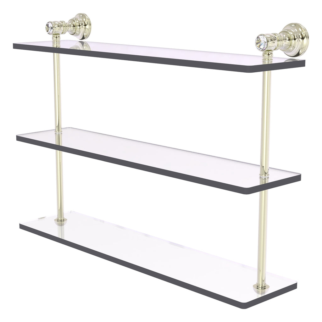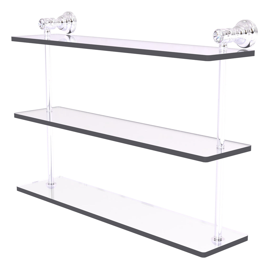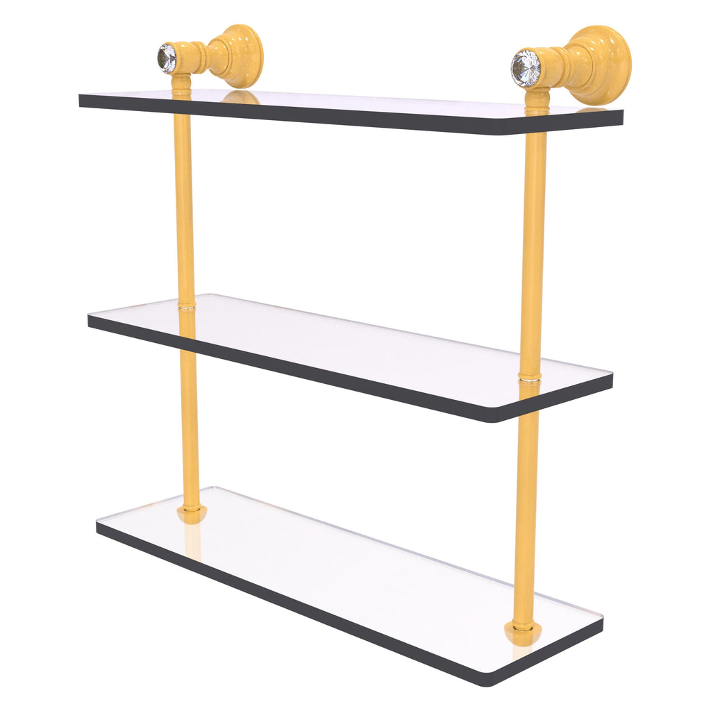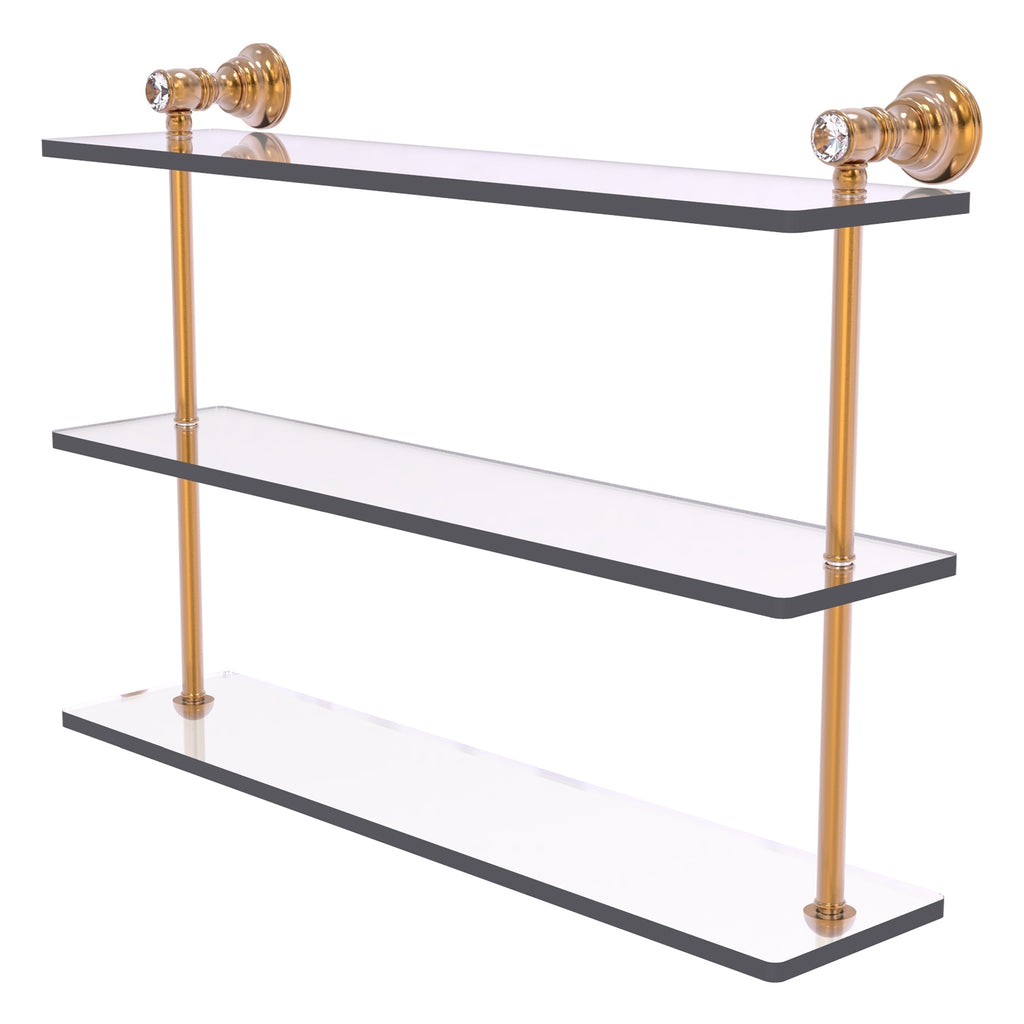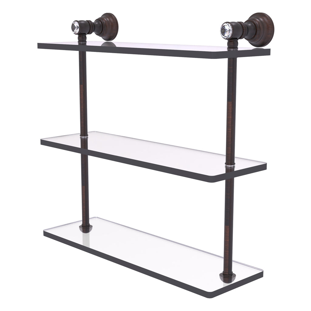Reimagine your bathroom with this finely crafted triple glass shelf with crystal accents. Traditional styling and superior quality resonate from this hand crafted glass shelf. The 3 tiers of this shelf make great use of your wall space while providing plenty of room for storage. Featuring thick, beveled-edge glass and solid brass hardware this shelf with the dazzle of crystal is crafted for durability, strength and style.