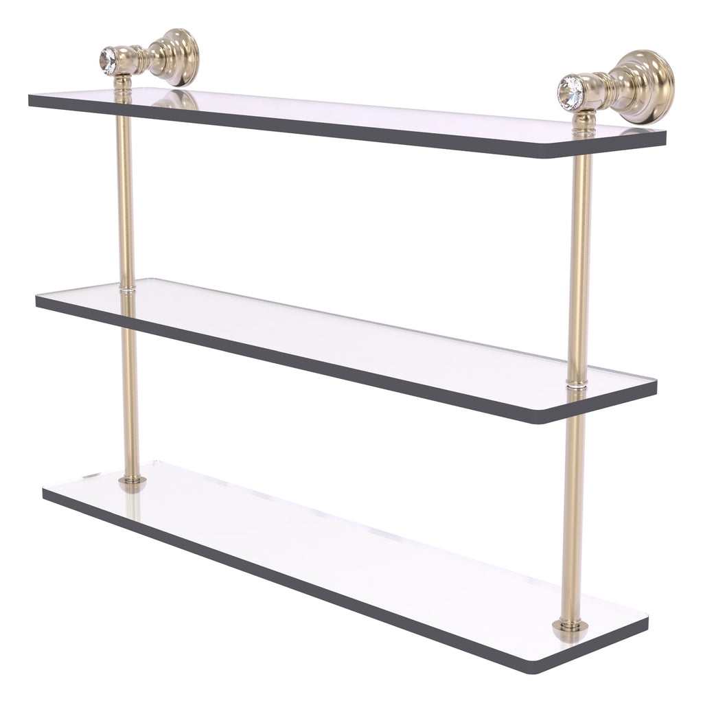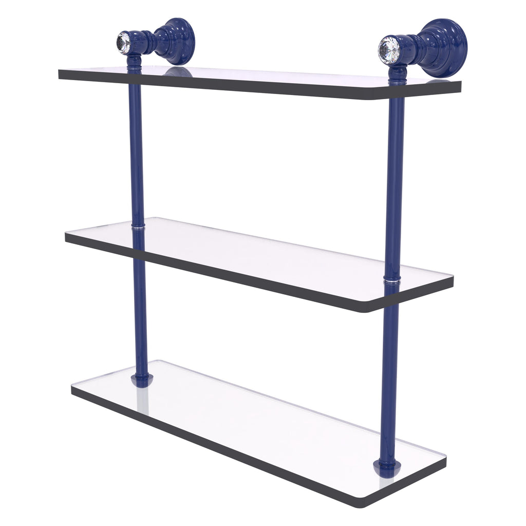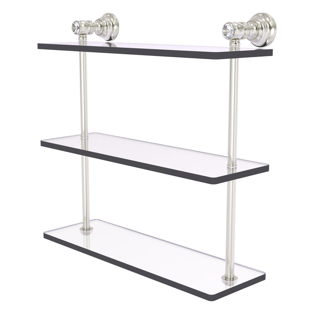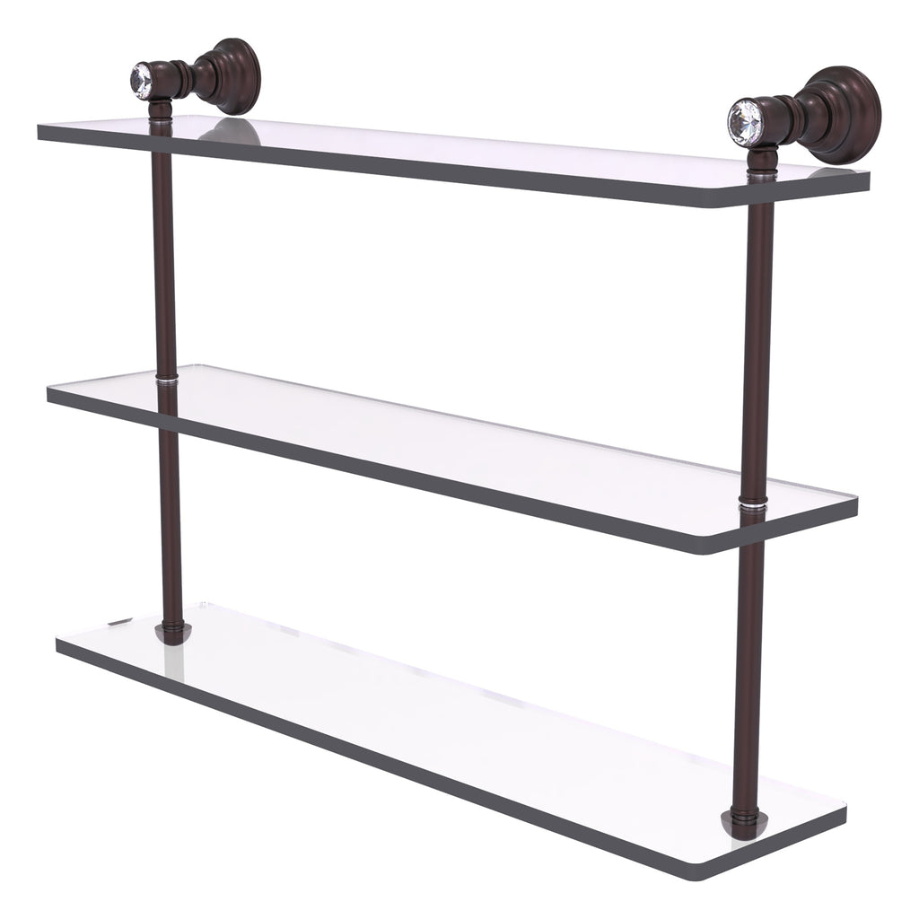 Reimagine your bathroom with this finely crafted triple glass shelf with crystal accents. Traditional styling and superior quality resonate from this hand crafted glass shelf. The 3 tiers of this shelf make great use of your wall space while providing plenty of room for storage. Featuring thick, beveled-edge glass and solid brass hardware this shelf with the dazzle of crystal is crafted for durability, strength and style.