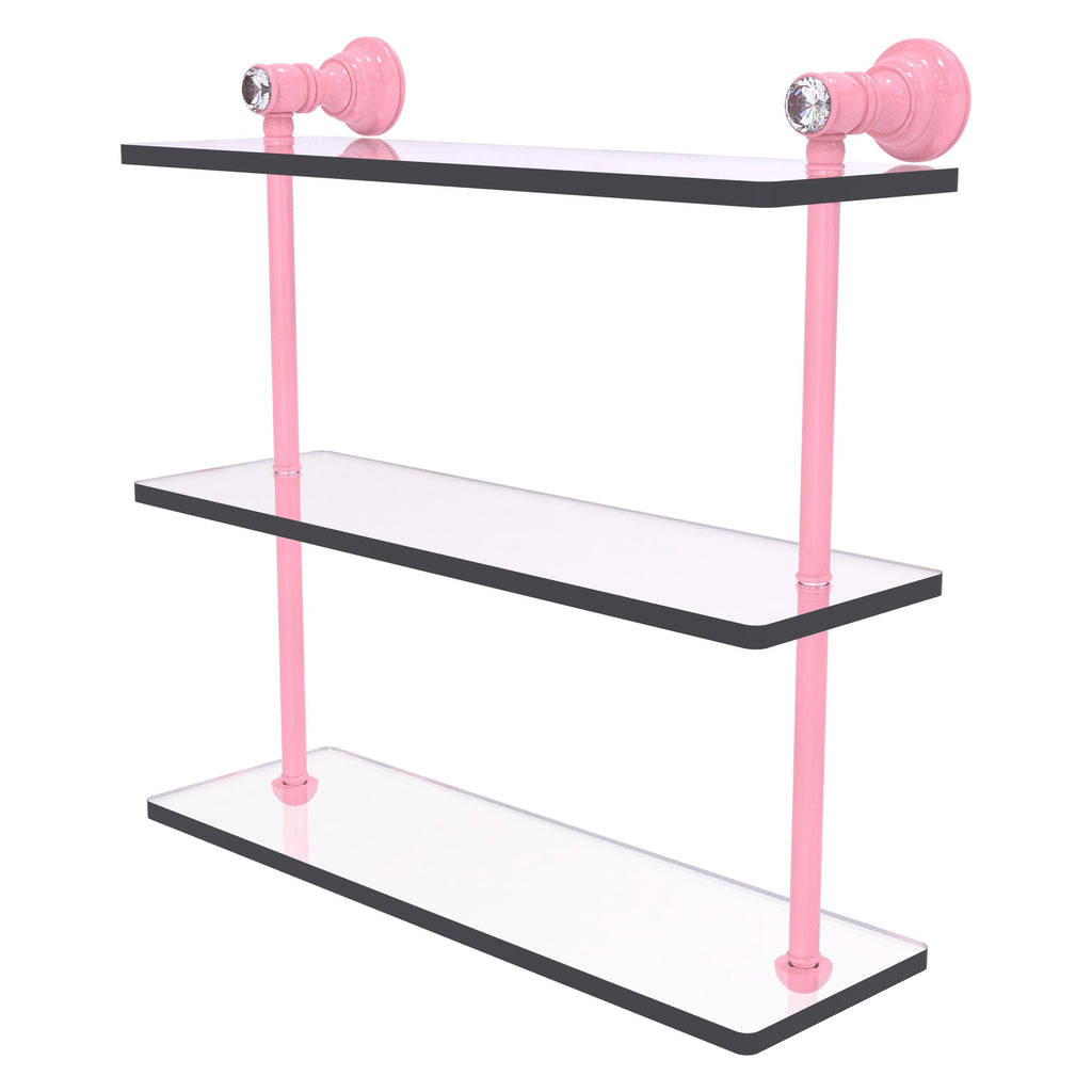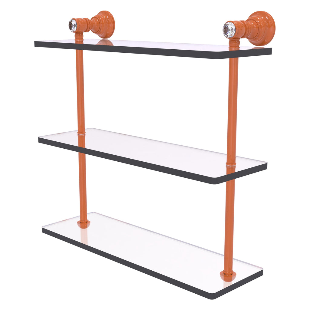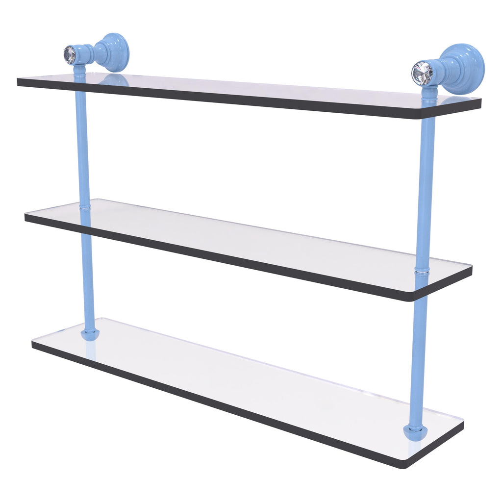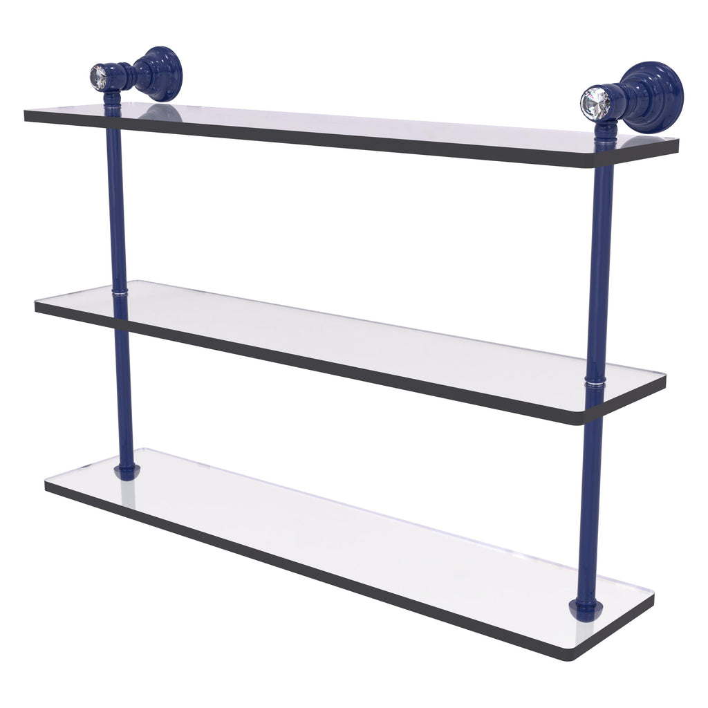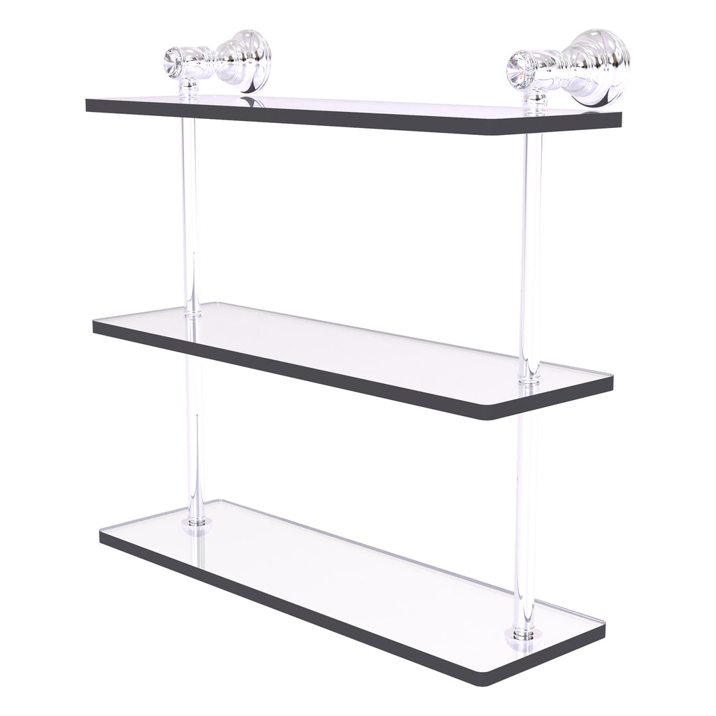 Reimagine your bathroom with this finely crafted triple glass shelf with crystal accents. Traditional styling and superior quality resonate from this hand crafted glass shelf. The 3 tiers of this shelf make great use of your wall space while providing plenty of room for storage. Featuring thick, beveled-edge glass and solid brass hardware this shelf with the dazzle of crystal is crafted for durability, strength and style.