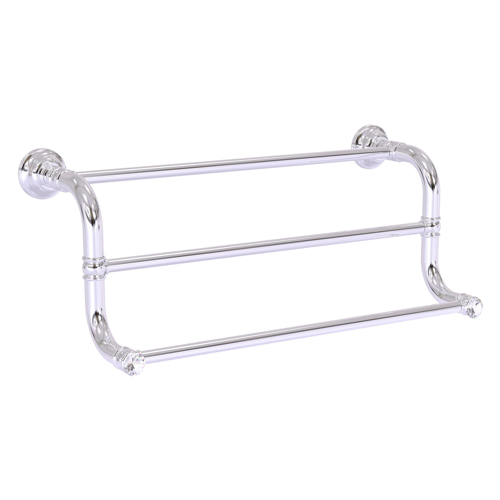 Upgrade your bathroom with the 3 Bar Hand Towel Rack from the Carolina Crystal Collection. With its unique curved and tiered design, this accessory is both stylish and functional. The crystal cap accents add an elegant touch to your bathroom decor, making it a true statement piece. The high-quality brass construction and lifetime designer finish ensure that this towel rack is not only stylish but also durable. The triple bar design allows you to present hand towels to your guests in a sophisticated manner. If you prefer classic styling in your bath decor, the Carolina Crystal Collection offers a range of bath accessories to meet your design and decorating needs.