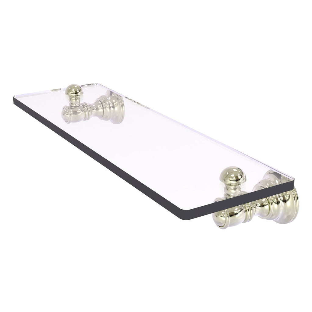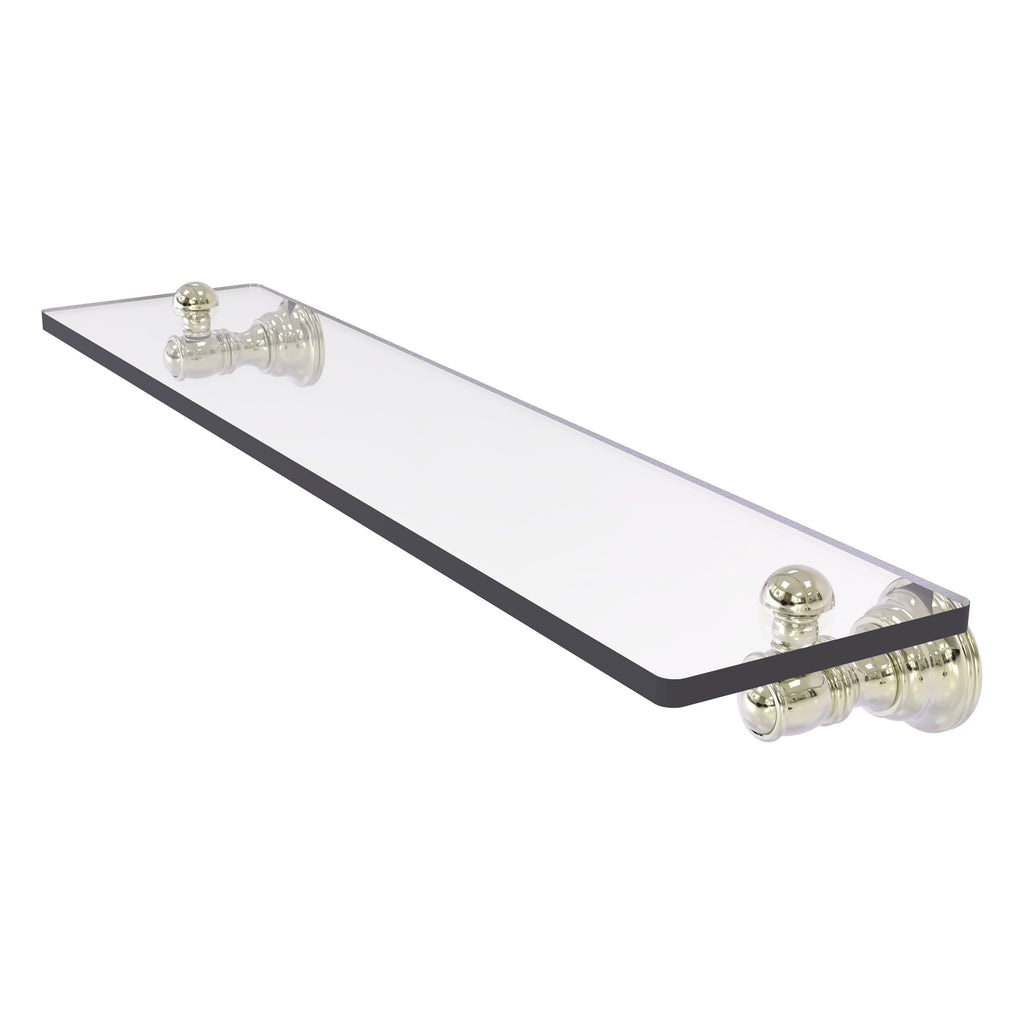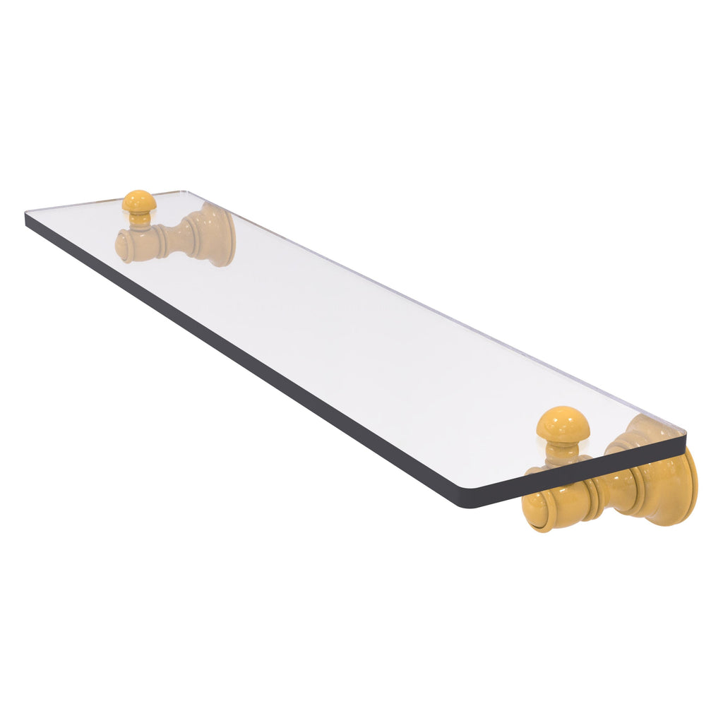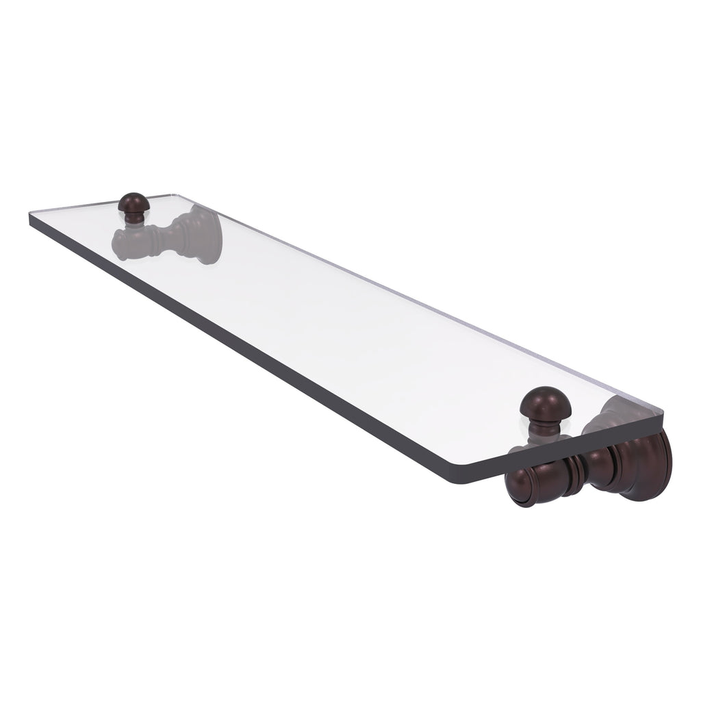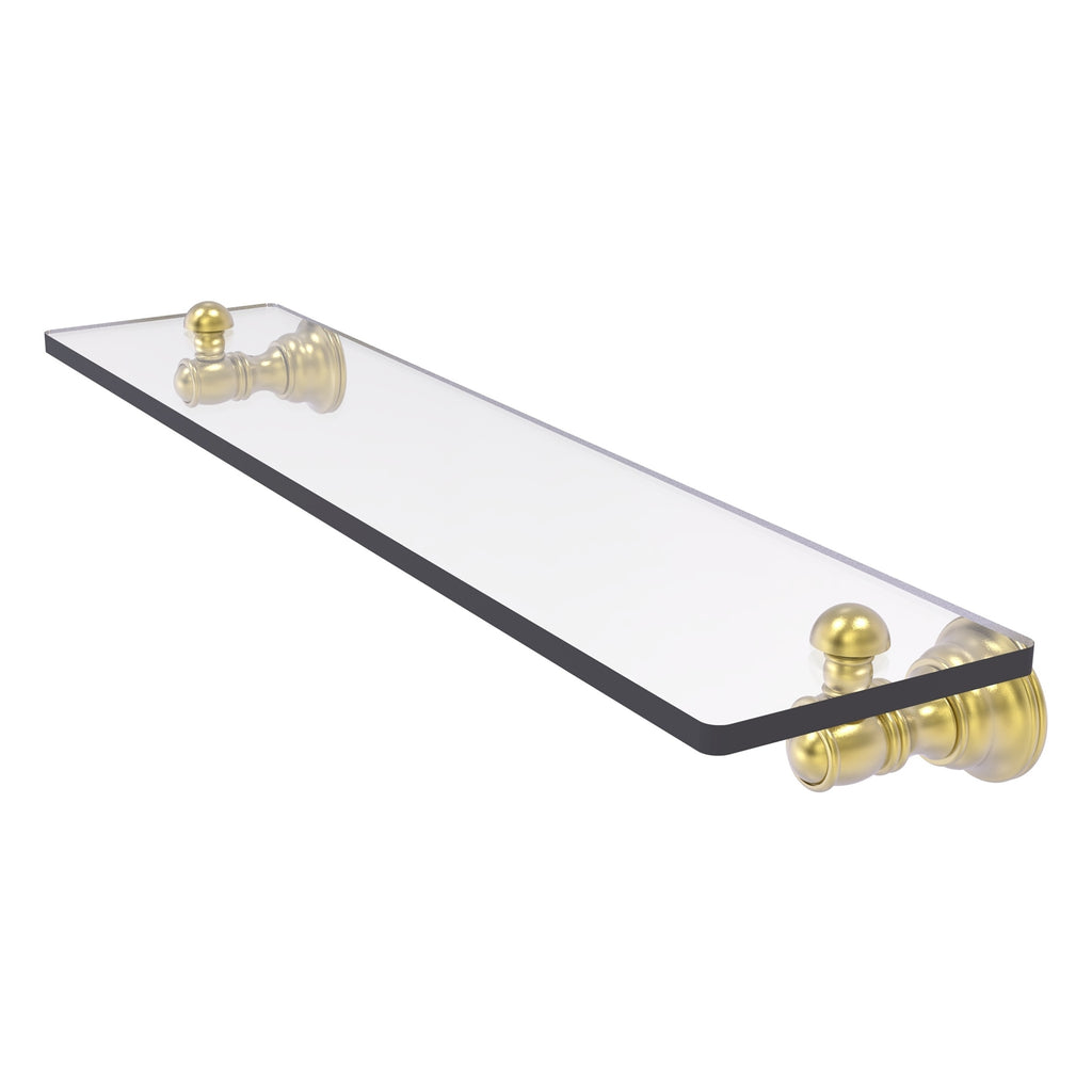 Reimagine your bathroom with this finely crafted glass shelf. Traditional styling and superior quality resonate from this hand crafted glass shelf. Featuring thick, beveled-edge glass and solid brass hardware this shelf is crafted for durability strength and style. One of the many coordinating accessories in the Allied Brass Collection of accessories, this subtle glass shelf is the perfect complement to your bathroom decor.