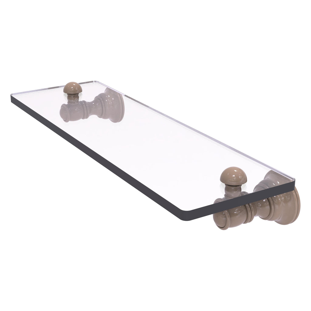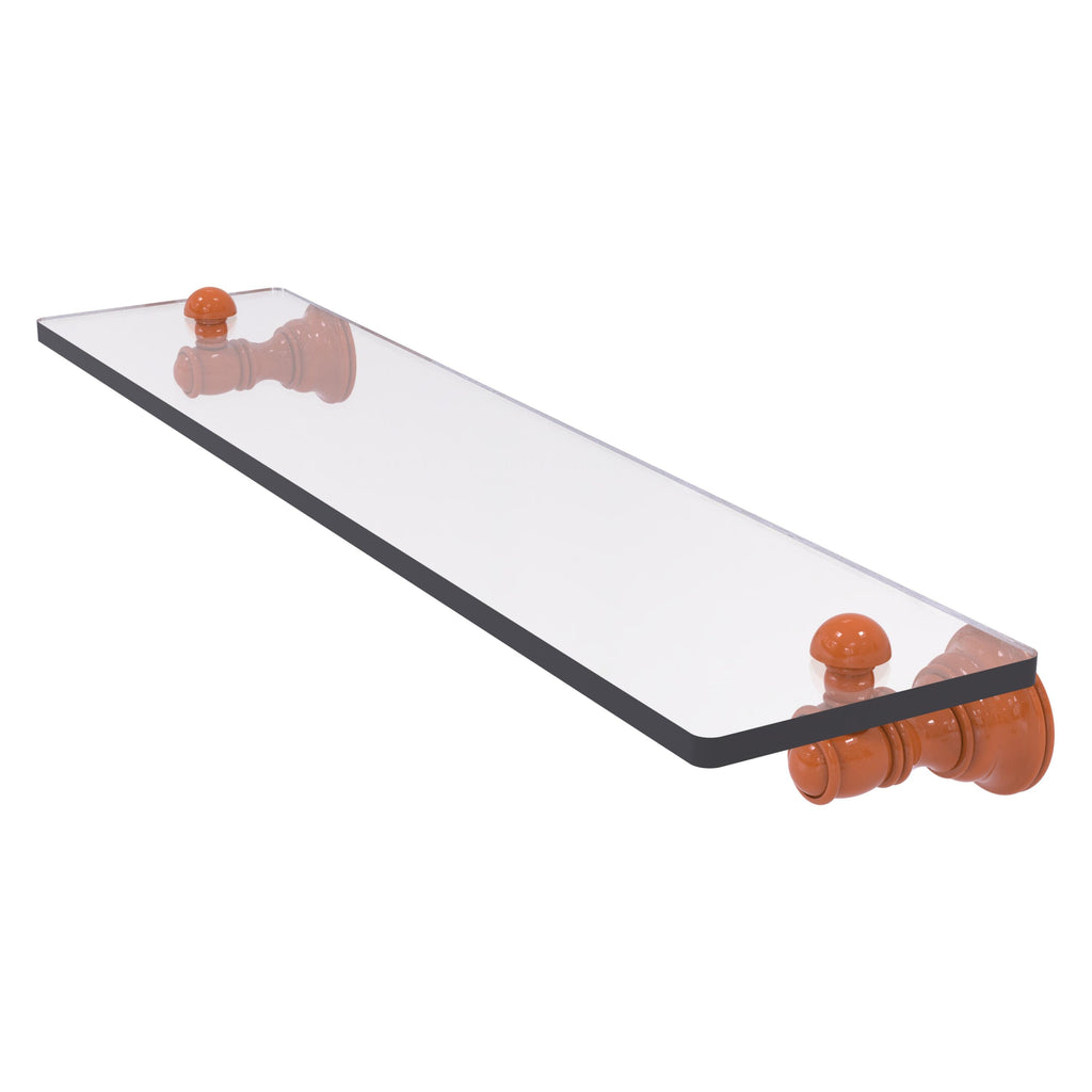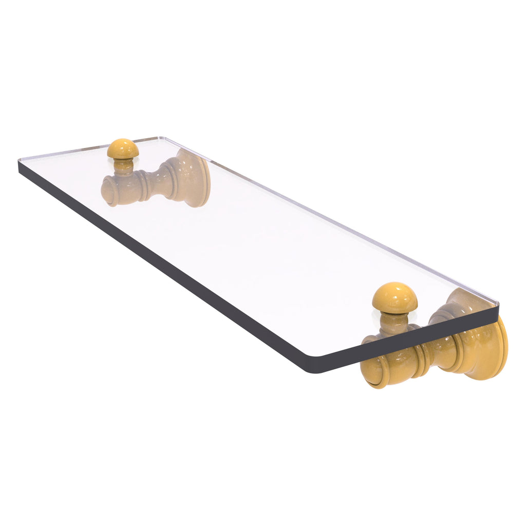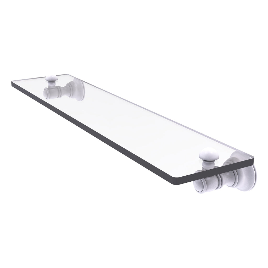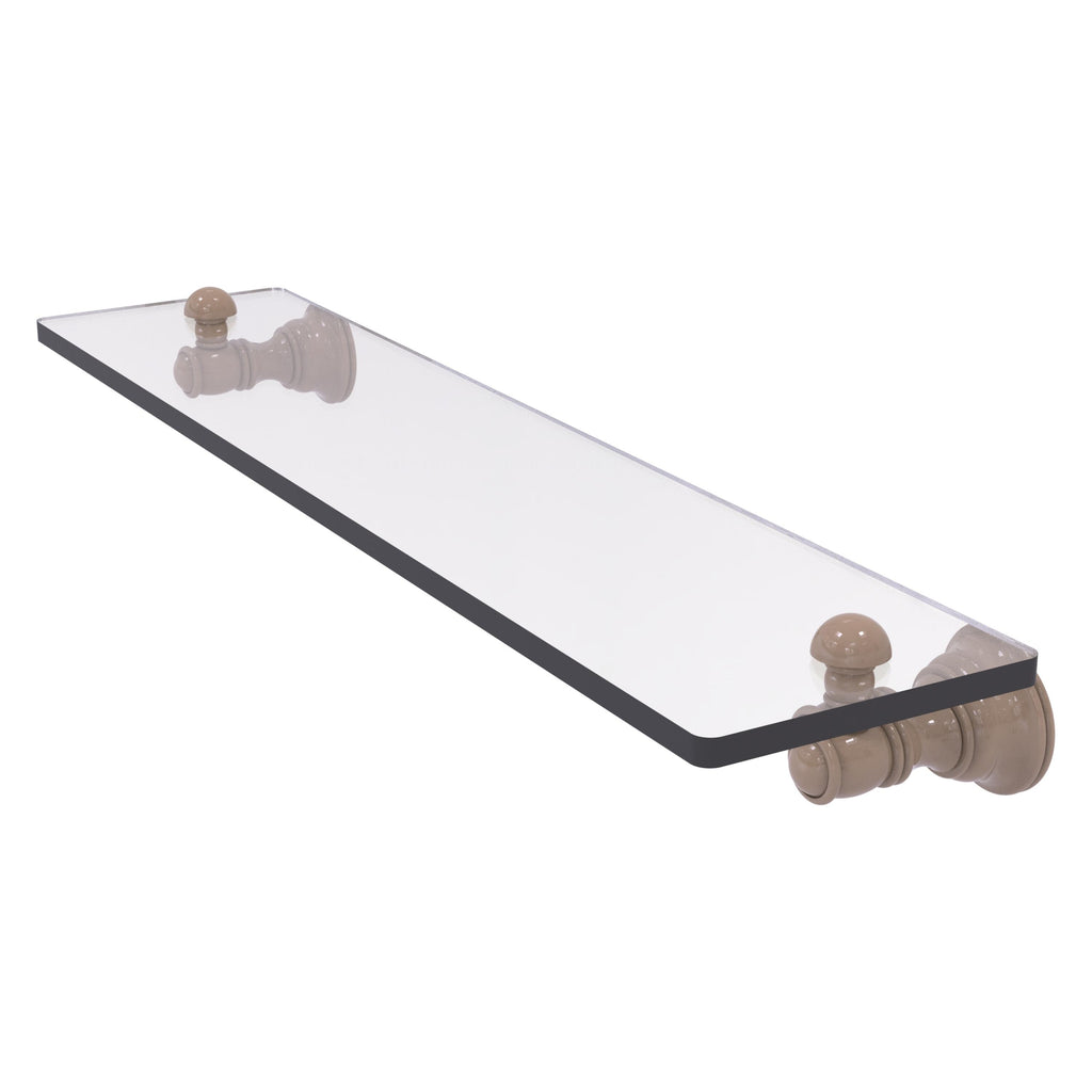 Reimagine your bathroom with this finely crafted glass shelf. Traditional styling and superior quality resonate from this hand crafted glass shelf. Featuring thick, beveled-edge glass and solid brass hardware this shelf is crafted for durability strength and style. One of the many coordinating accessories in the Allied Brass Collection of accessories, this subtle glass shelf is the perfect complement to your bathroom decor.