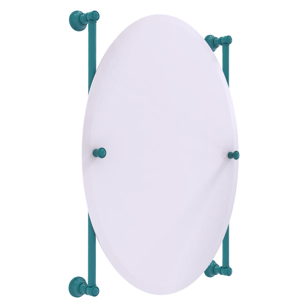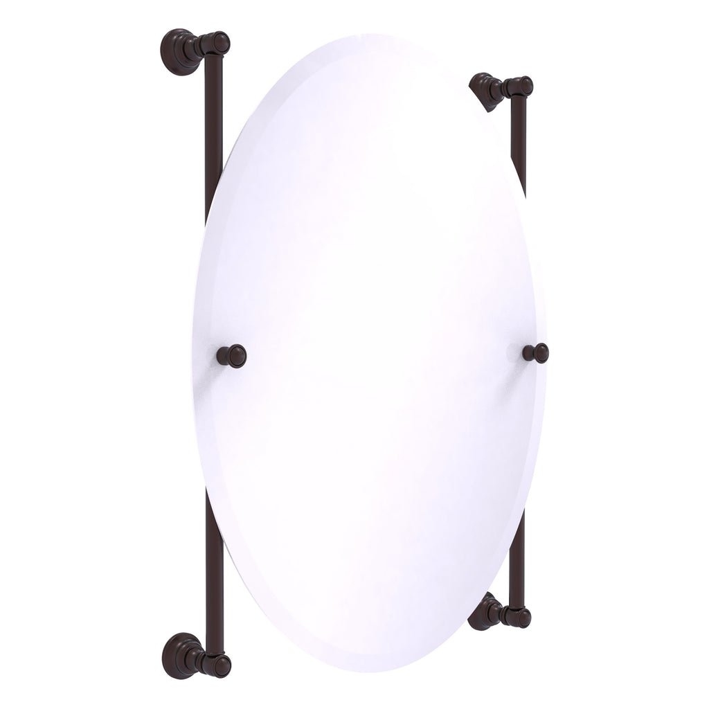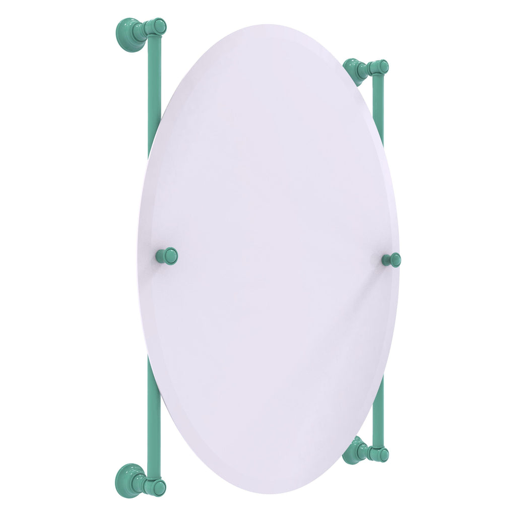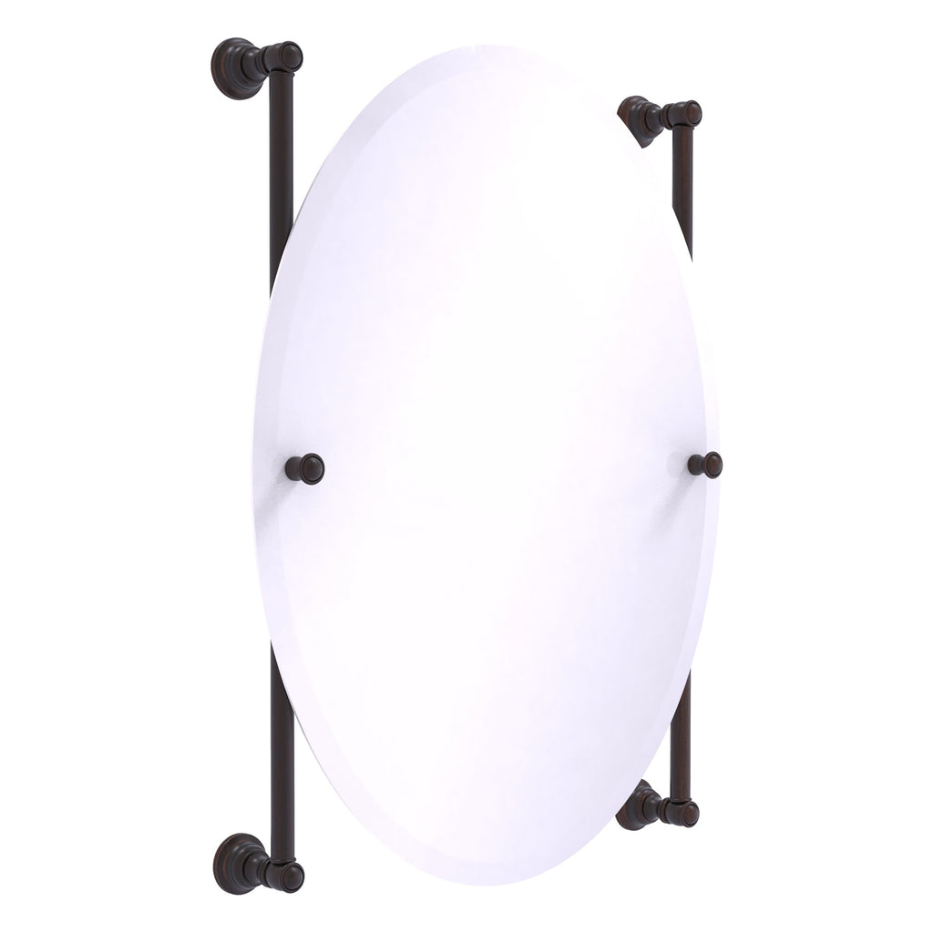 - Frameless 21 x 29 inch oval mirror with beveled edge