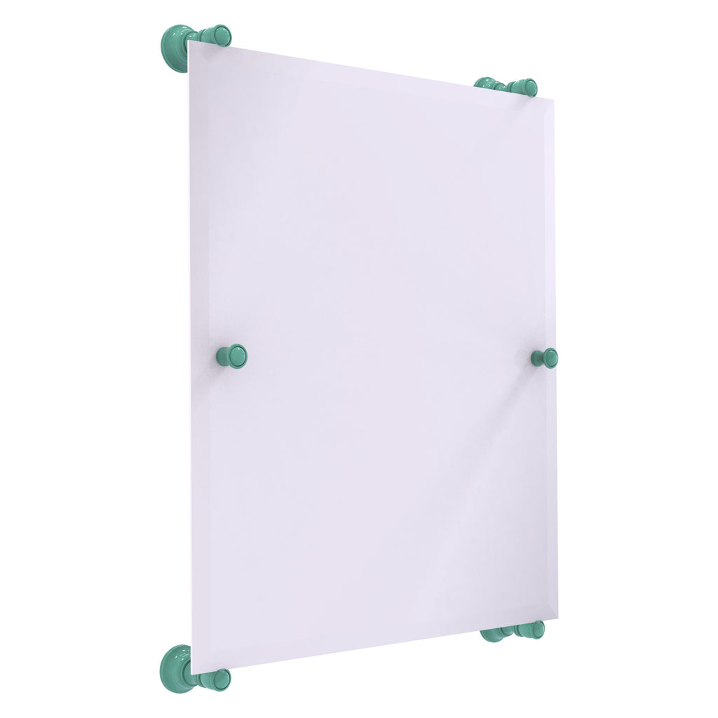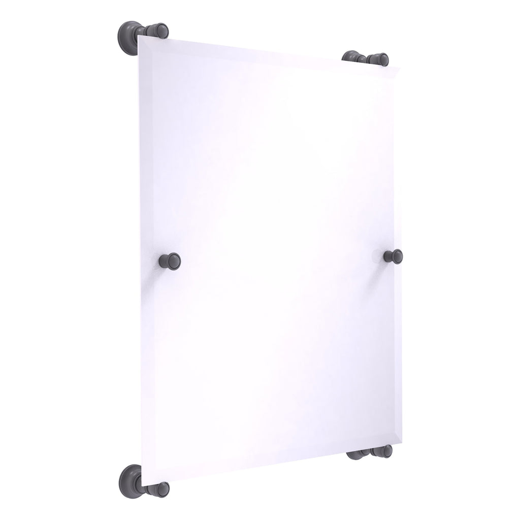- Frameless 21 x 26 inch rectangular mirror with beveled edge