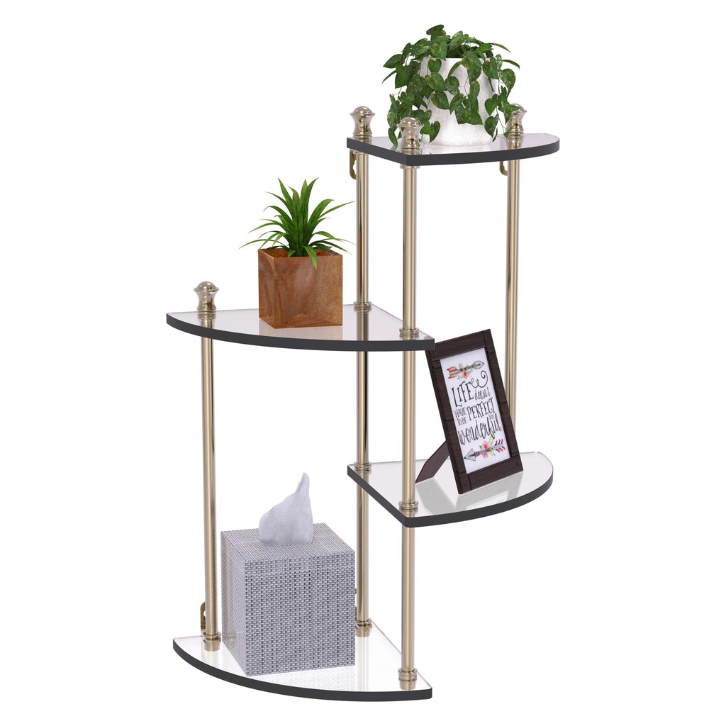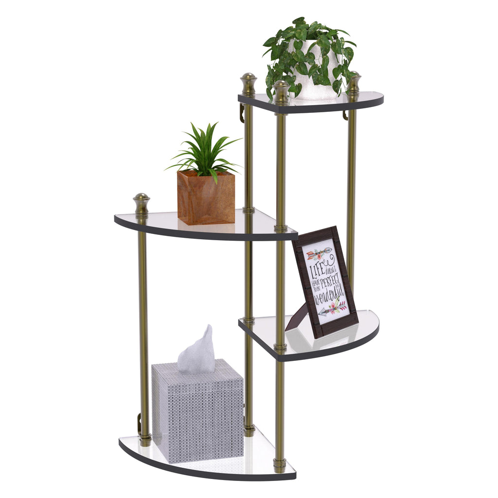 The Four Tier Wall Shelf by Allied Brass will be a stunning addition to your home's décor in any room of the house. Available in a wide variety of finishes and colors, this wall shelf is both decorative and functional. The transparent nature of its glass shelves set in a unique semicircular design allows for a full view of your displayed items, making it a true work of art. Shelves are securely held in place by sections of high quality brass tubing. The shelf is designed for easy assembly without the use of tools. Its unique design, high-quality materials, and durable construction make it a must-have addition to your home.