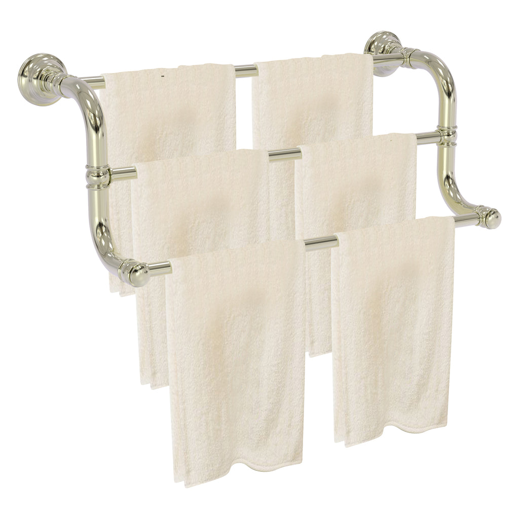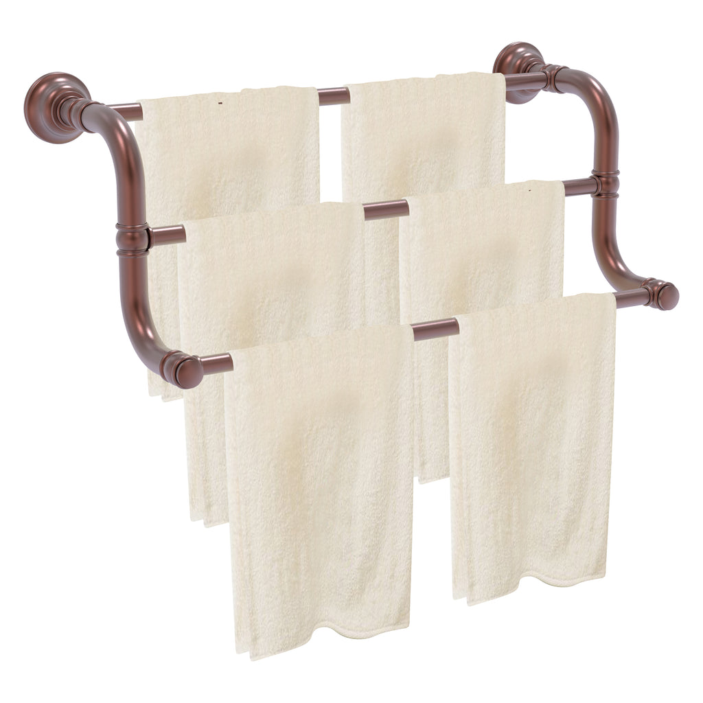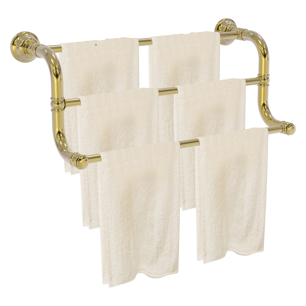 The 3 Bar Hand Towel Rack in the Carolina Collection from Allied Brass will add style and function to your bathroom. Its curved shape and tiered design make this accessory unique and trend setting at the same time. Made from high quality brass and finished in a lifetime designer finish, Its unique triple bar design will allow you to present hand towels to your guests in an elegant manner. If your bath decor features classic traditional styling the Carolina Collection has bath accessories to meet your design and decorating needs. All of the Carolina Collection products come with a limited lifetime warranty.