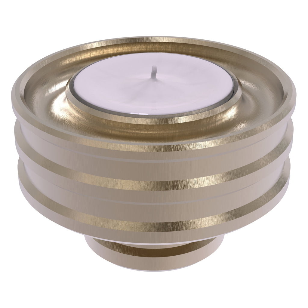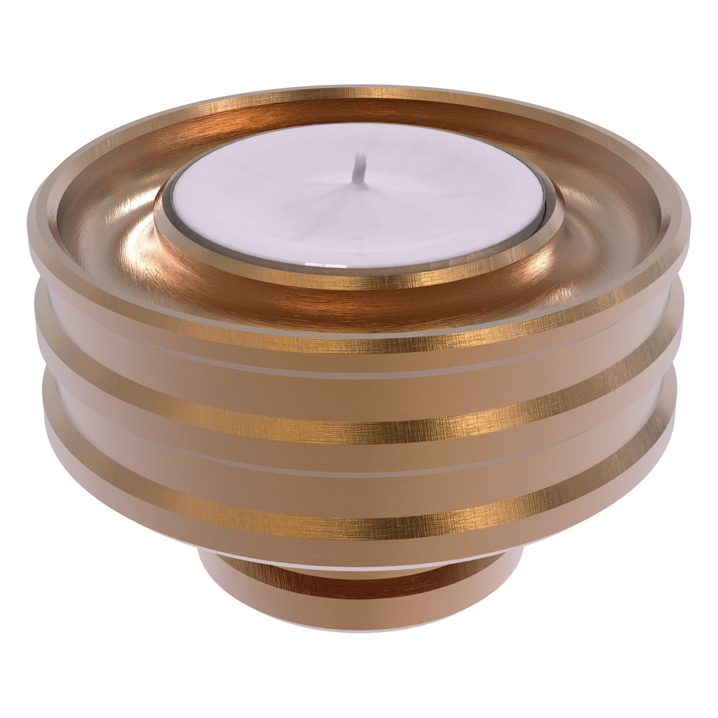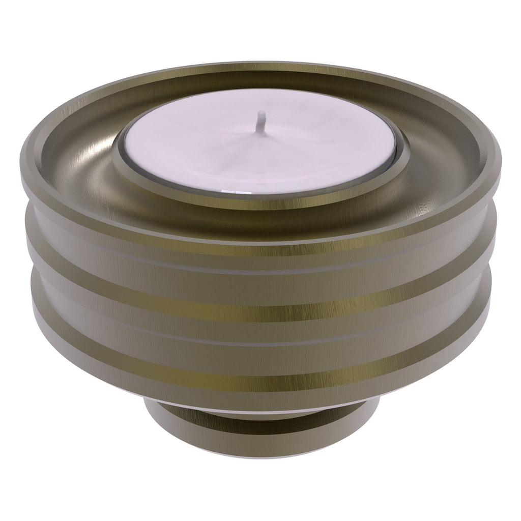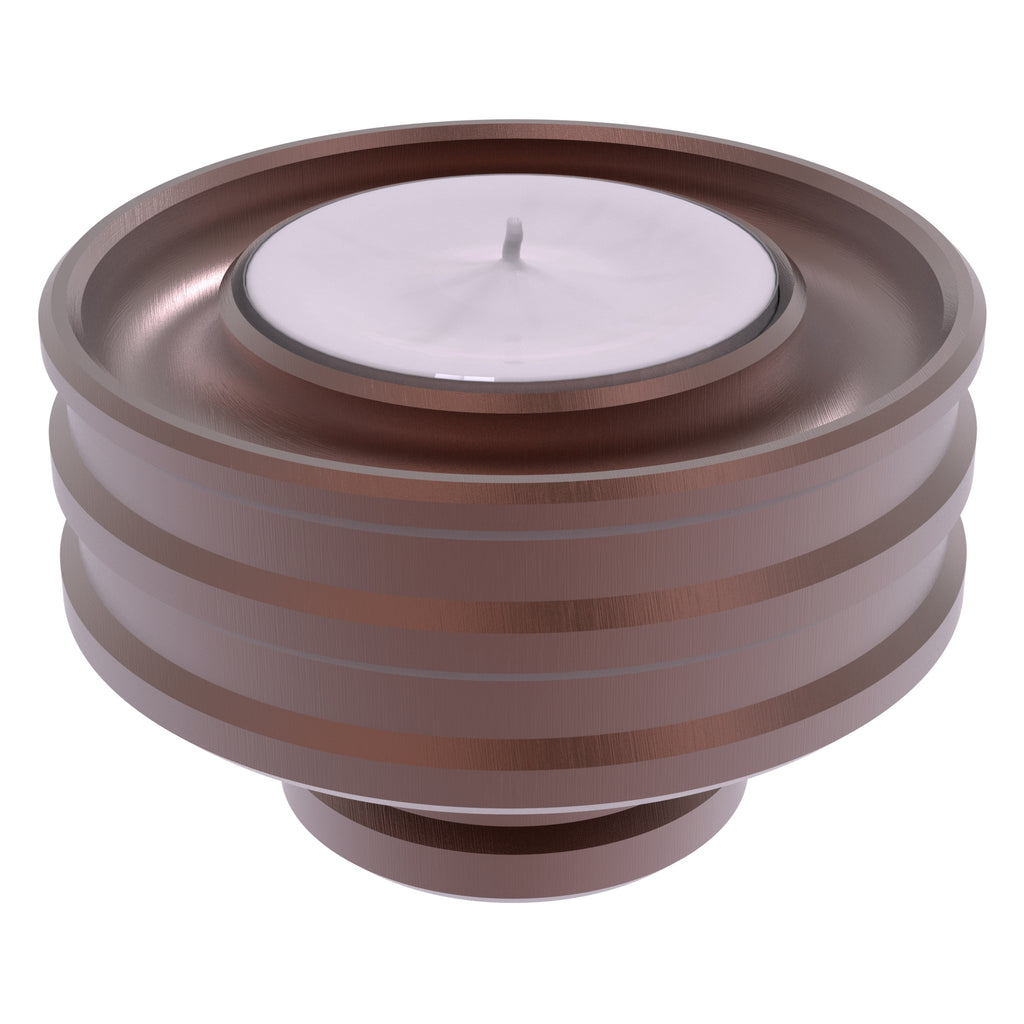 With your candle inserted in a Modern Bevel Reversible Candle Holder from Allied Brass it's like displaying a piece of artwork on your table, mantel or kitchen. Elegantly crafted from solid brass, when placed larger side down this versatile candle base will securely hold a tapered candle. Turn it over and display a votive or tea light candle. Each side contains a circular channel to catch wax drippings. Multiple bases can also be stacked to create a bolder look or for convenient storage.