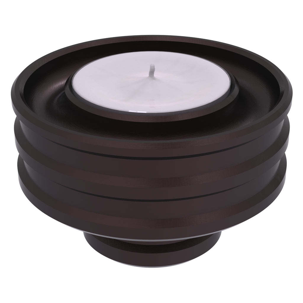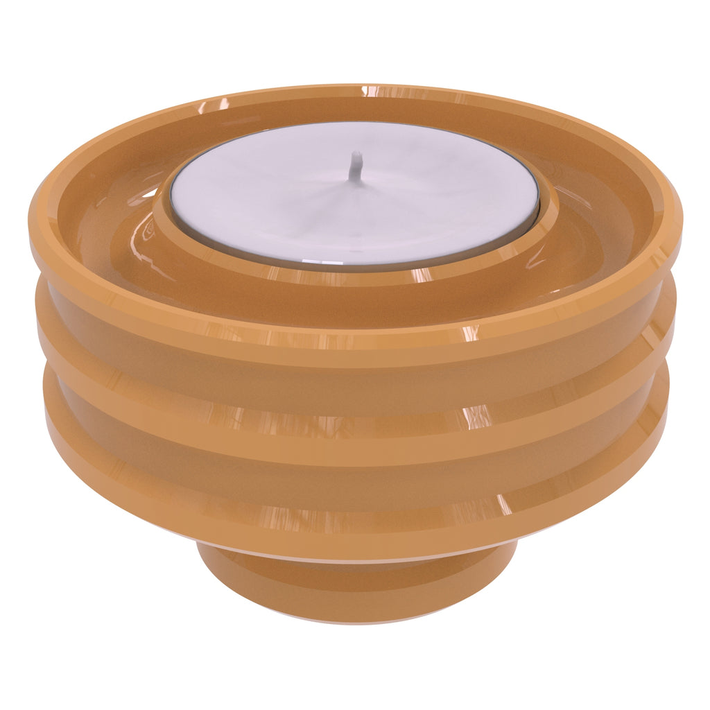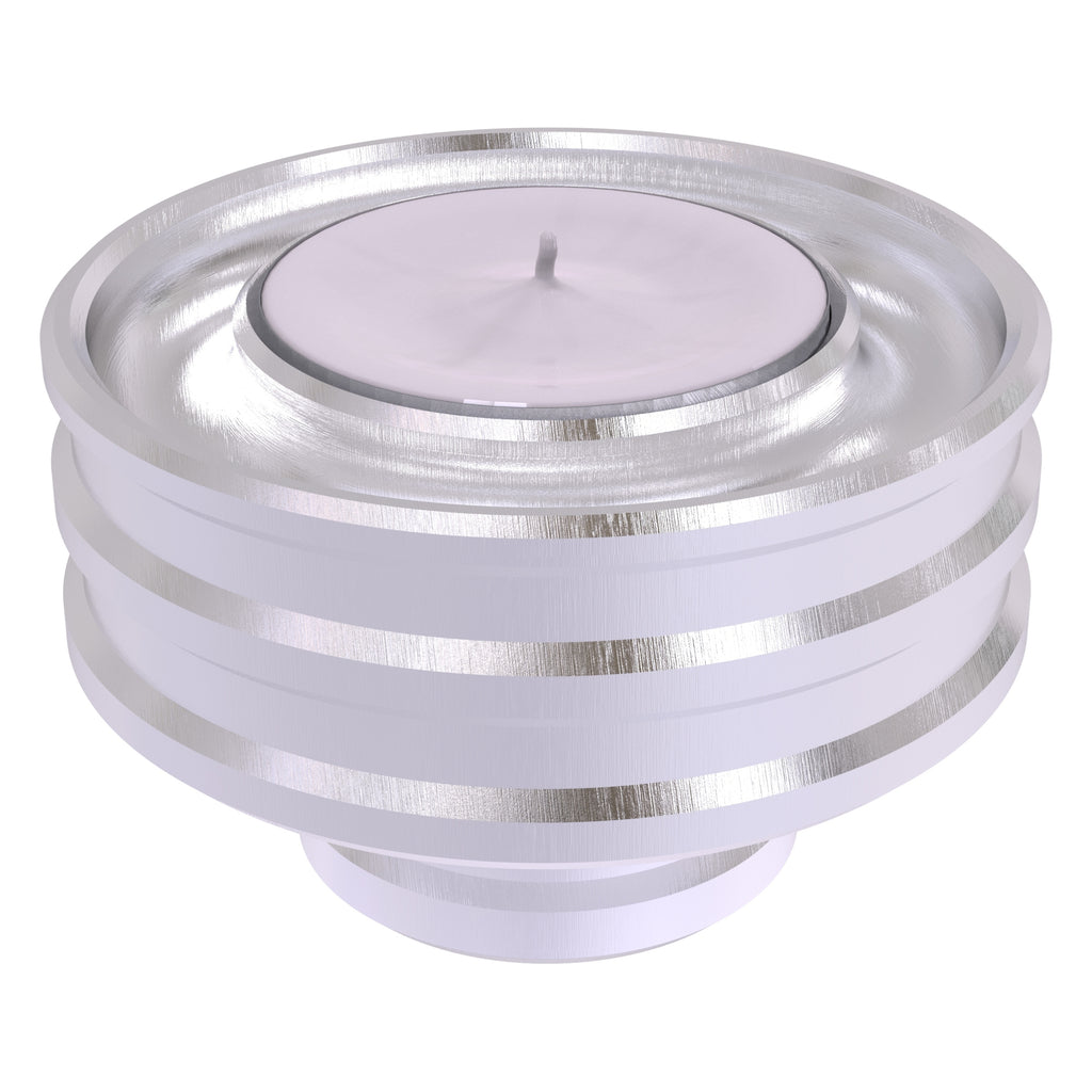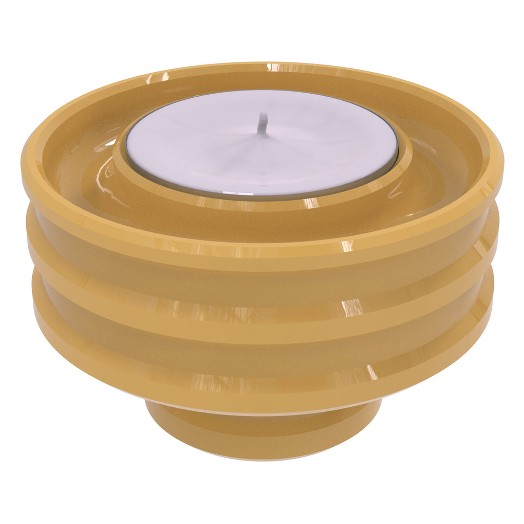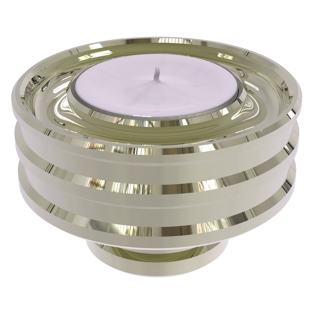 With your candle inserted in a Modern Bevel Reversible Candle Holder from Allied Brass it's like displaying a piece of artwork on your table, mantel or kitchen. Elegantly crafted from solid brass, when placed larger side down this versatile candle base will securely hold a tapered candle. Turn it over and display a votive or tea light candle. Each side contains a circular channel to catch wax drippings. Multiple bases can also be stacked to create a bolder look or for convenient storage.