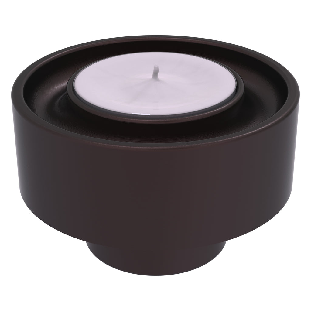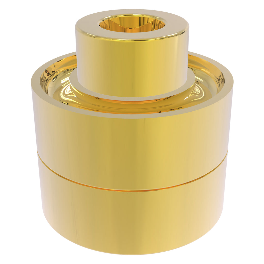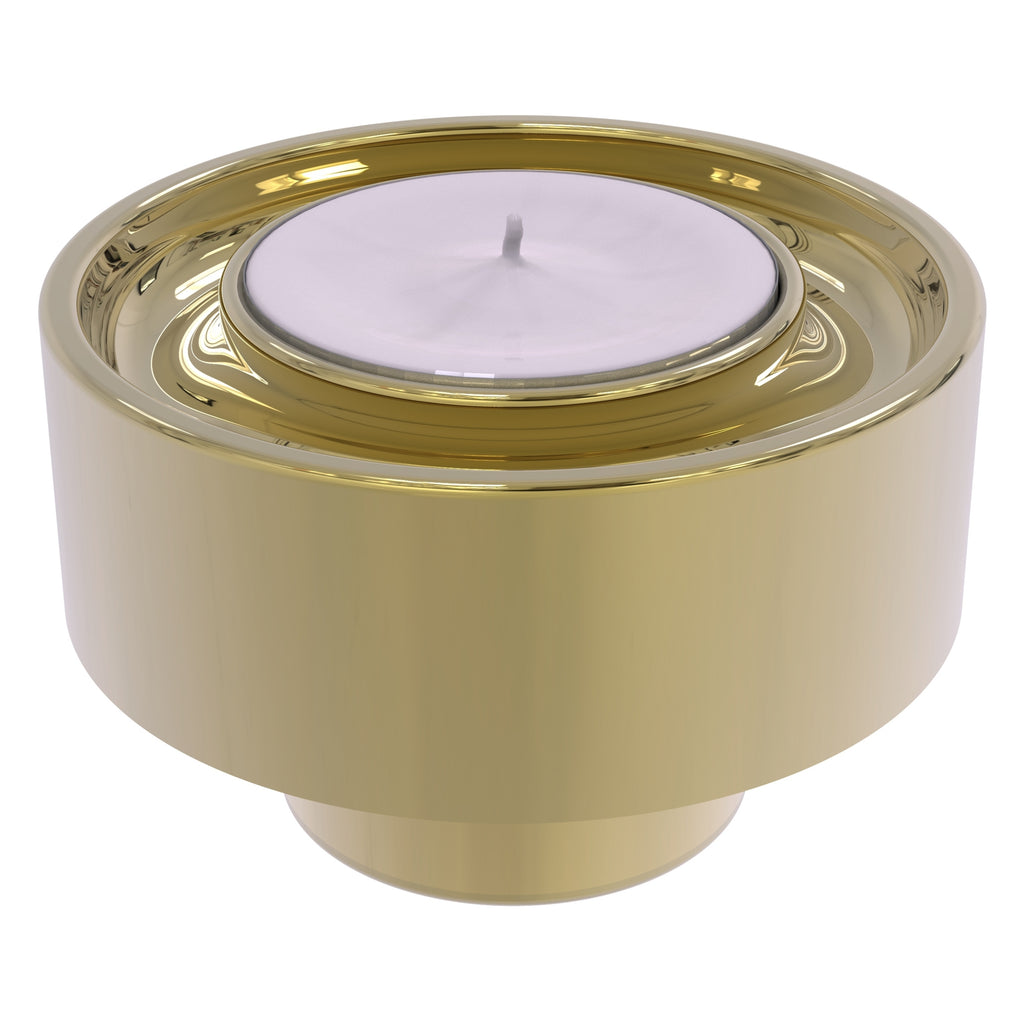 Elegantly crafted from solid brass, the Contemporary Reversible Candle Holder from Allied Brass is certain to attract a lot of attention on your table, mantle or in the kitchen. Placed larger side down, this versatile candle base will securely hold a tapered candle. Turn it over and it can display a votive or tea light candle. Each side contains a circular channel to catch wax drippings. Multiple bases can also be stacked to create a bolder look or for convenient storage.