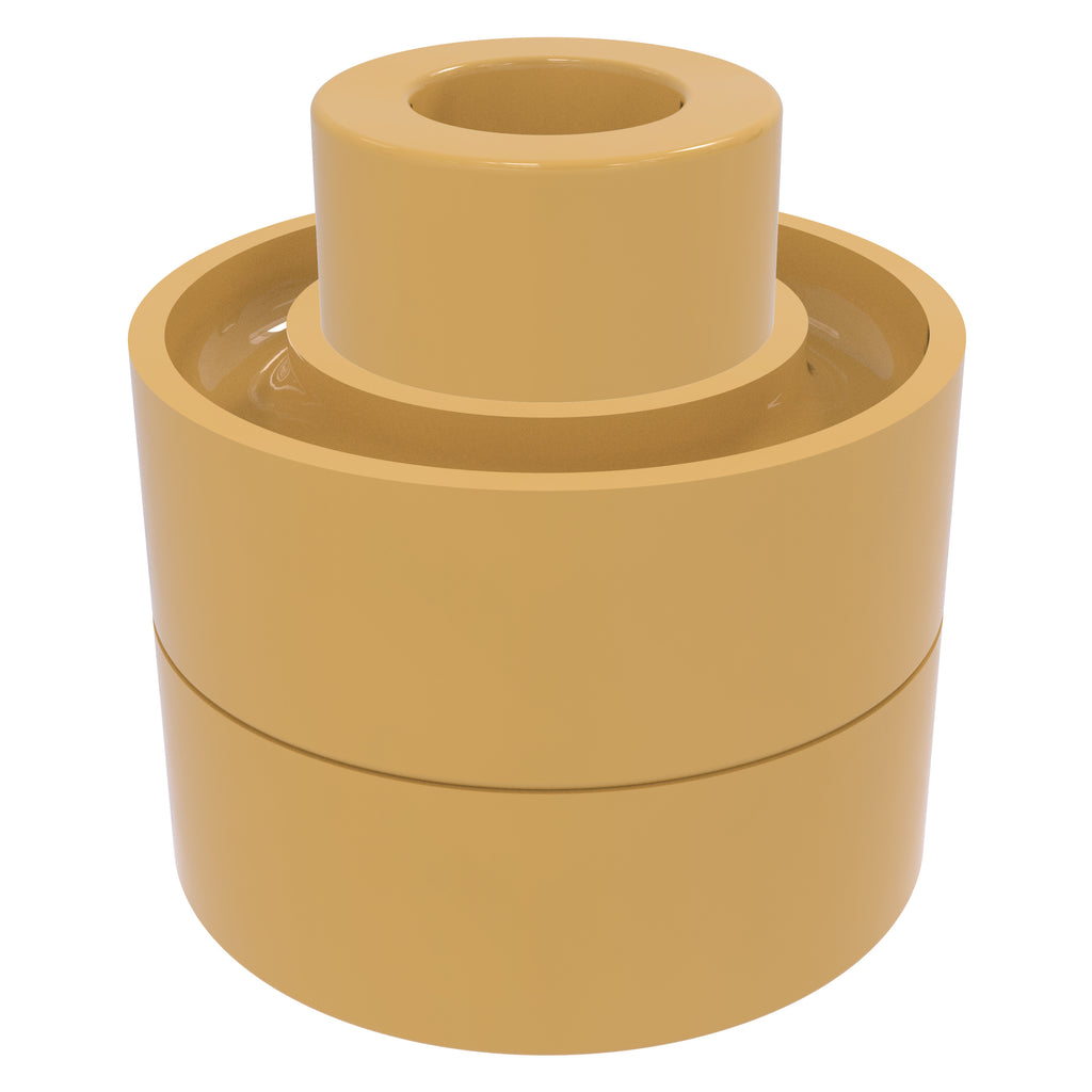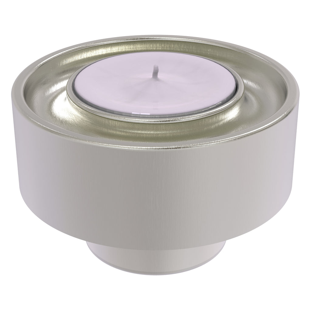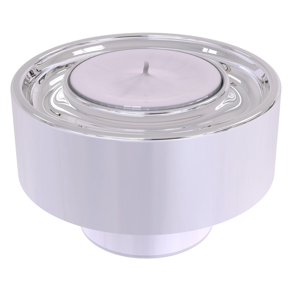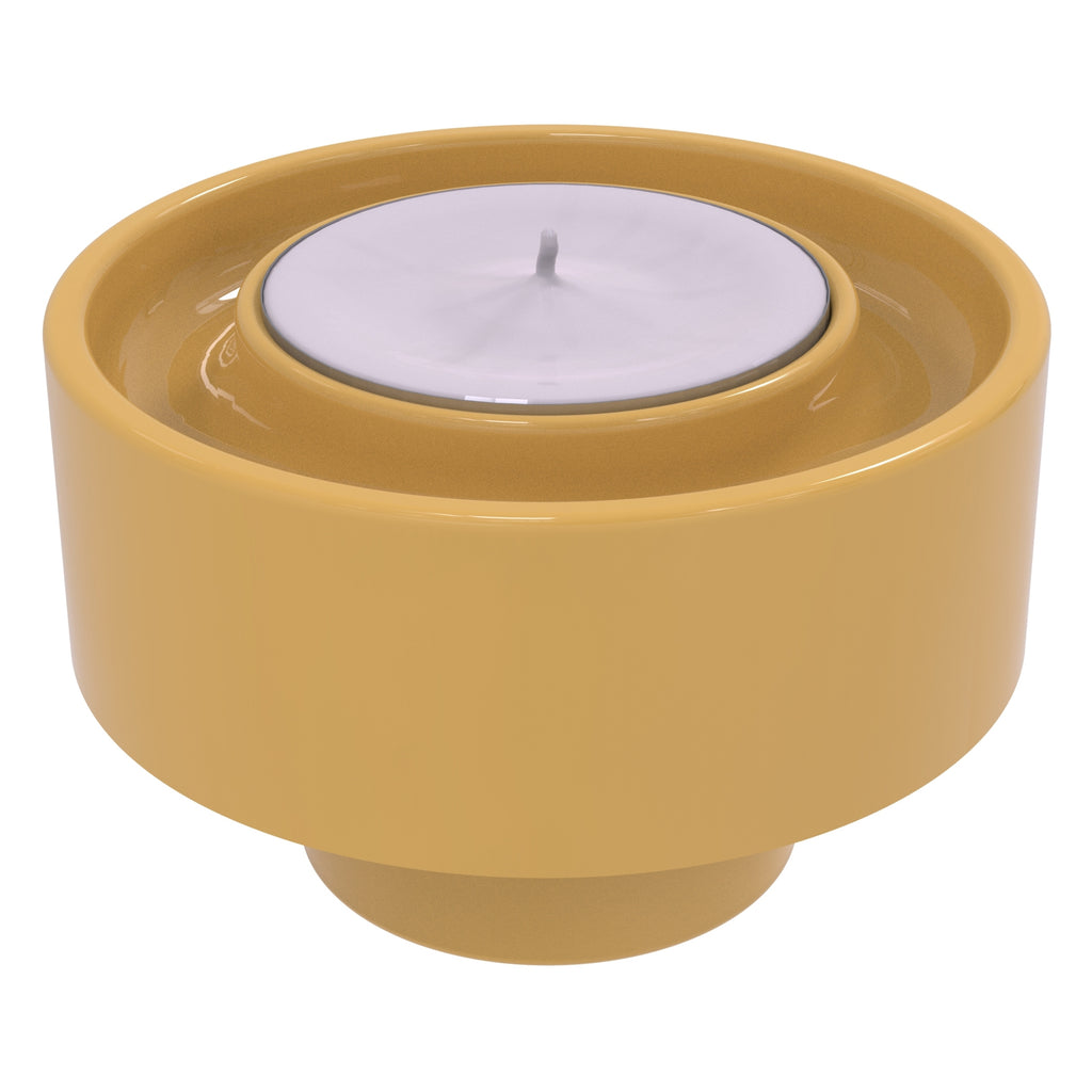 Elegantly crafted from solid brass, the Contemporary Reversible Candle Holder from Allied Brass is certain to attract a lot of attention on your table, mantle or in the kitchen. Placed larger side down, this versatile candle base will securely hold a tapered candle. Turn it over and it can display a votive or tea light candle. Each side contains a circular channel to catch wax drippings. Multiple bases can also be stacked to create a bolder look or for convenient storage.