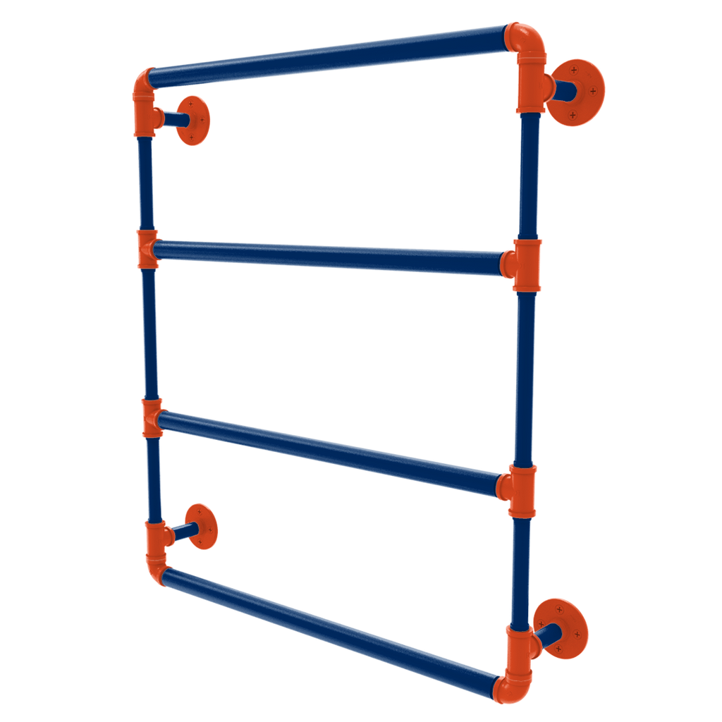 Transform your bathroom into a tribute to Charlottesville spirit with the Collegiate Collection Wall Mounted Ladder Towel Bar, brilliantly adorned primary color and secondary color. Crafted from durable powder-coated industrial pipe, this exceptional towel bar not only offers a robust structure but also stands as a bold statement of your dedication to College Sports. Its eye-catching design integrates seamlessly into both modern and traditional decors, making it a versatile addition to any fan's home.