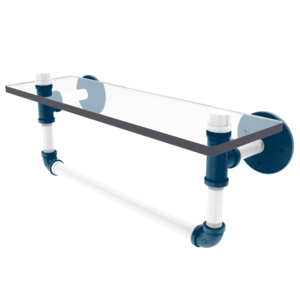 Enhance your bathroom while showing off your Storrs pride with our exclusive Collegiate Collection Glass Shelf with Towel Bar. Sporting the vibrant primary color and secondary color, this piece not only serves as a functional addition to your home but also as a bold statement of your love for College Sports. Crafted with high-quality powder-coated industrial pipe and durable glass, this shelf and towel bar combination brings both style and practicality to your bathroom space.
