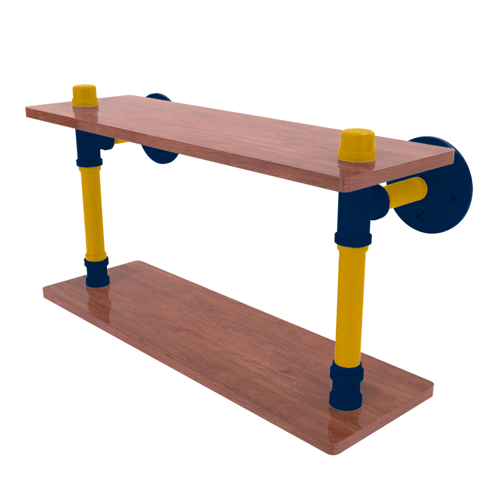 Transform your home into a tribute to your Morgantown pride with the Collegiate Collection Ironwood Double Shelf, a must-have for every die-hard College Sports fan. Featuring a striking blend of primary color and secondary color, this shelf not only elevates your decor but also serves as a bold statement of team loyalty. Its robust construction pairs powder-coated industrial pipe with richly textured IPE Ironwood, ensuring a piece that’s both eye-catching and enduring.