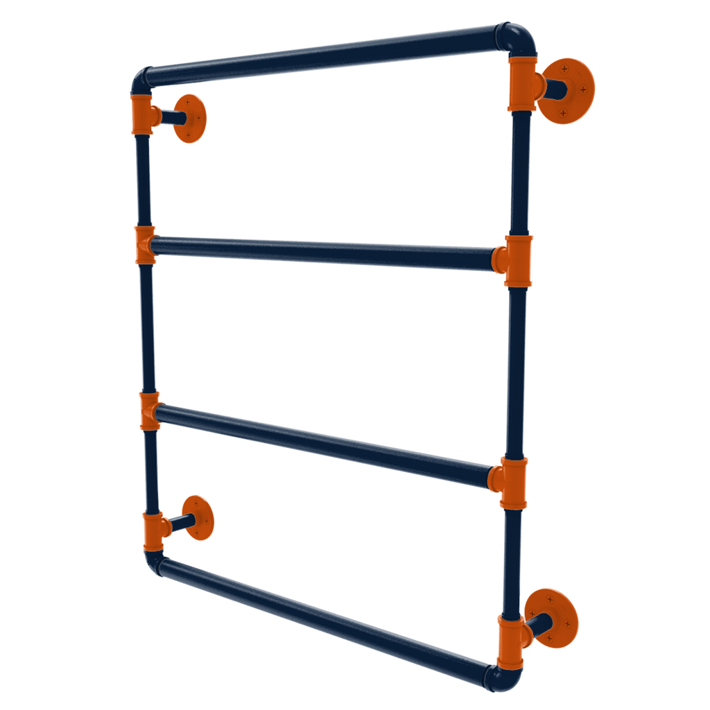 Transform your bathroom into a tribute to Auburn spirit with the Collegiate Collection Wall Mounted Ladder Towel Bar, brilliantly adorned primary color and secondary color. Crafted from durable powder-coated industrial pipe, this exceptional towel bar not only offers a robust structure but also stands as a bold statement of your dedication to College Sports. Its eye-catching design integrates seamlessly into both modern and traditional decors, making it a versatile addition to any fan's home.