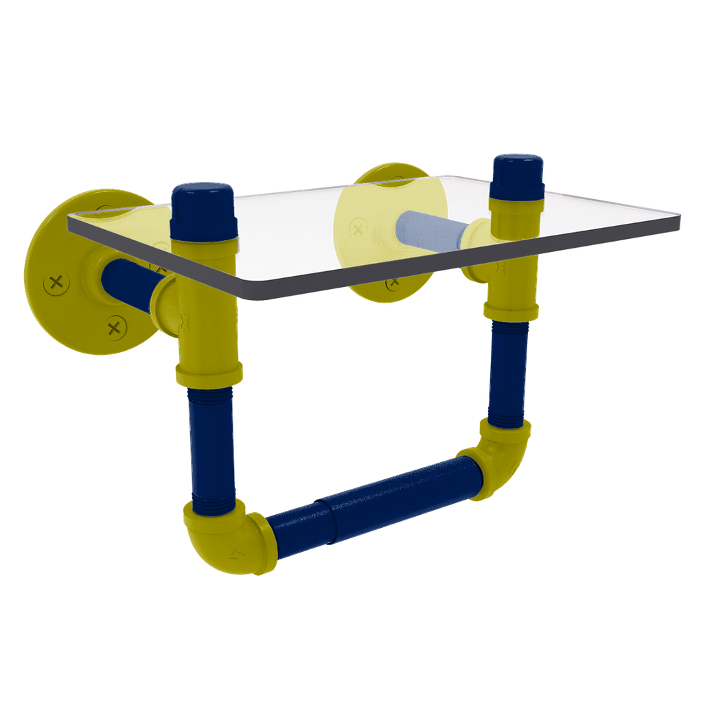 Enhance your bathroom decor while showcasing your unwavering support for your favorite College Sports team with the Collegiate Collection Toilet Tissue Holder with Glass Shelf, meticulously designed to reflect the vibrant primary color and secondary color hues of Pittsburgh. This essential accessory not only serves a practical purpose but also ignites a sense of pride every time you step into your bathroom. Made from robust powder-coated industrial pipe, this toilet tissue holder is built to last and resist corrosion, ensuring it remains a part of your home decor for years to come.