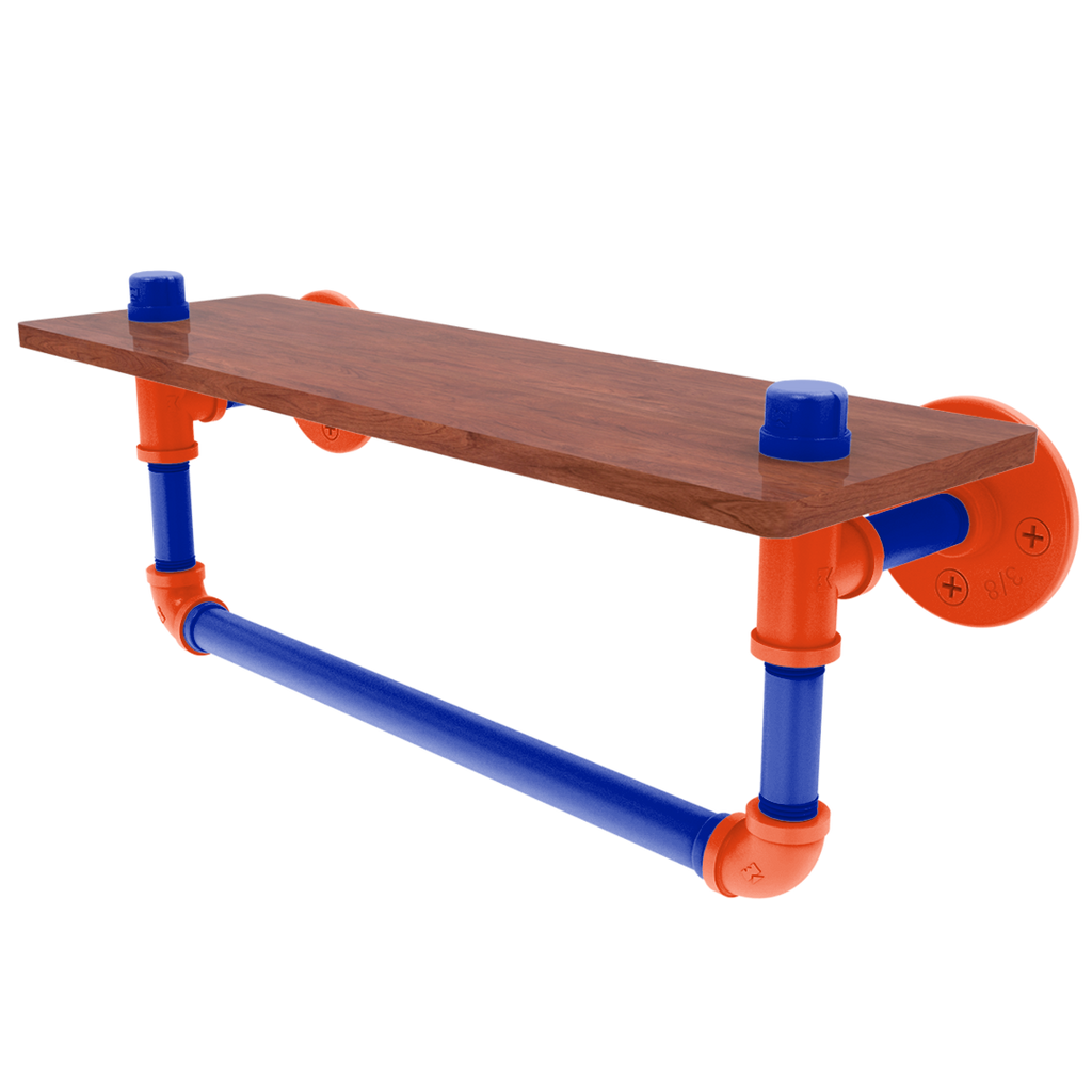 Bring the spirit of Gainesville College Sports into your home with the sophisticated and functional "Collegiate Collection Ironwood Shelf with Towel Bar". Perfect for any College Sports enthusiast, this shelf not only serves as a practical storage solution but also as a vibrant display of your team loyalty with its primary color and secondary color hues, matching your favorite team's colors. Crafted with care, it features powder-coated industrial pipe that ensures durability and longevity, making it a staple your home for years.
