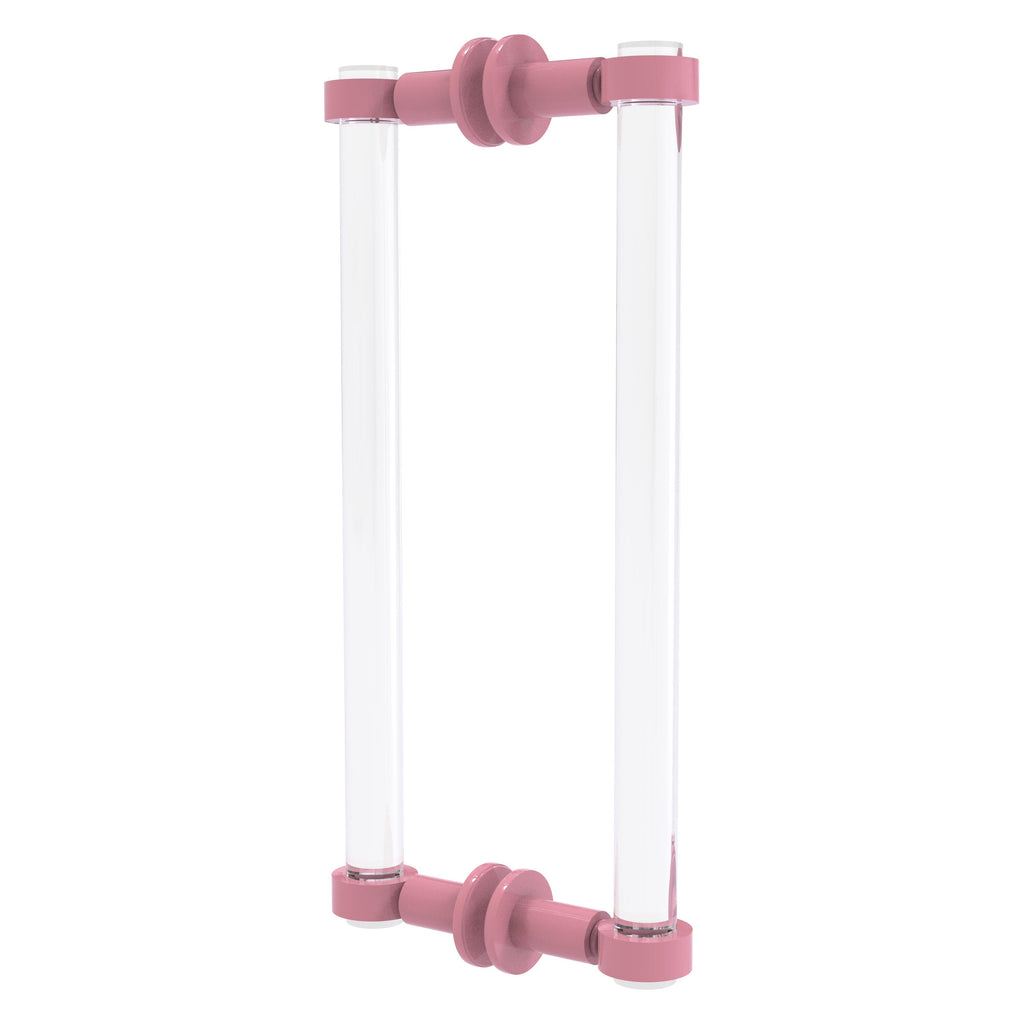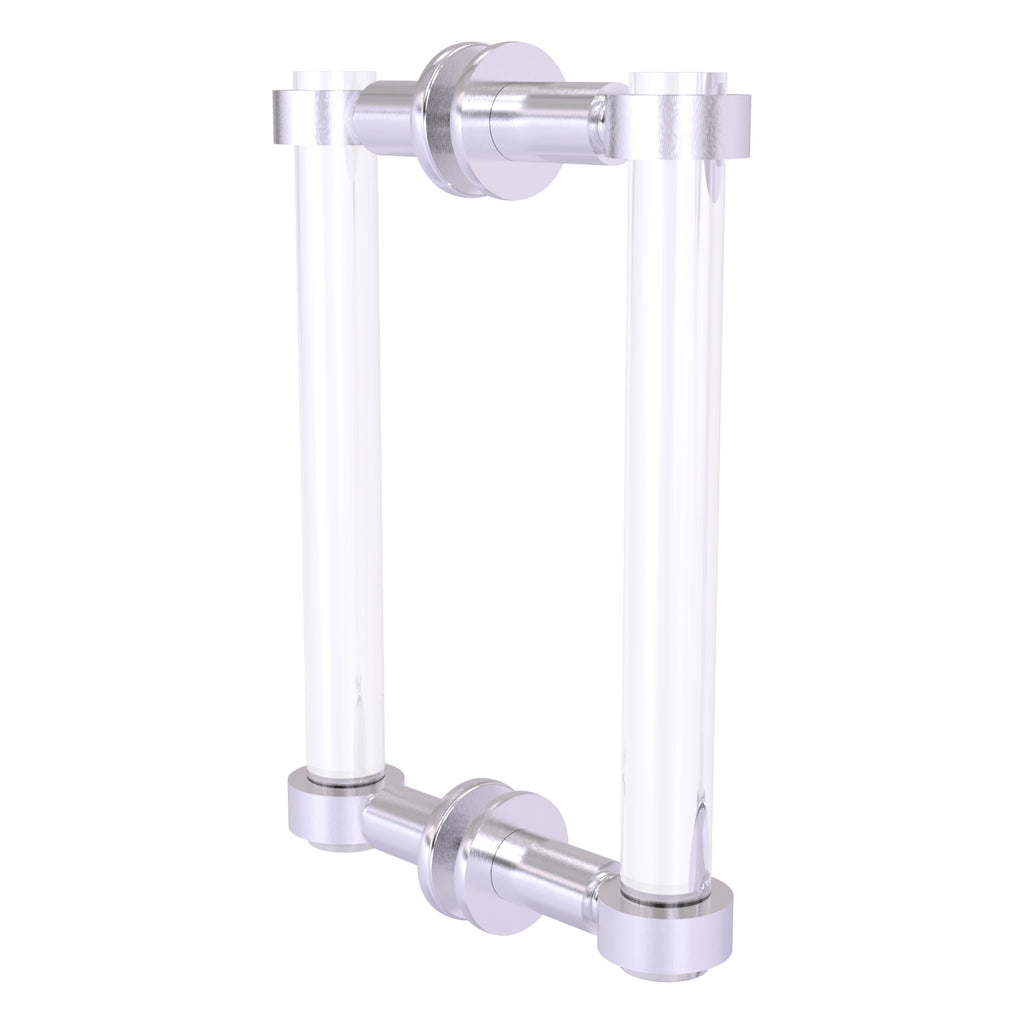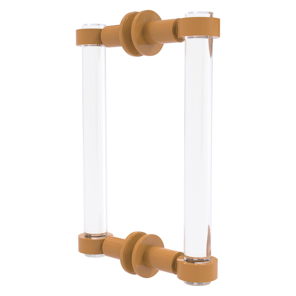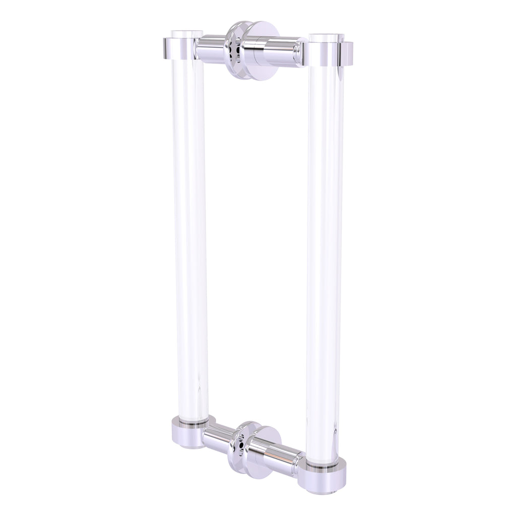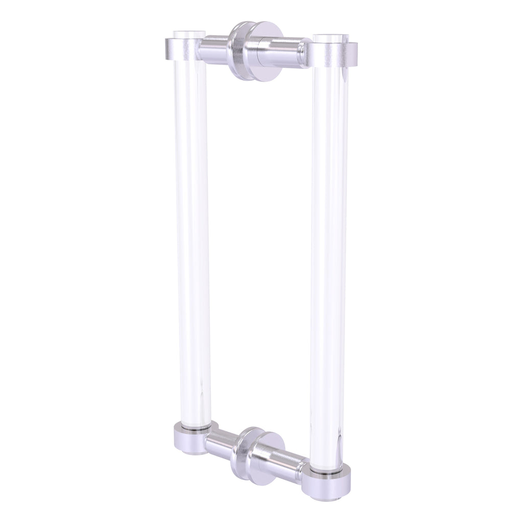 The clean sharp lines of this modern back-to-back shower door pull fits well with any bathroom decor ranging from modern to traditional. Made from high quality solid brass with accents of clear acrylic and provided with your choice of any of our lifetime designer finishes, the shower door pull is extremely attractive yet highly functional. Ideal for glass shower doors of all sizes and styles, the easy to install back-to-back shower door pull comes with two durable u-shaped pulls made from solid brass and all the hardware necessary for installation.