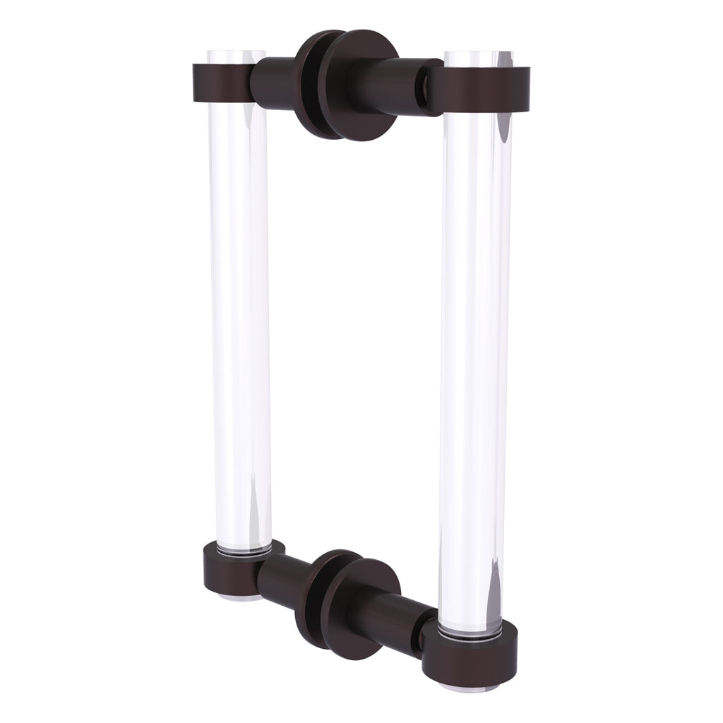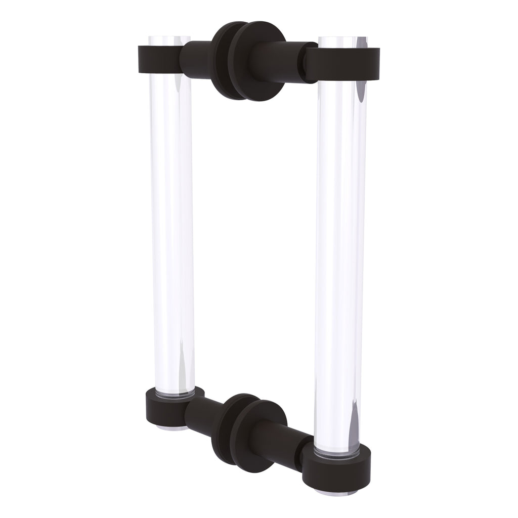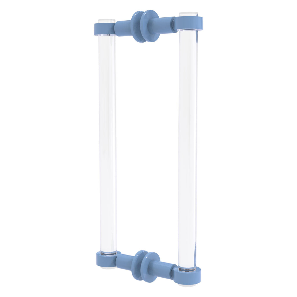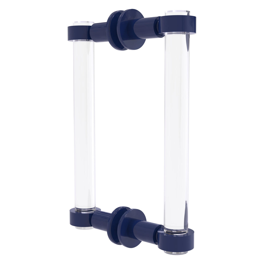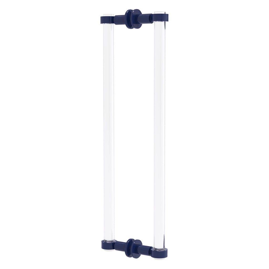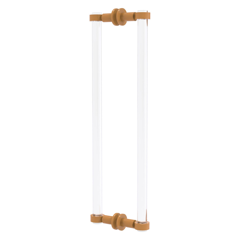 The clean sharp lines of this modern back-to-back shower door pull fits well with any bathroom decor ranging from modern to traditional. Made from high quality solid brass with accents of clear acrylic and provided with your choice of any of our lifetime designer finishes, the shower door pull is extremely attractive yet highly functional. Ideal for glass shower doors of all sizes and styles, the easy to install back-to-back shower door pull comes with two durable u-shaped pulls made from solid brass and all the hardware necessary for installation.